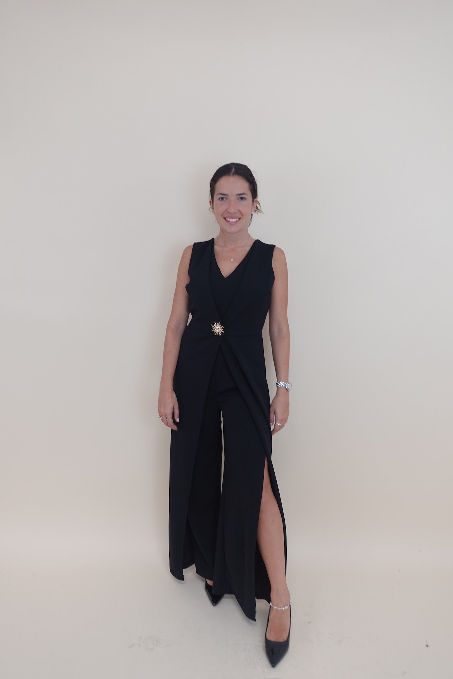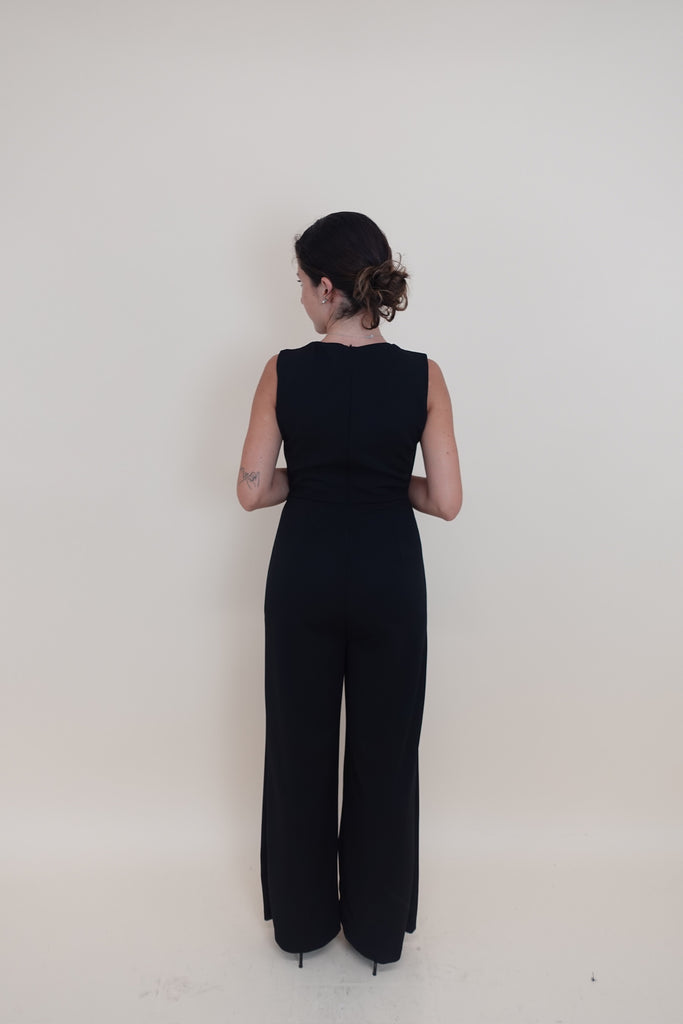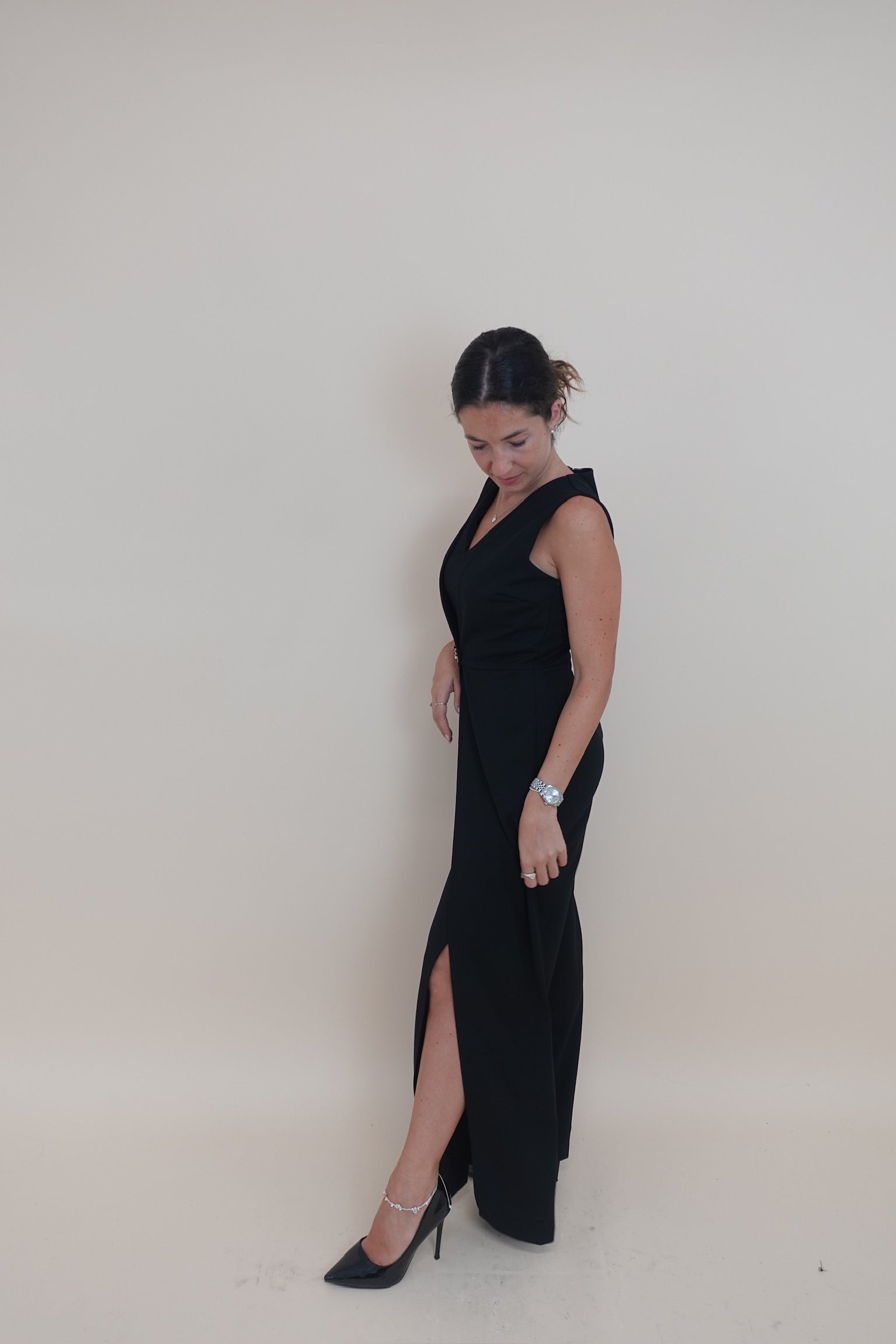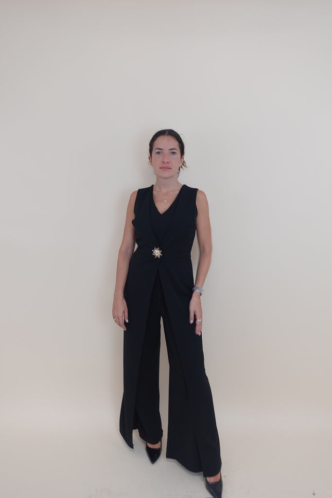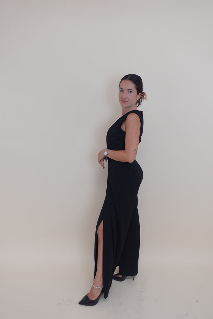 Tuta con pantalone a palazzo con spacco, zip sul retro