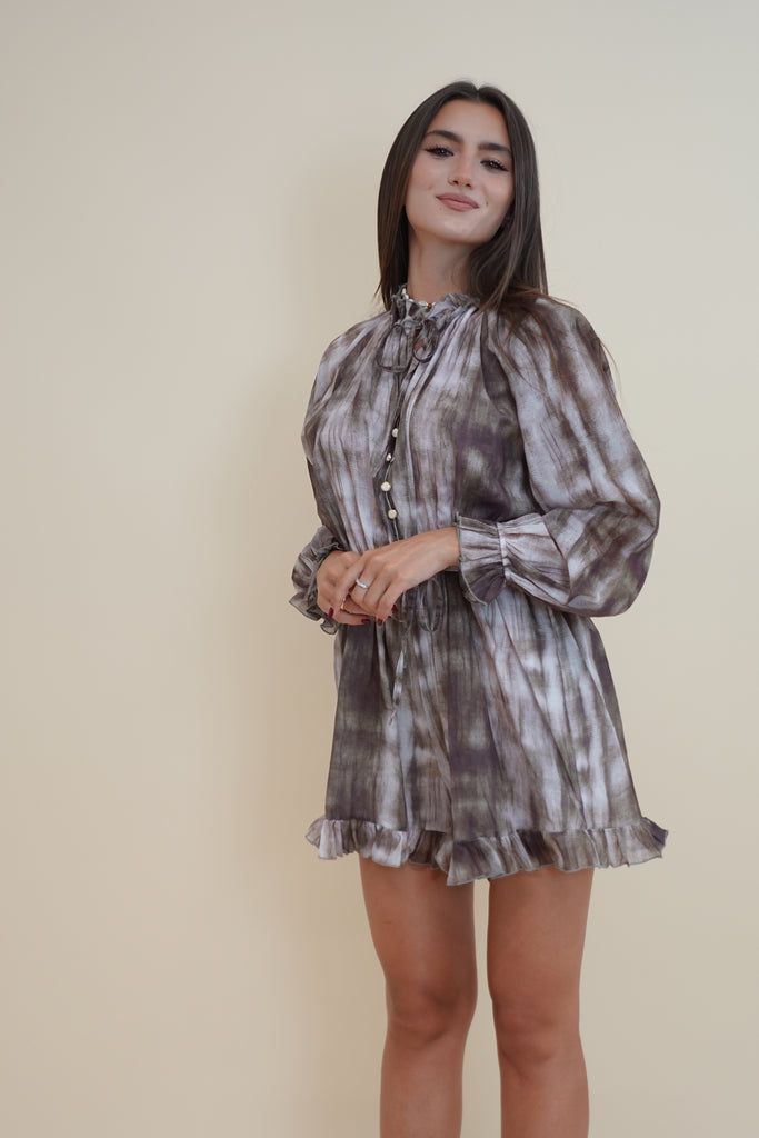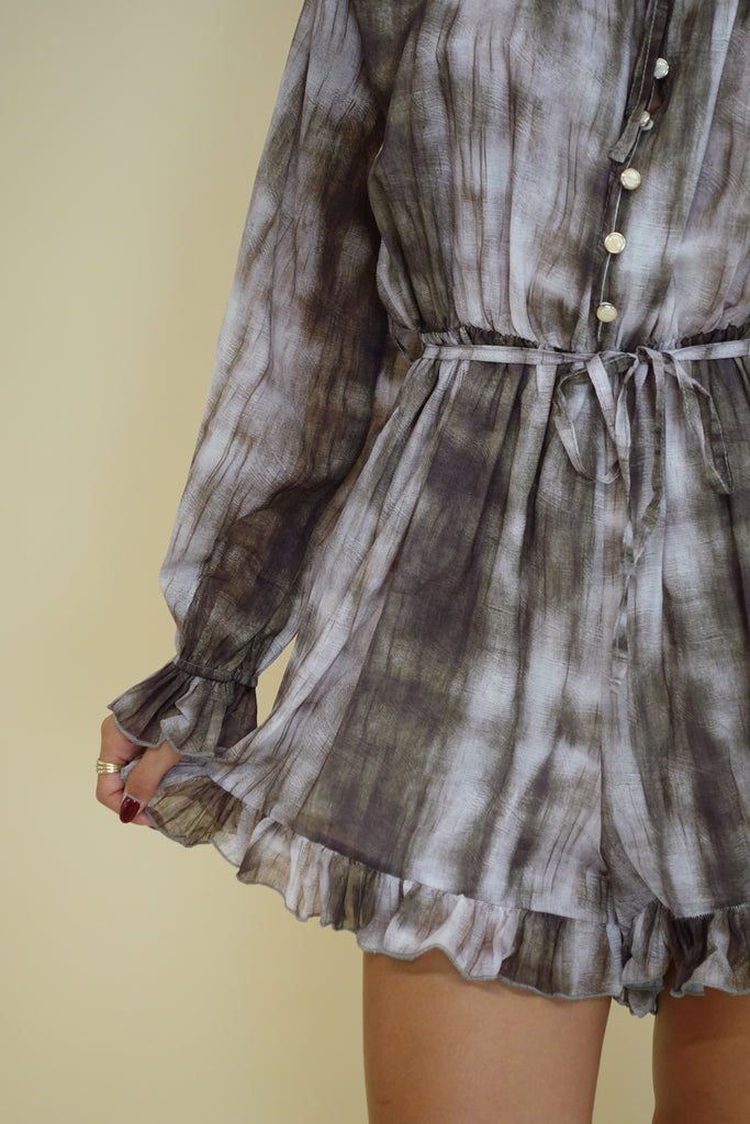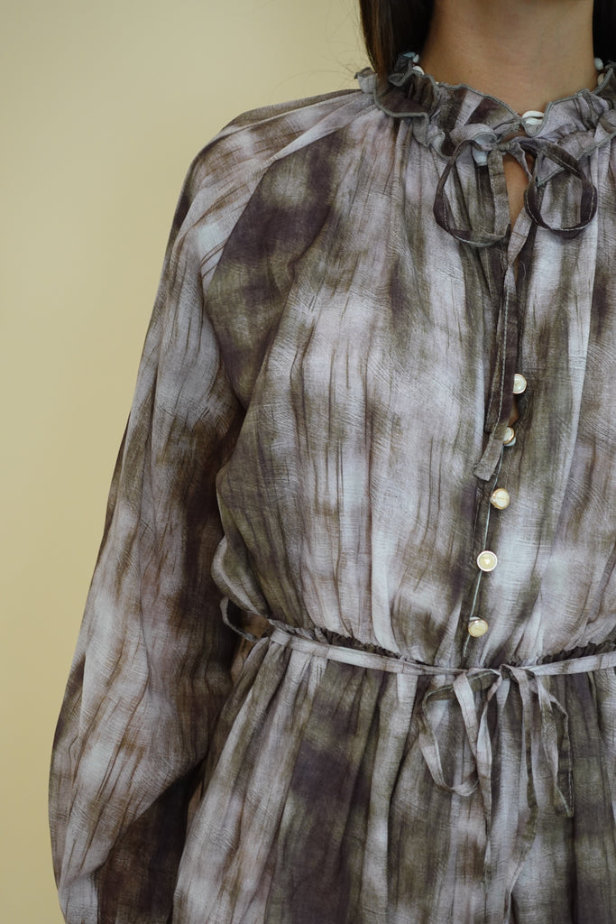 Tutina con manica lunga velata, elastico in vita e bottoni