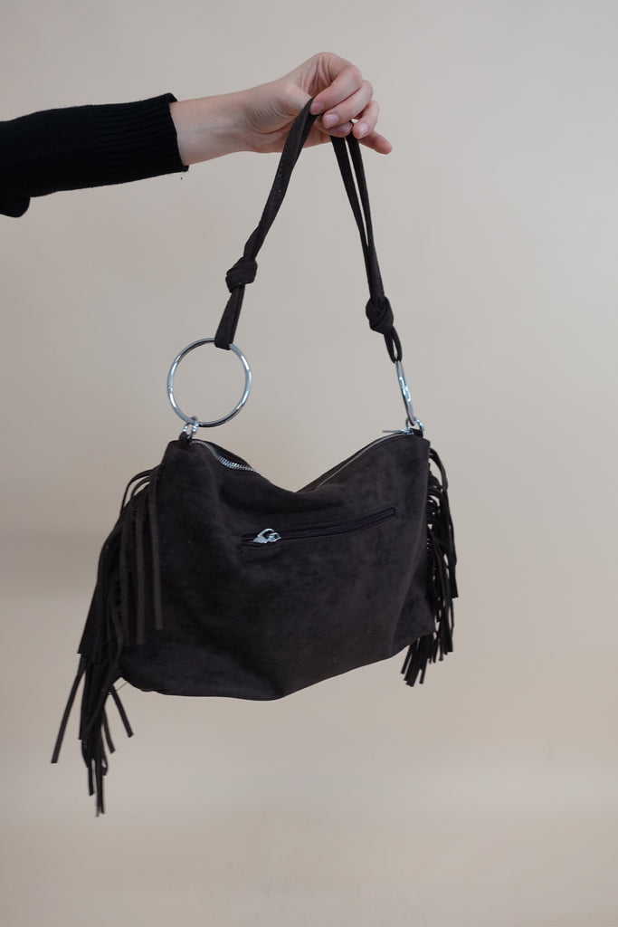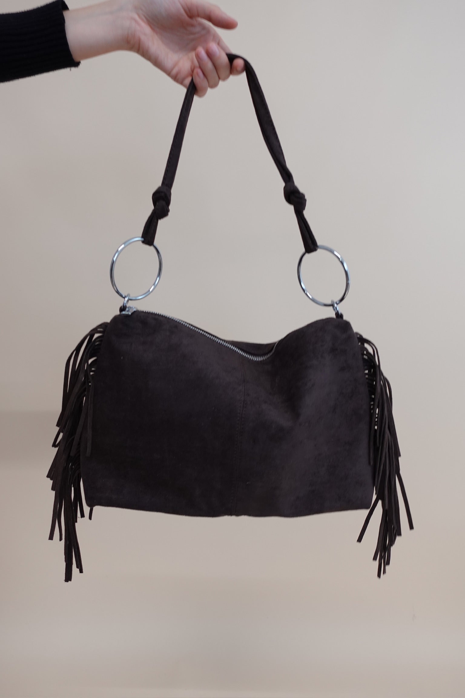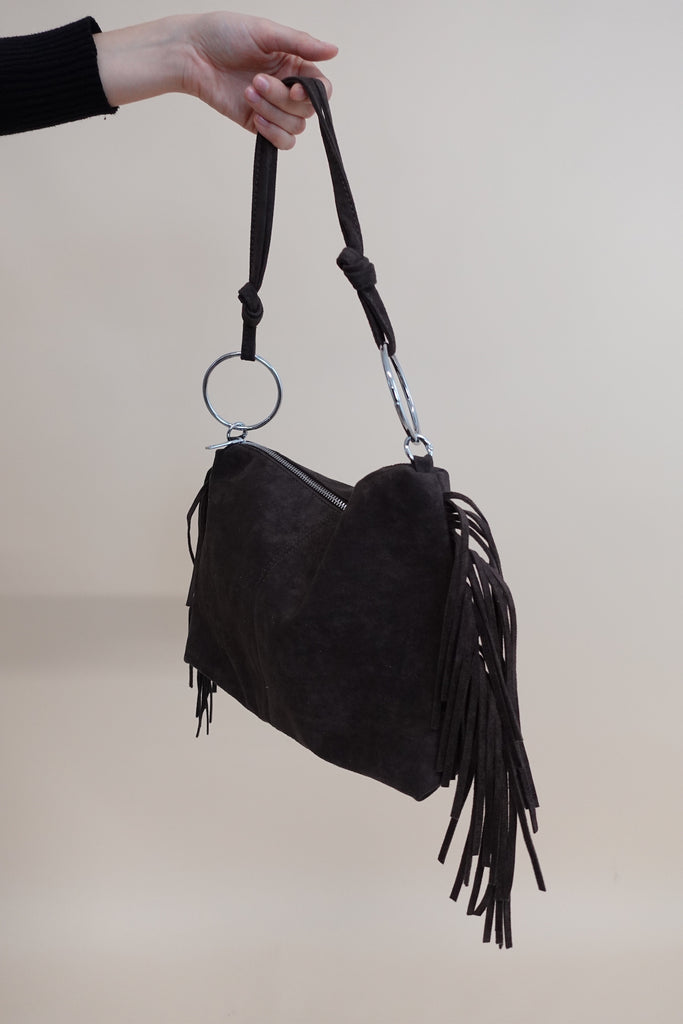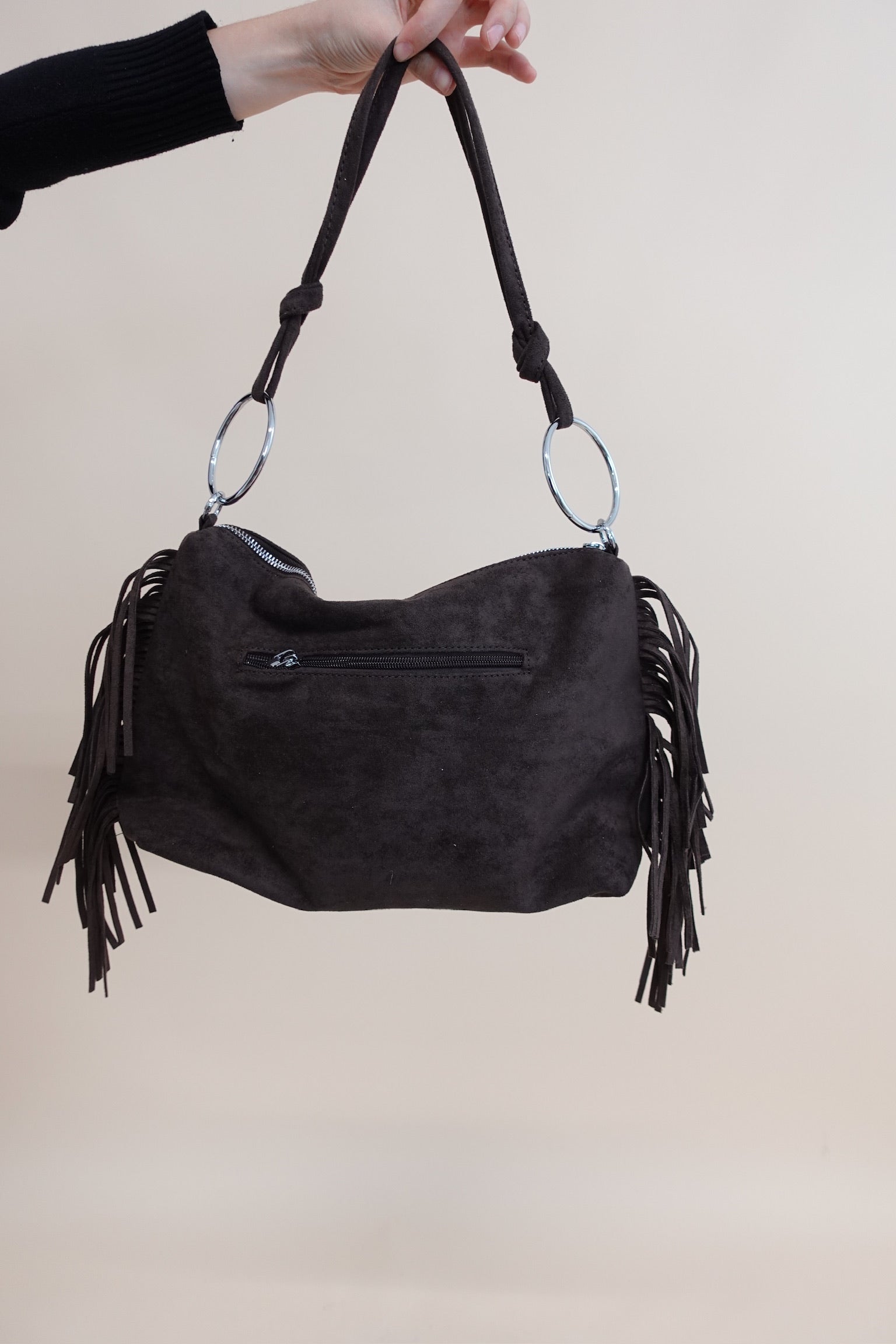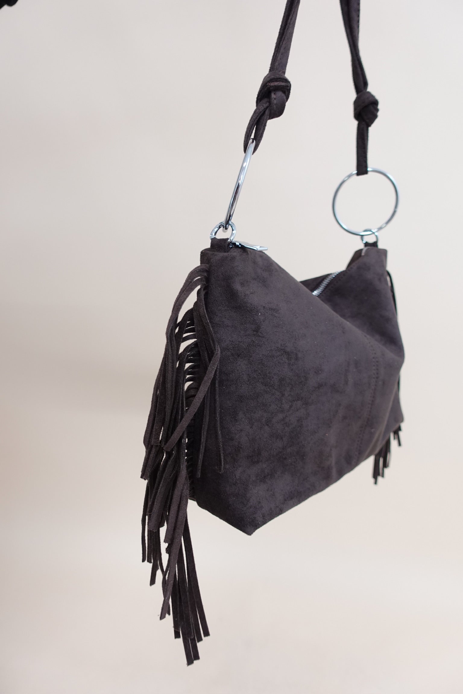 Borsa scamosciata con frange e tracolla aggiuntiva