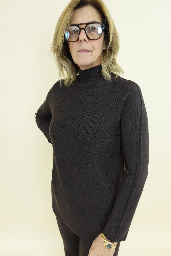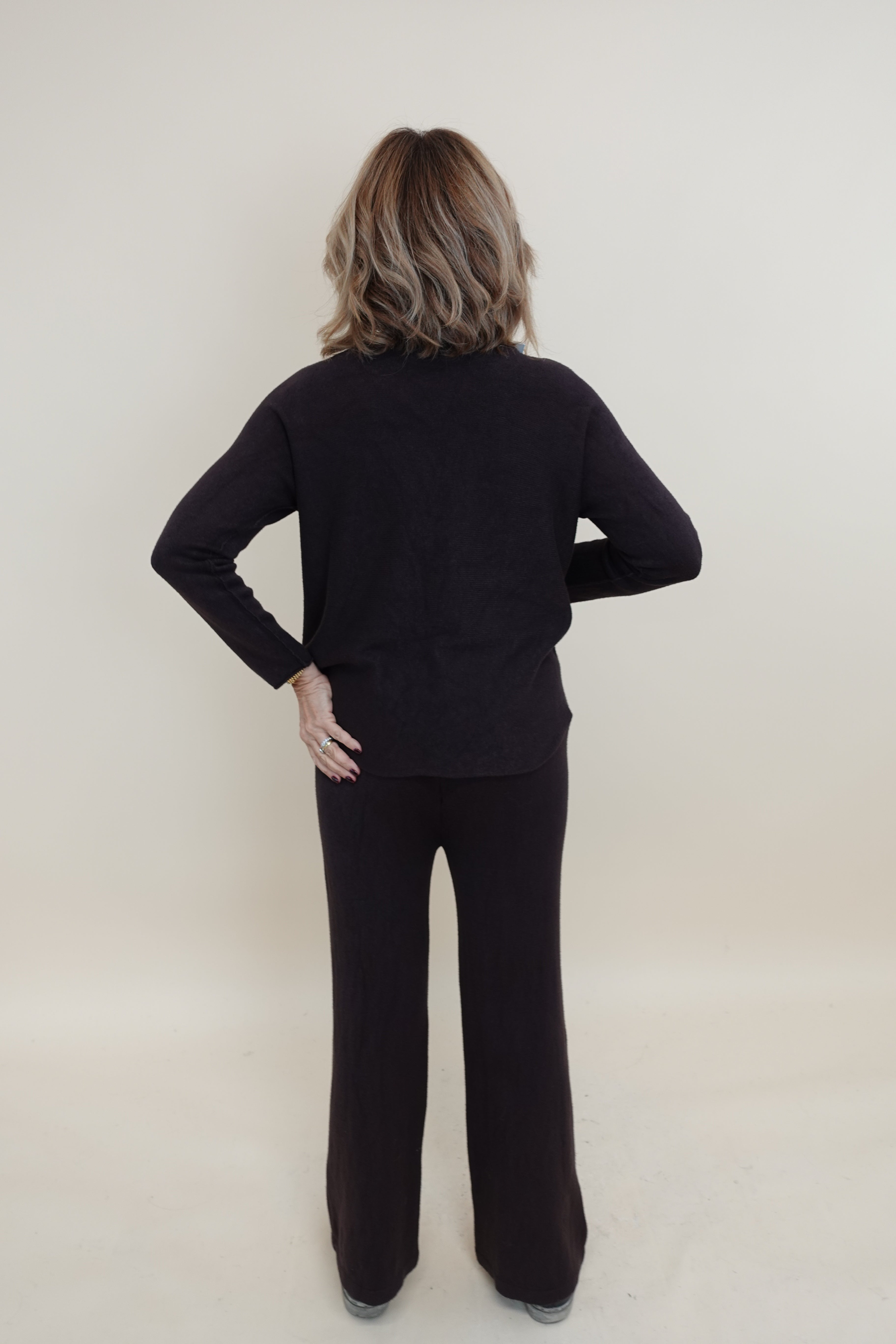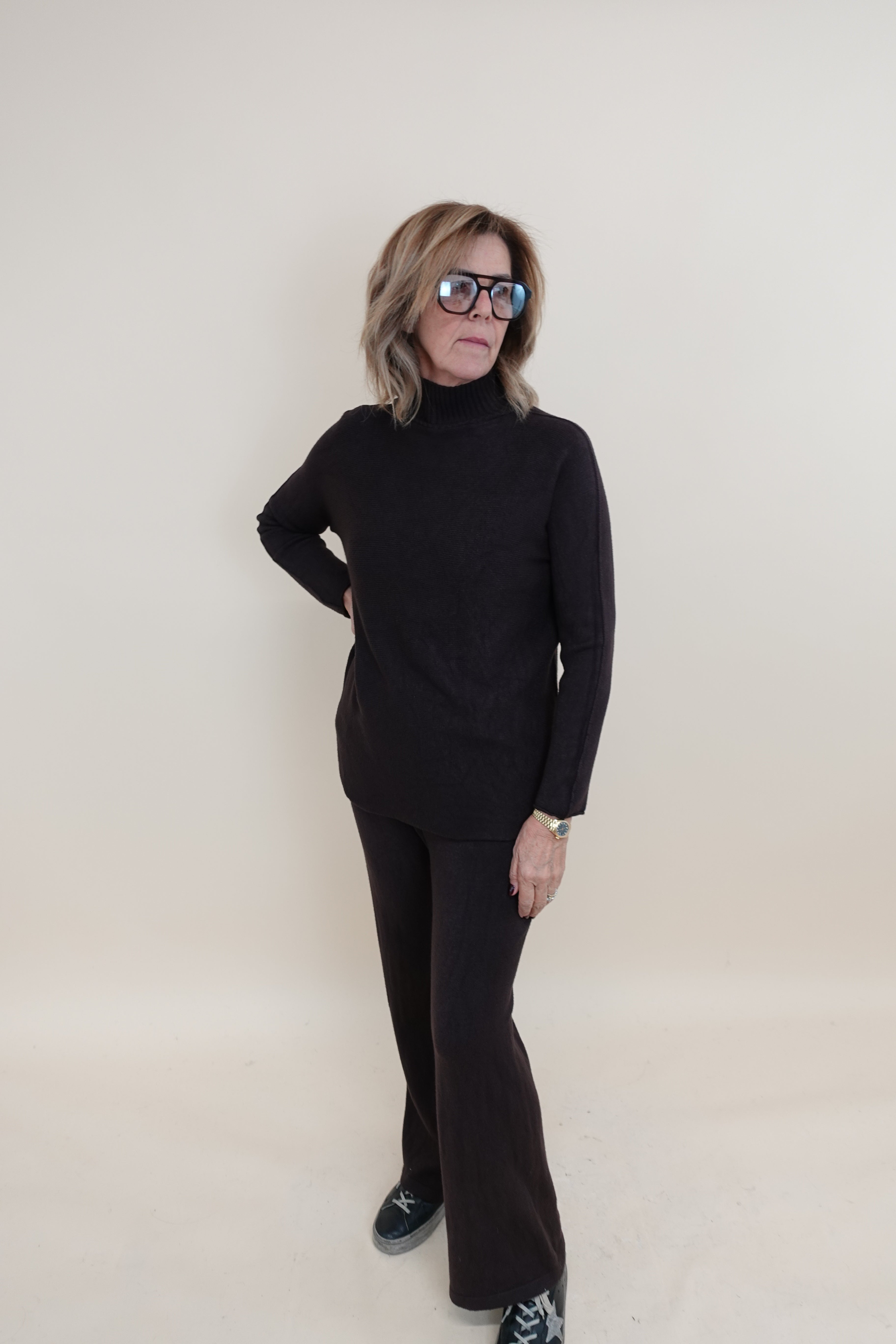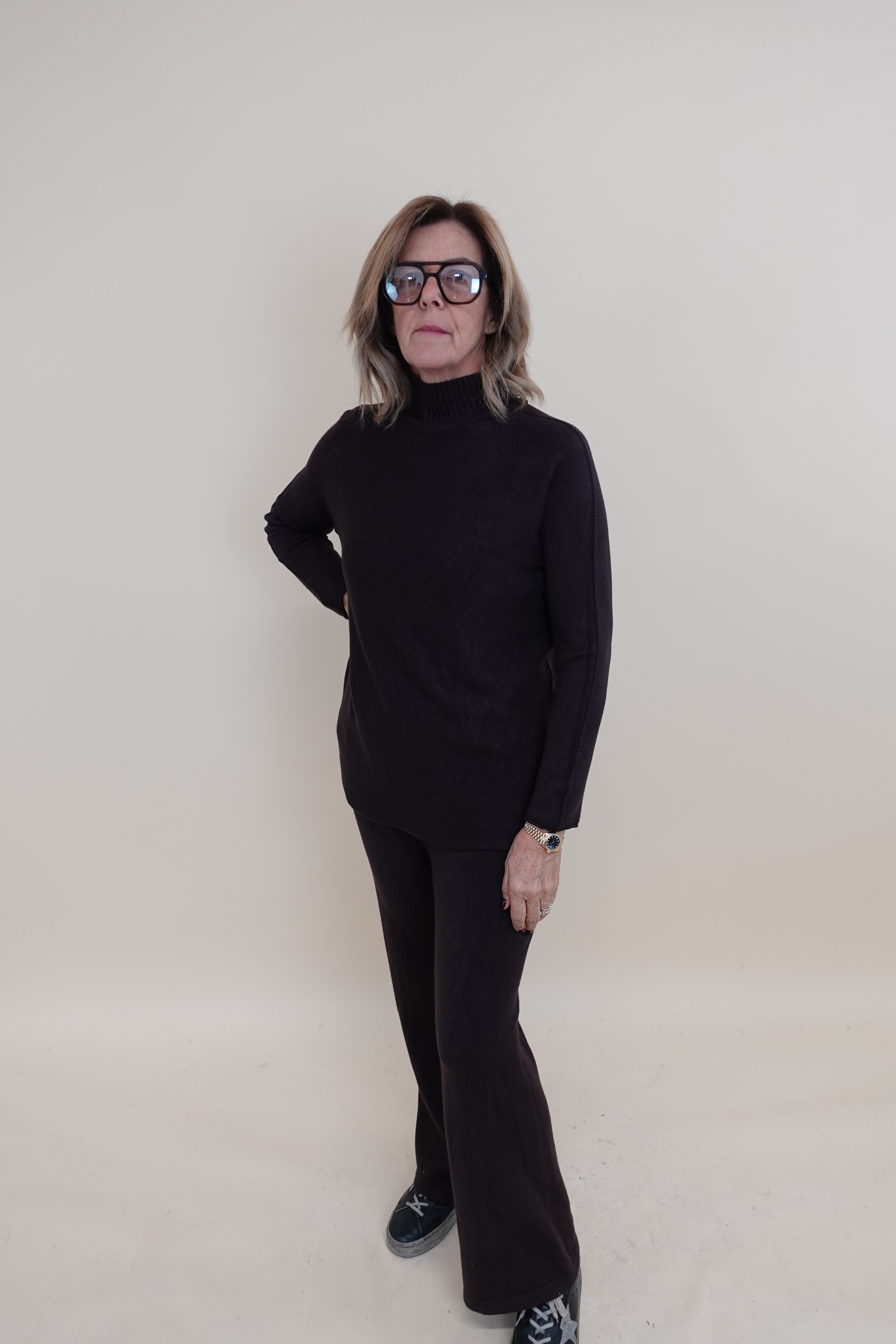 Completo composto da maglia a lupetto e pantalone a palazzo in maglia
