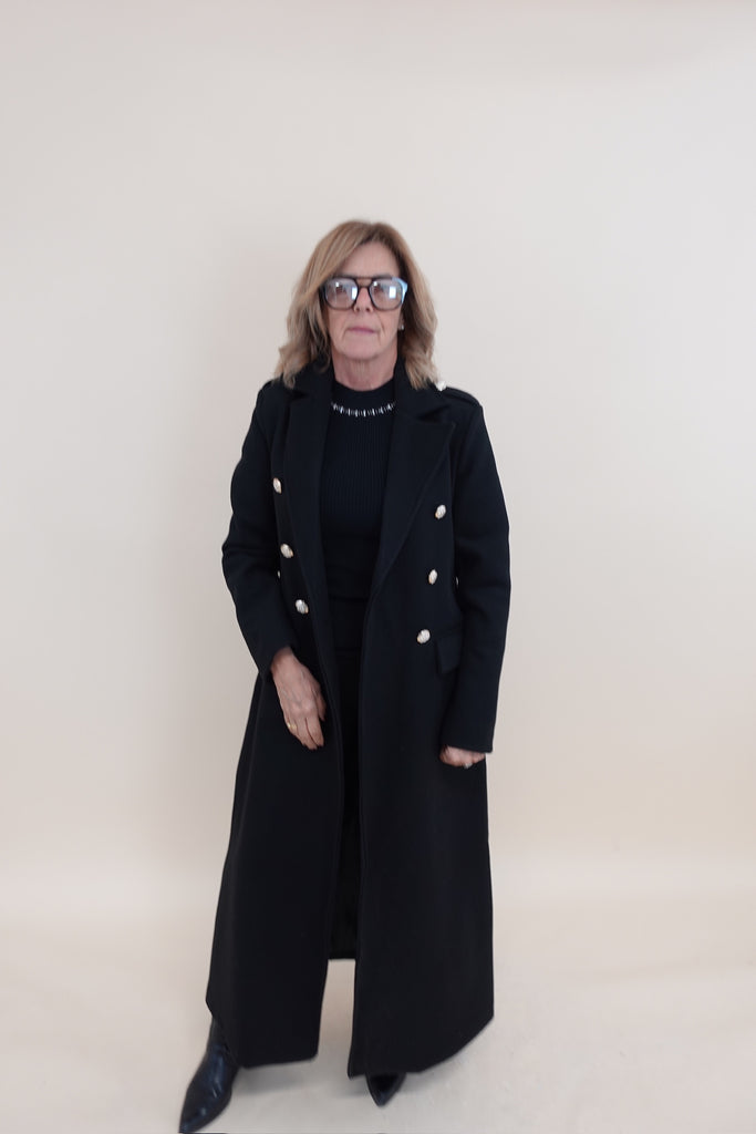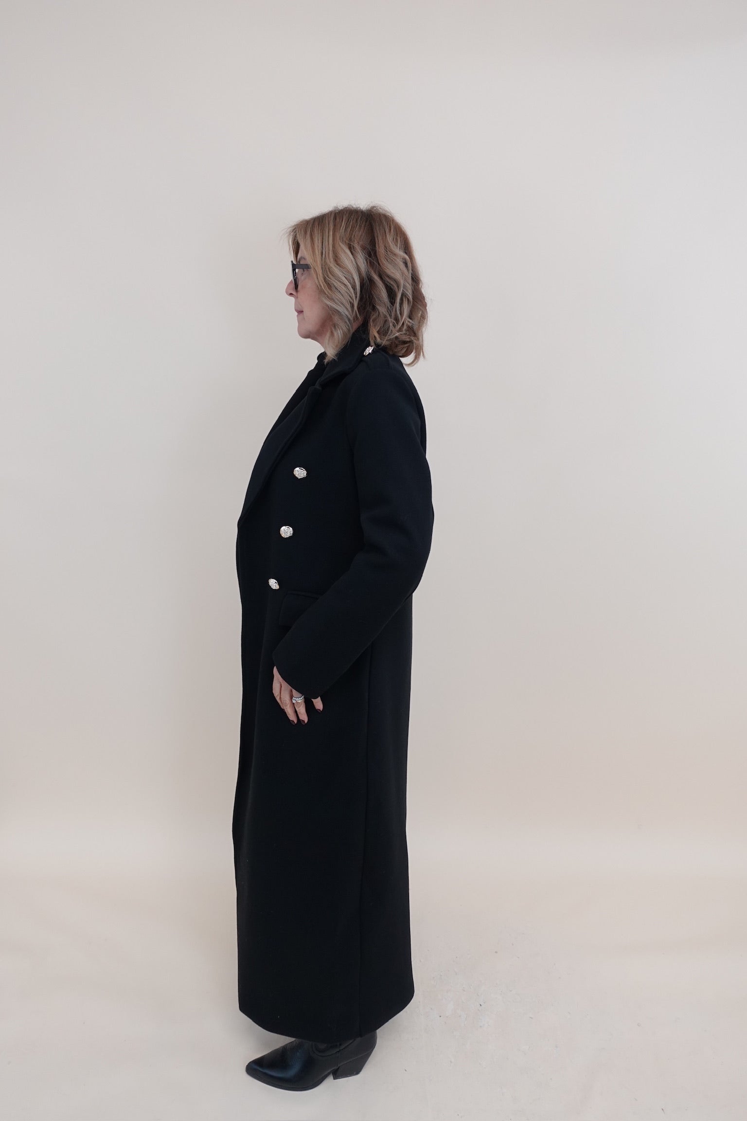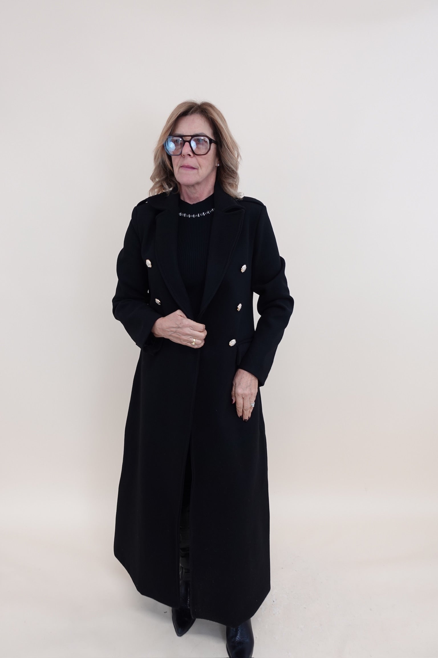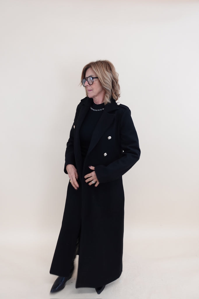 Cappotto lungo con bottoni sul davanti e sulla manica, foderato