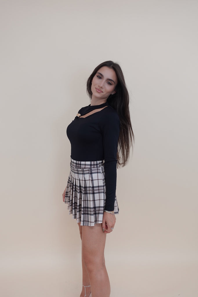 Gonna a pieghette con elastico in vita, pantaloncino sottostante