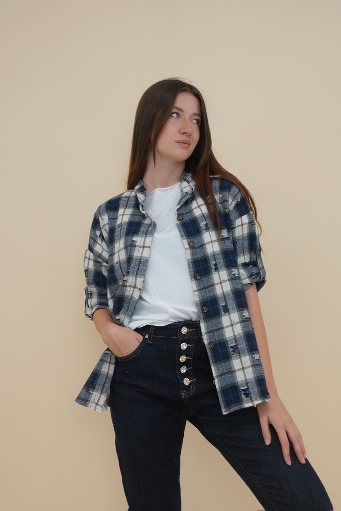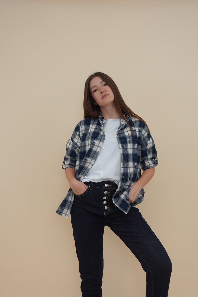 Camicia a scacchi, con vestibilitá morbida ed effetto "vintage "
