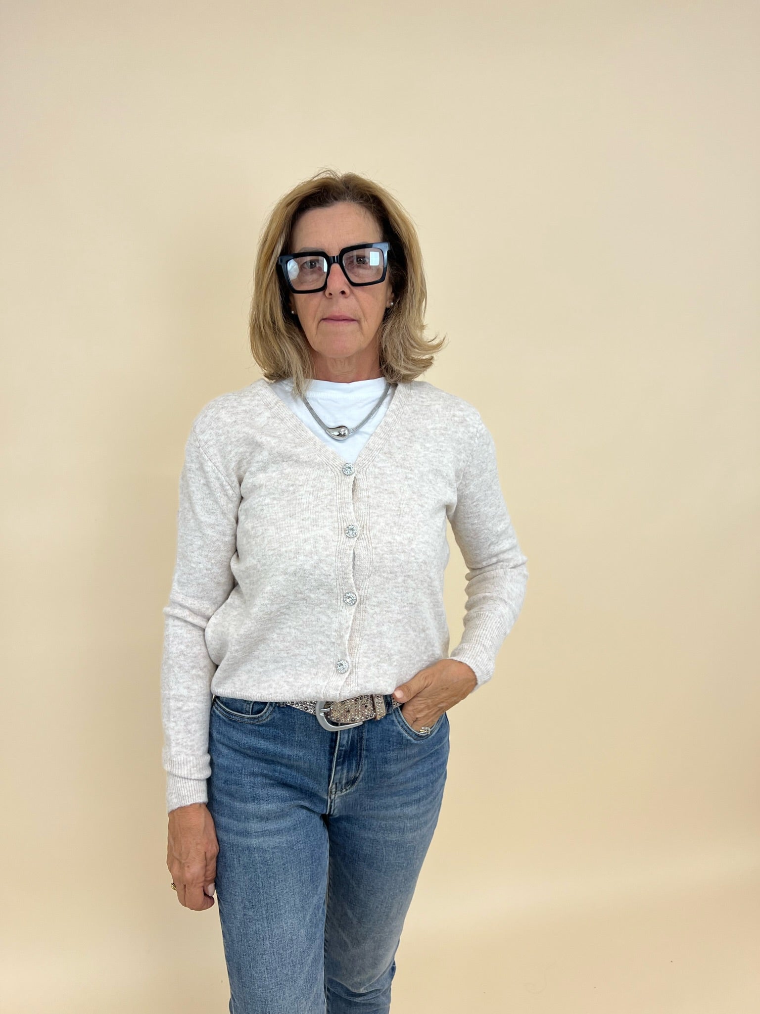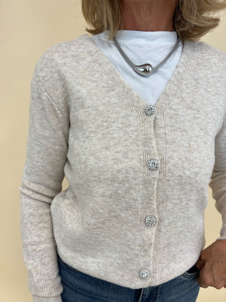 Cardigan con bottoni gioiello con scollo a V