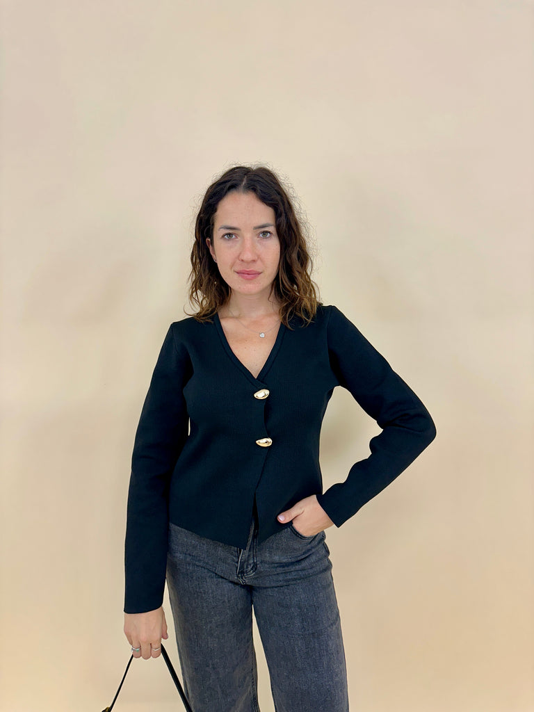 Cardigan strutturato con bottoni gioiello e scollo a V