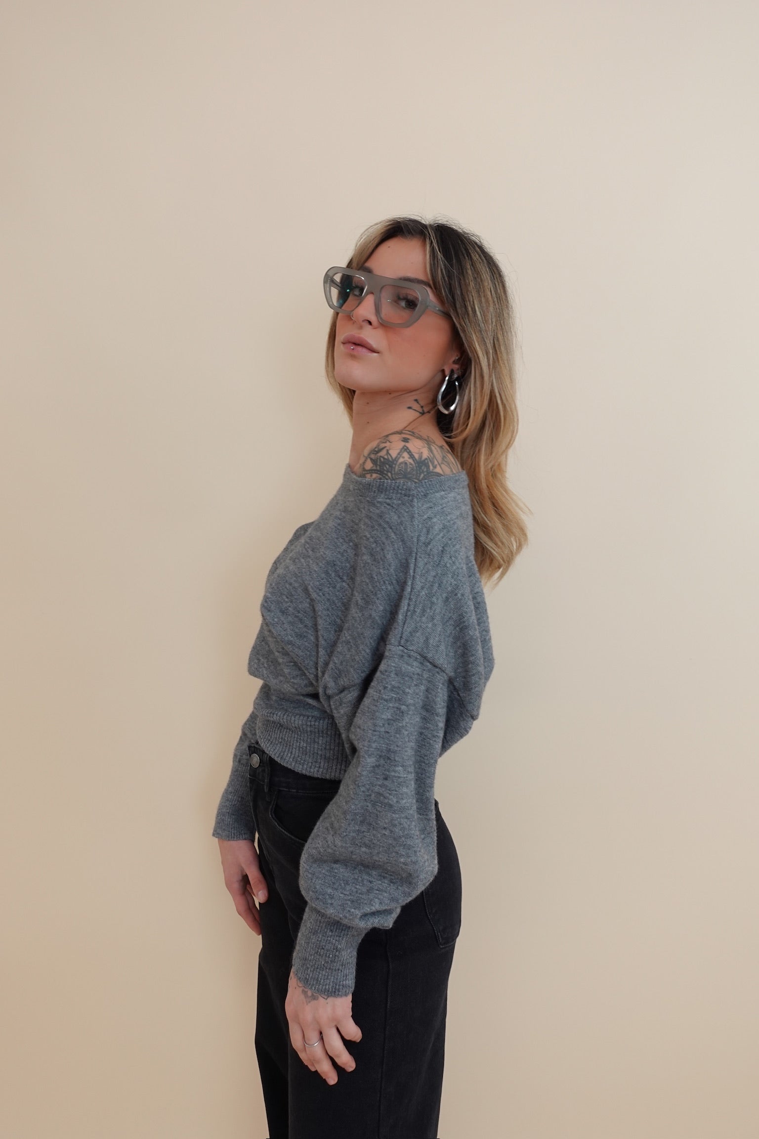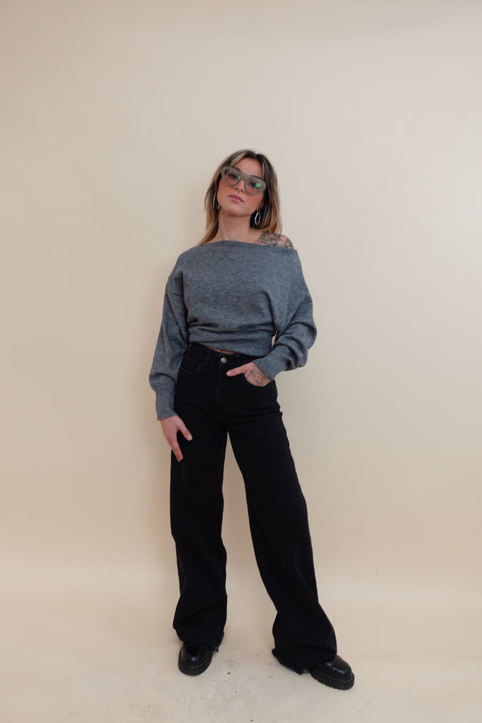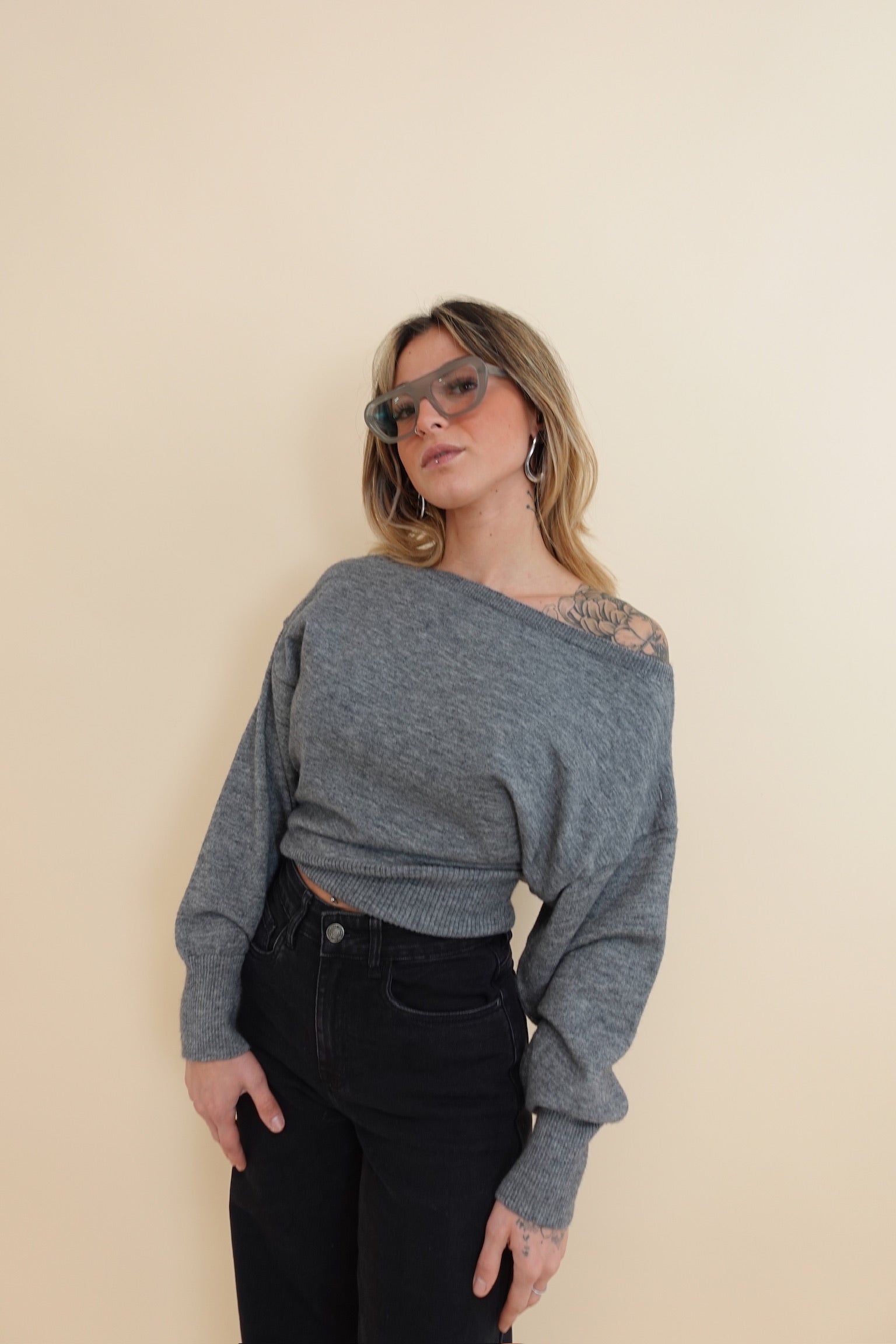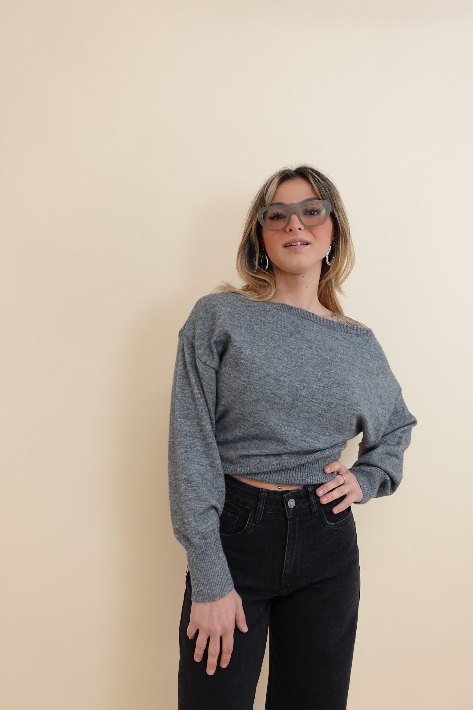 Maglia con scollo ampio, portabile anche con una spalla scoperta