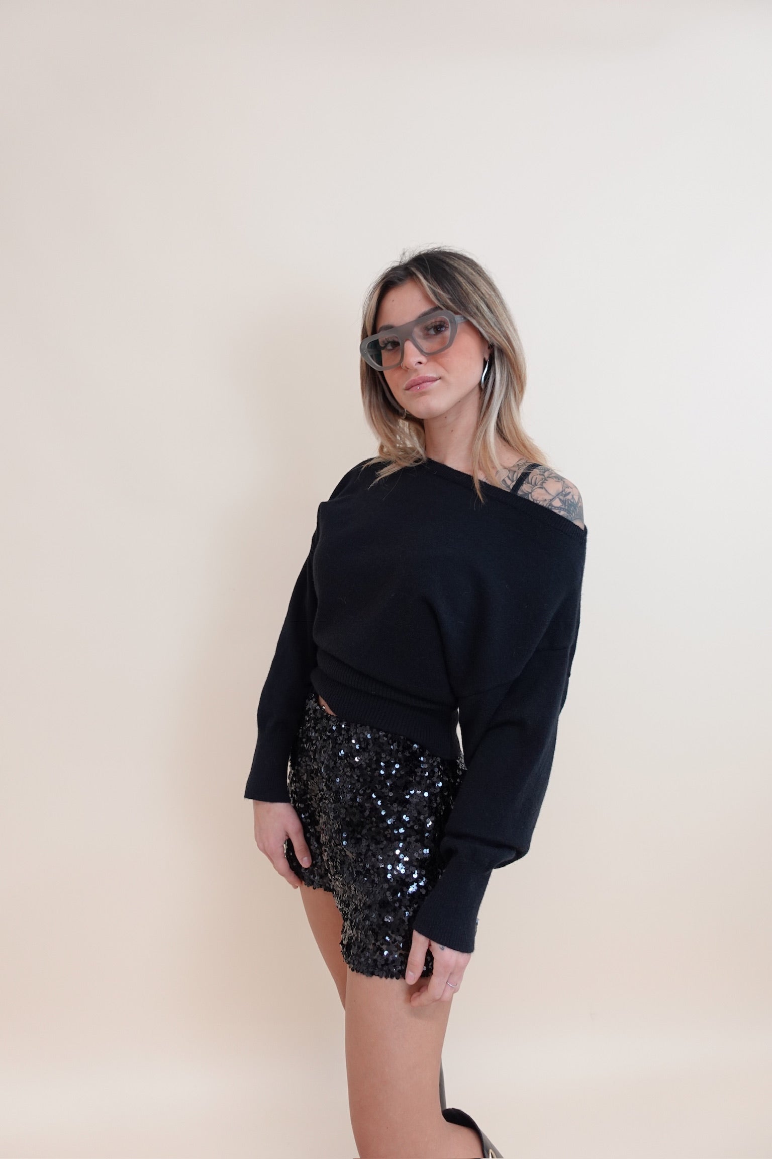 Maglia con scollo ampio, portabile anche con una spalla scoperta