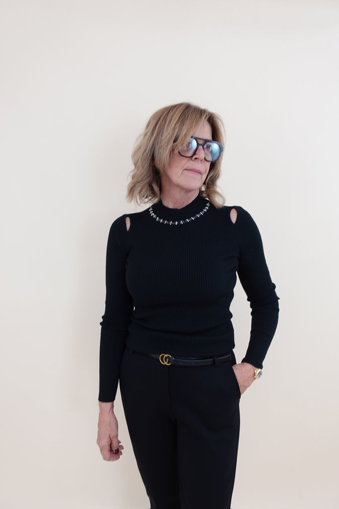 Maglioncino elasticizzato con cut out e brillantini