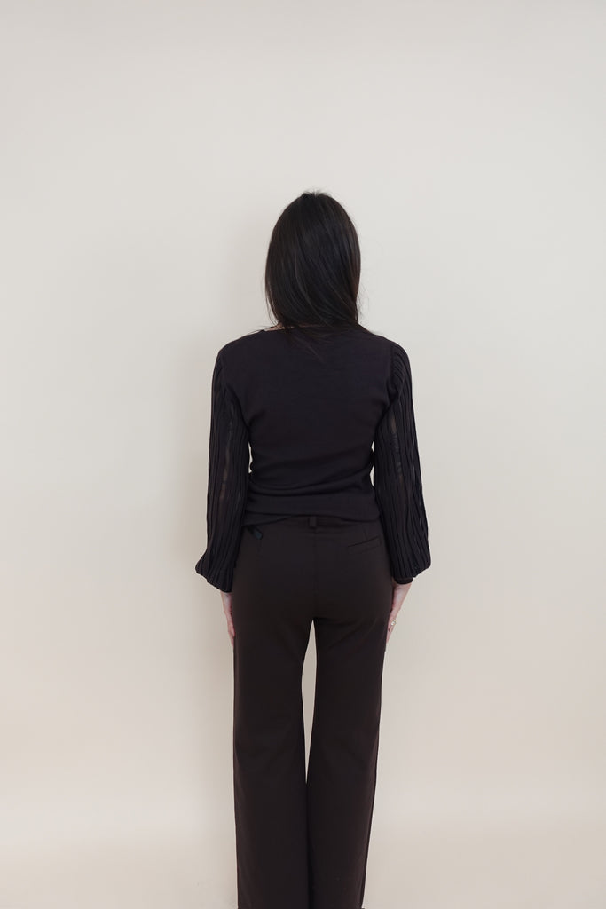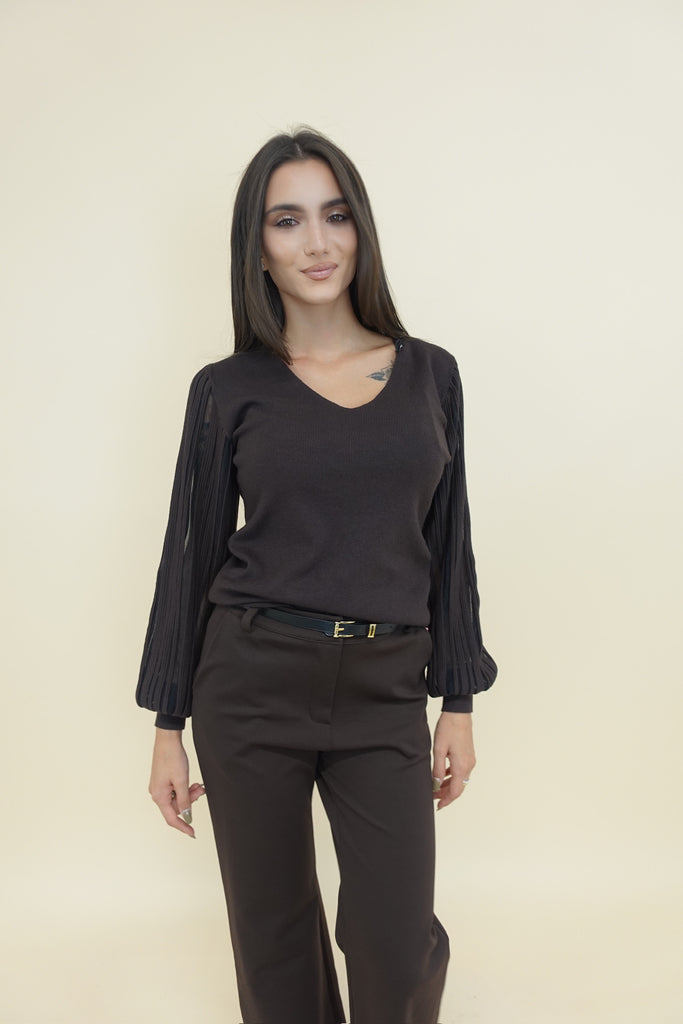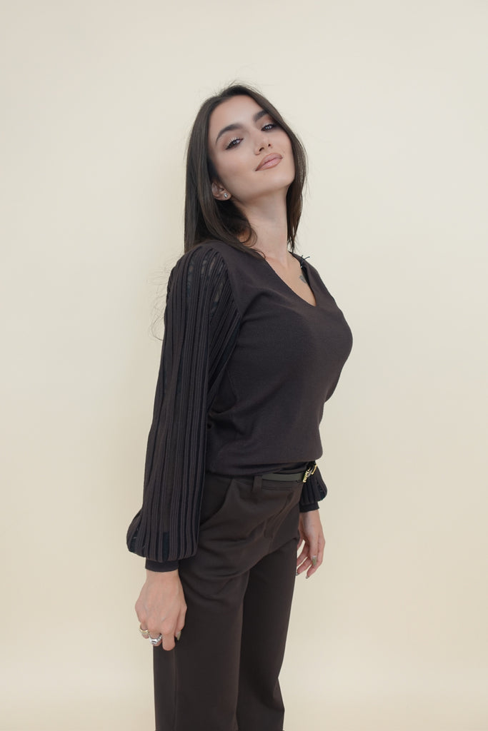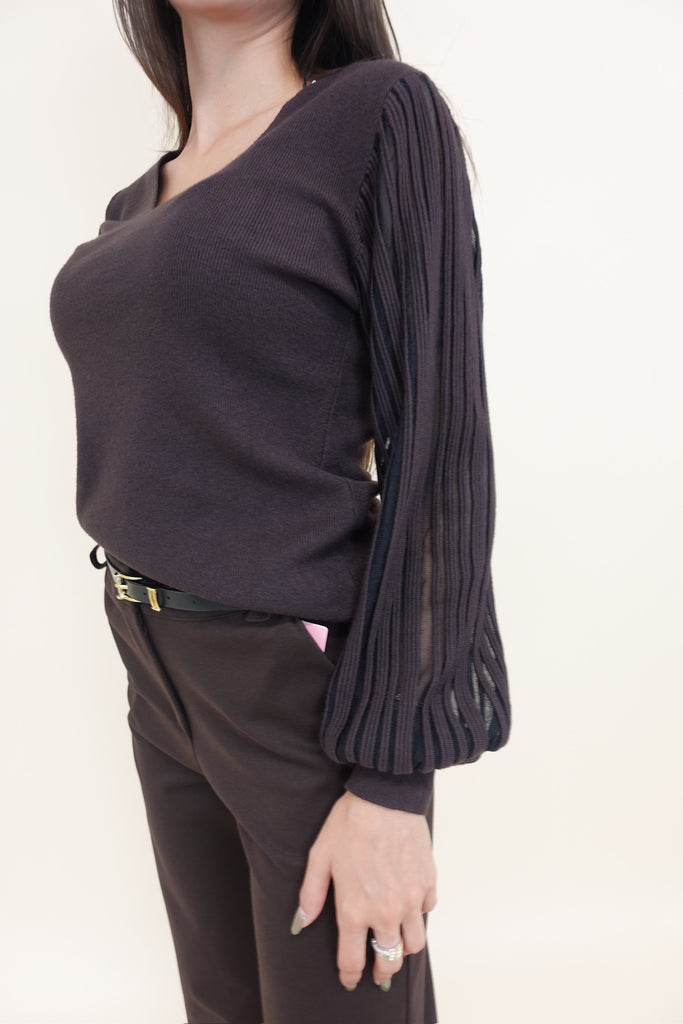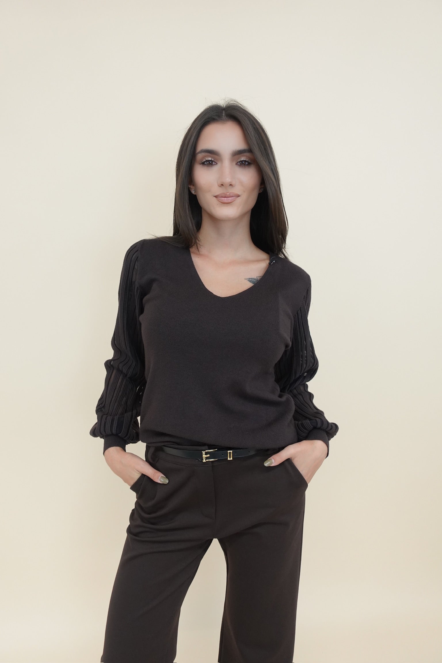 Maglioncino con scollo a v, manica a palloncino con trasparenze