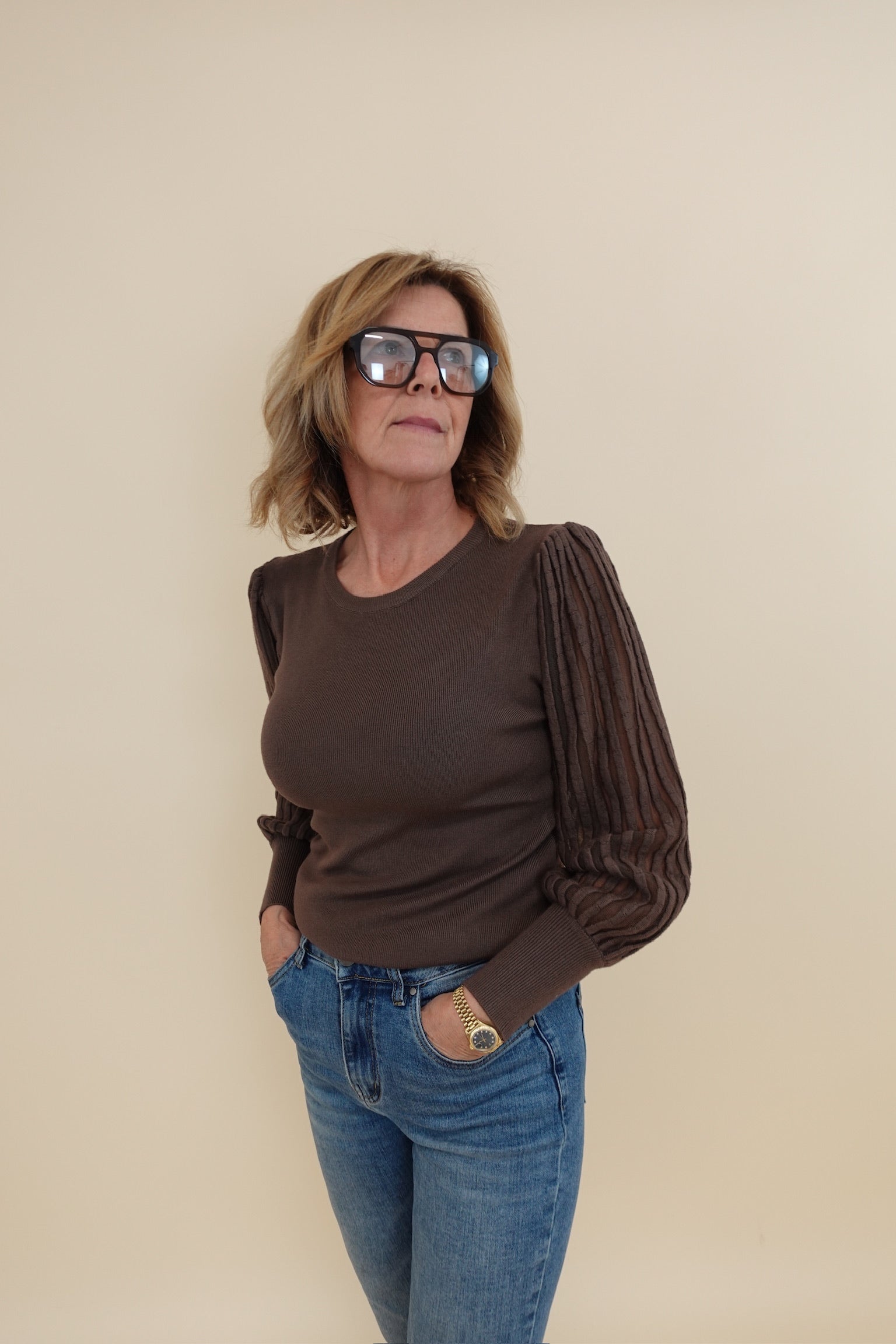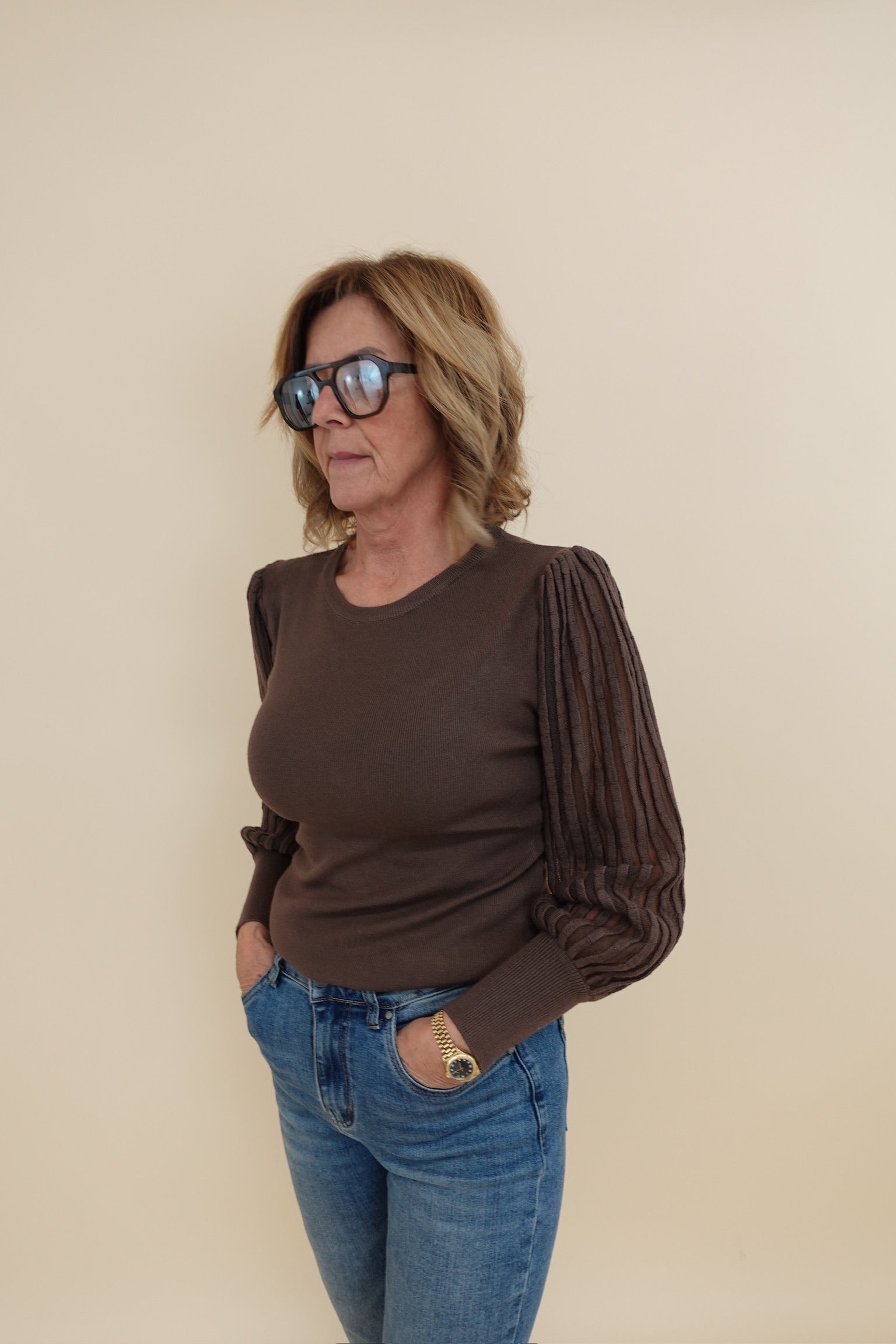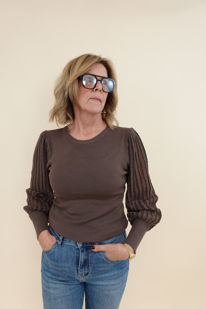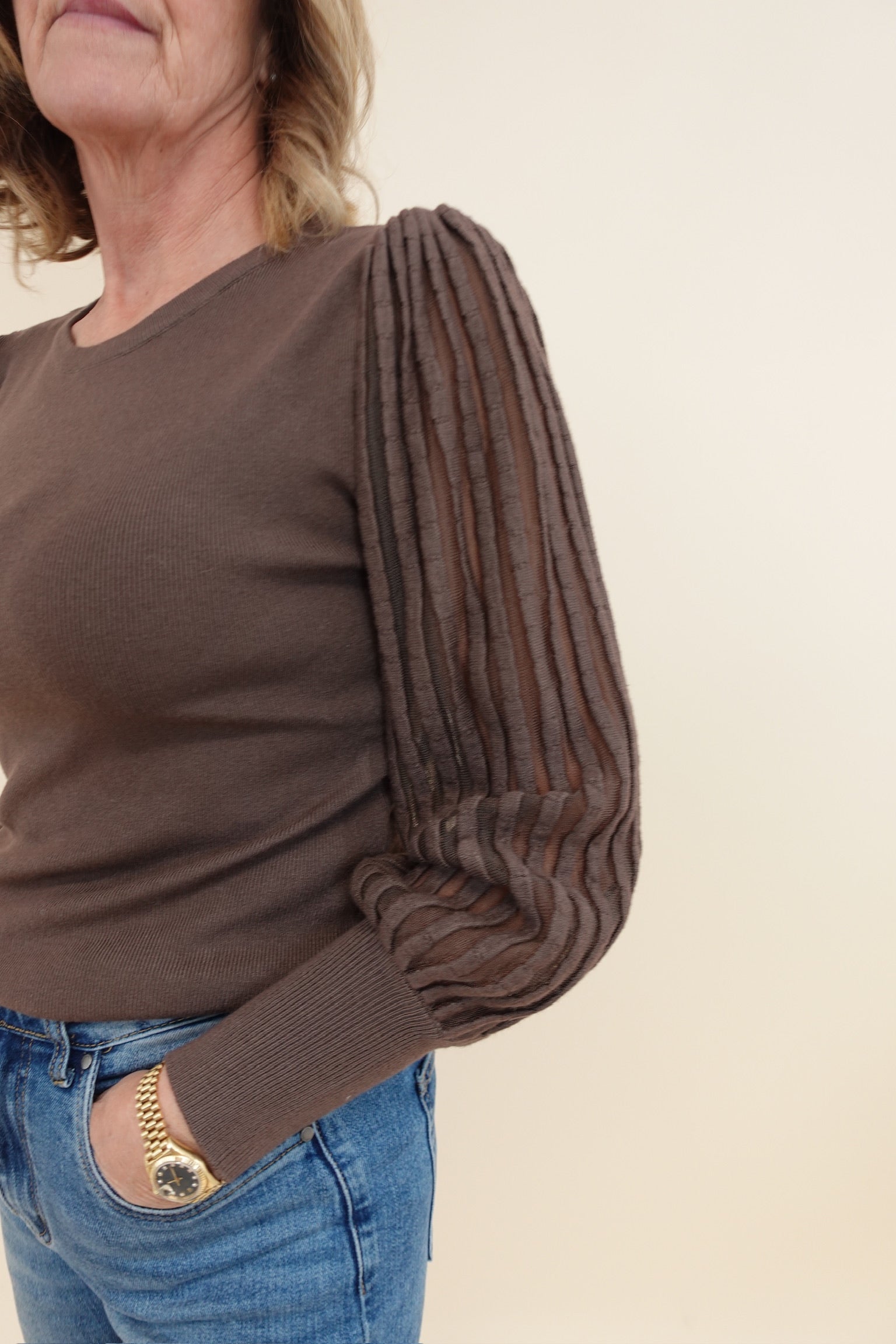 Maglioncino a girocollo manica a palloncino con trasparenze