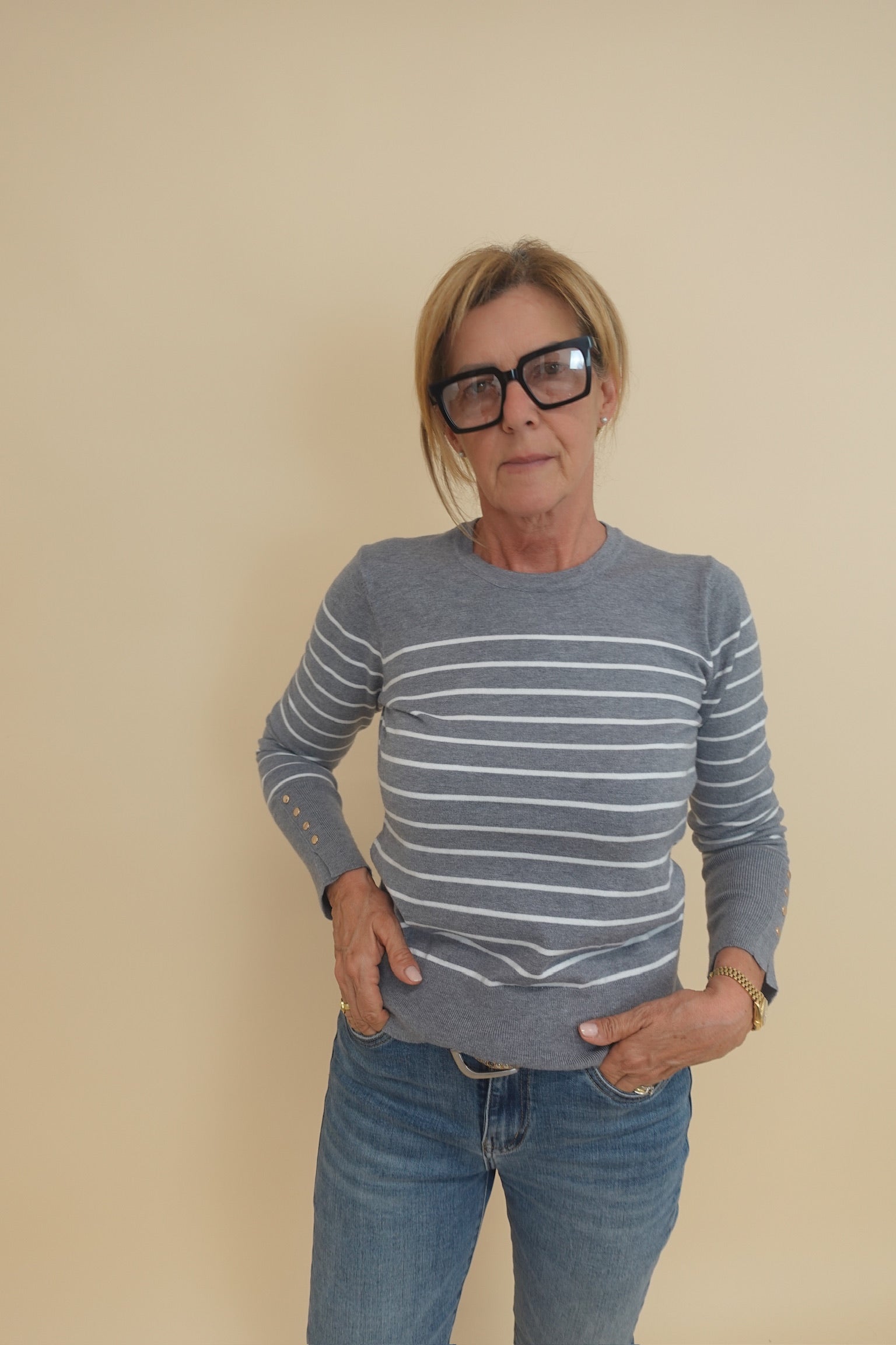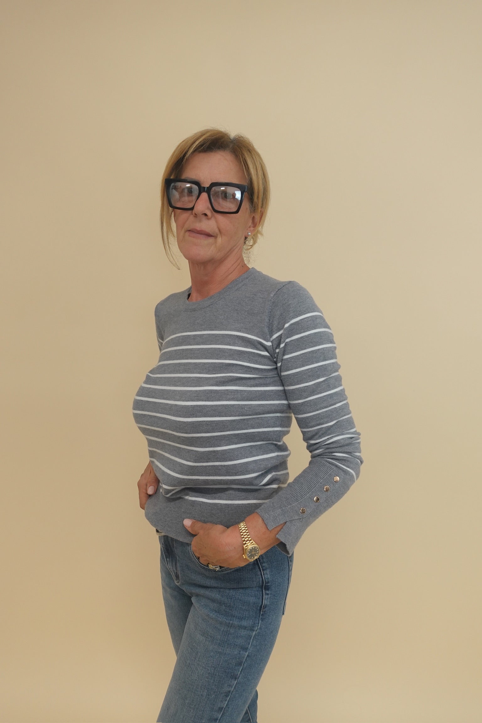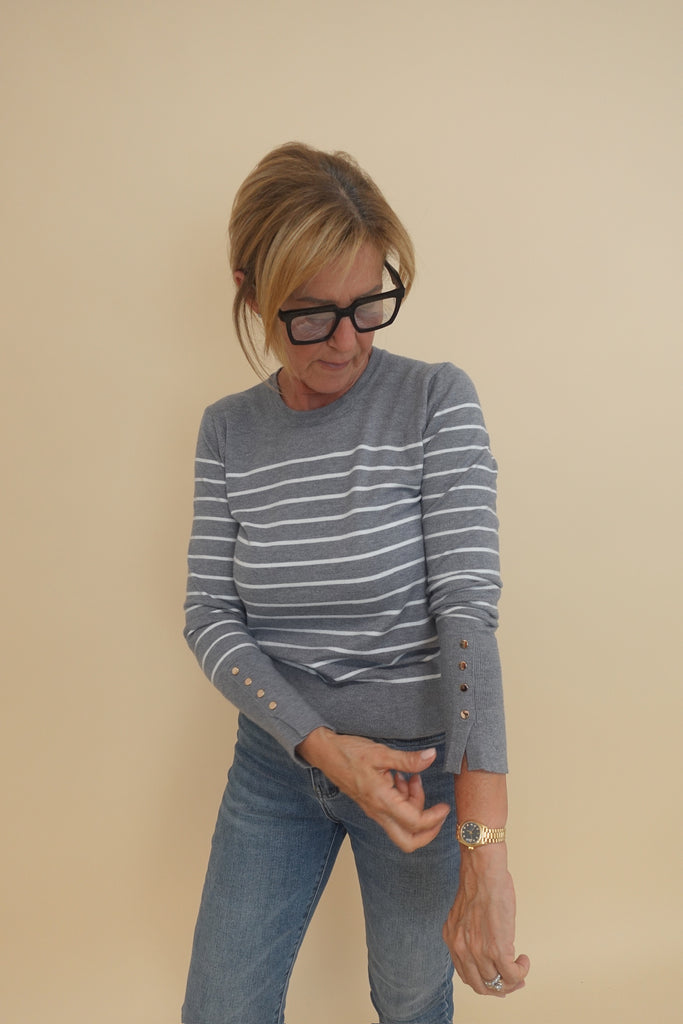 Maglioncino a righe con bottoncini dorati
