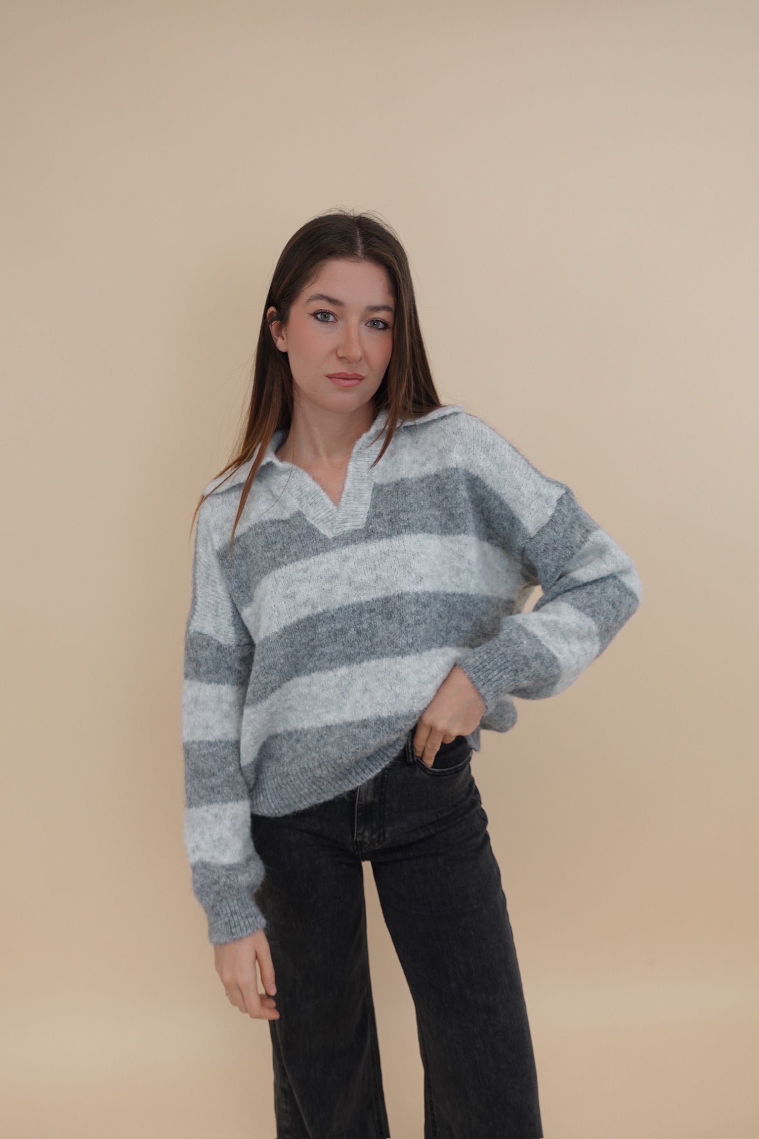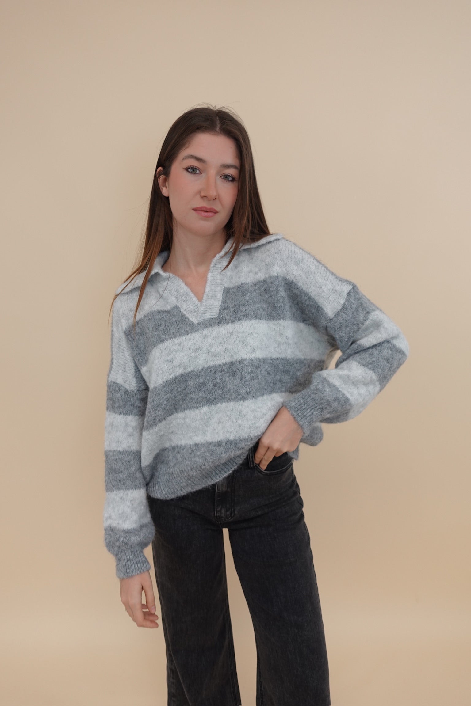 Maglione oversize a righe con colletto