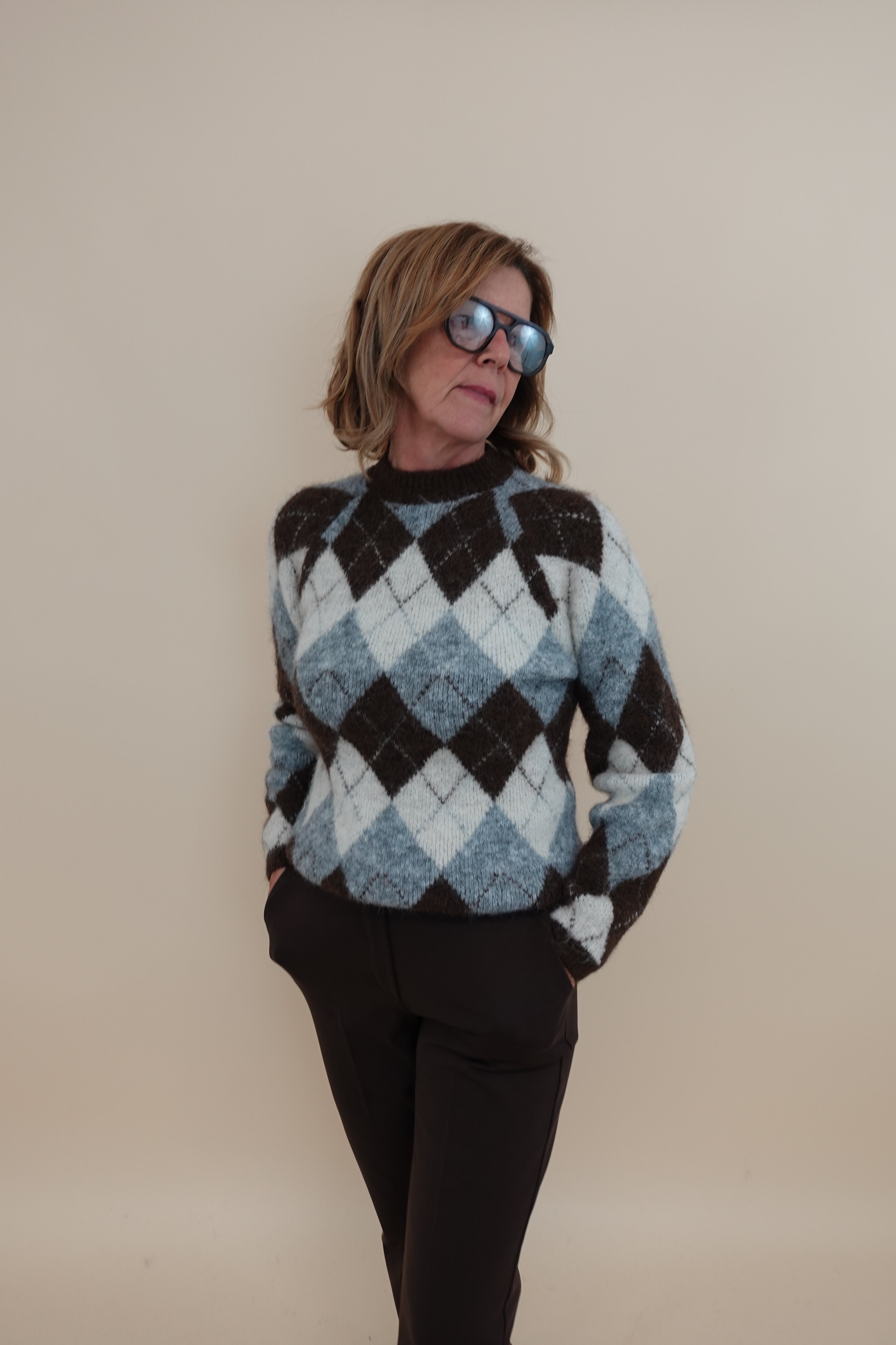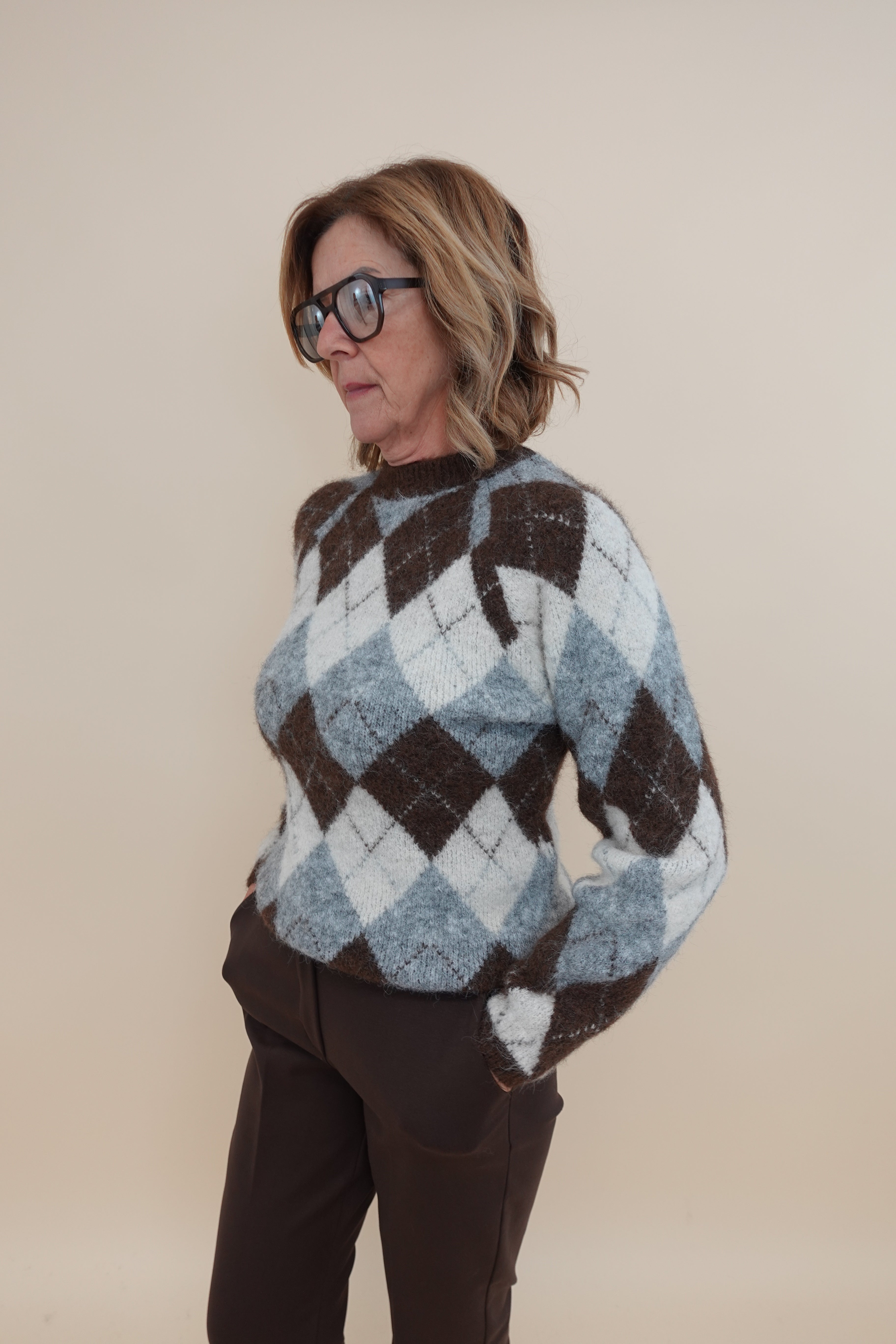 Maglione rombi marrone