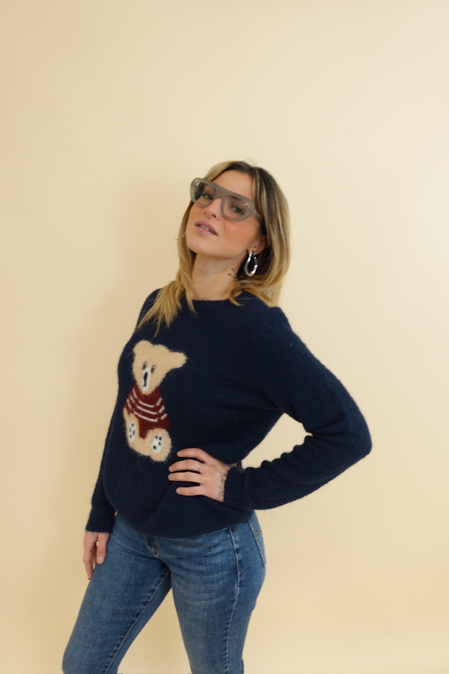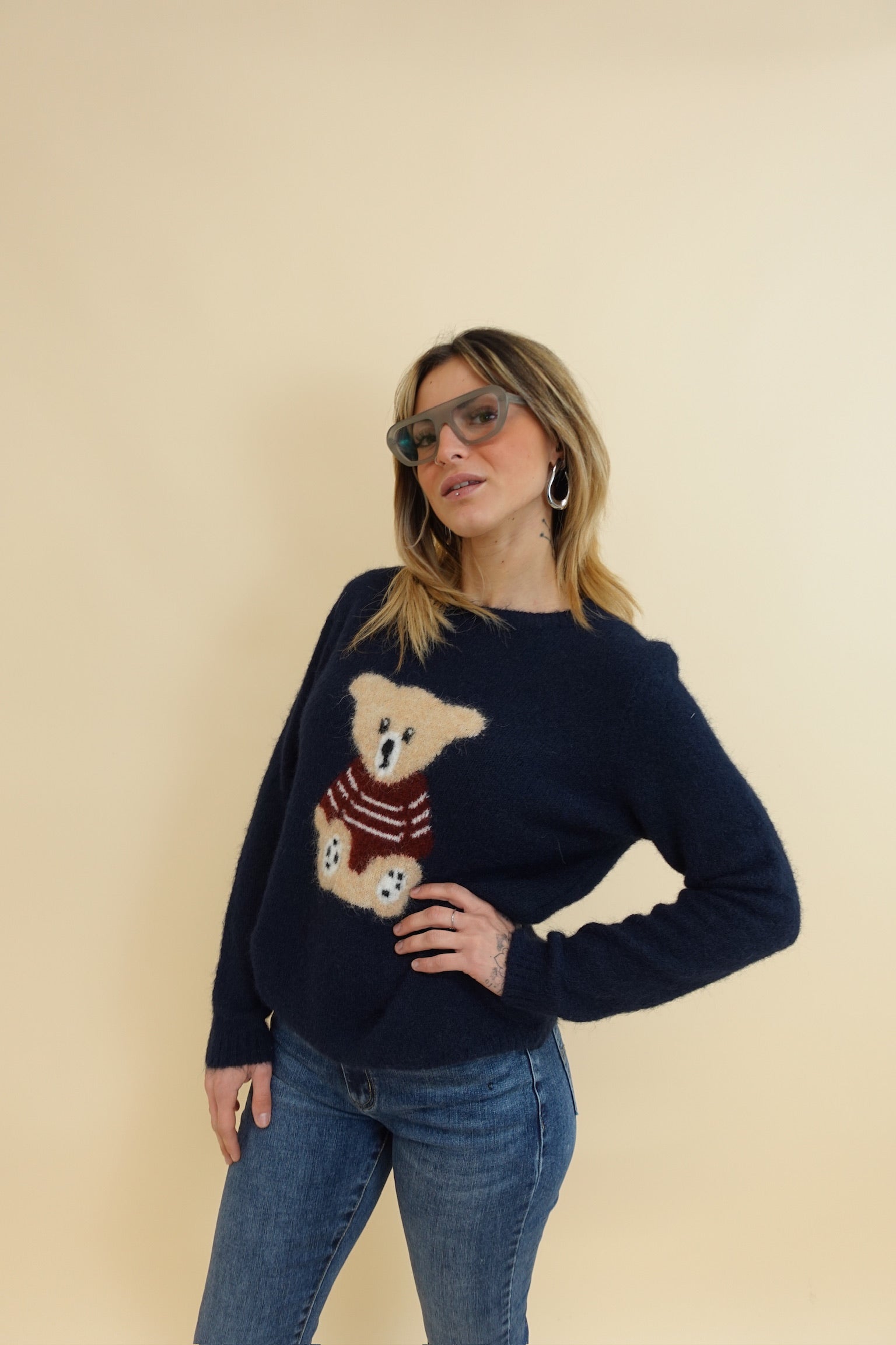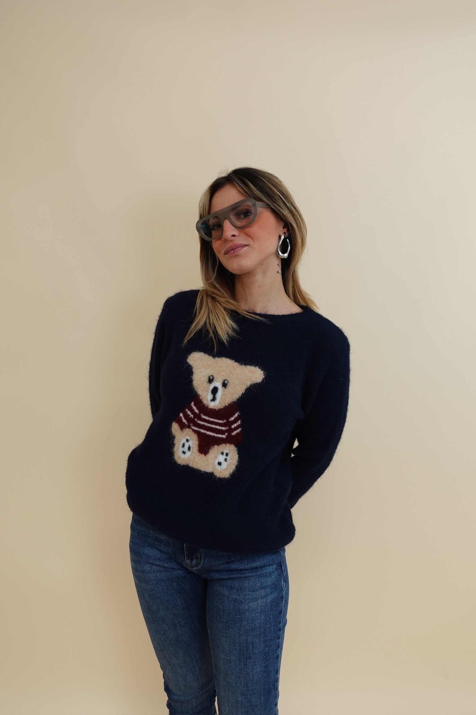 Pullover con orsetto a girocollo