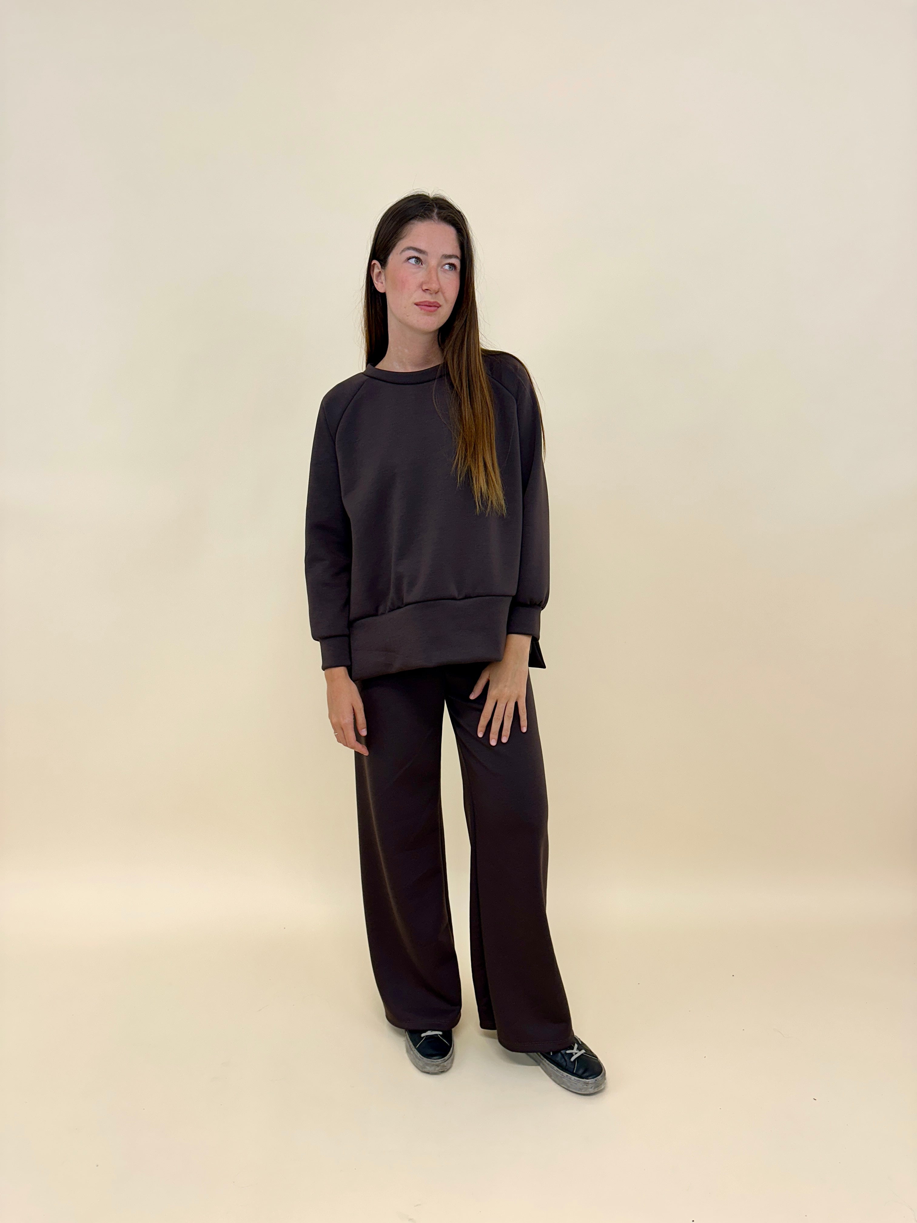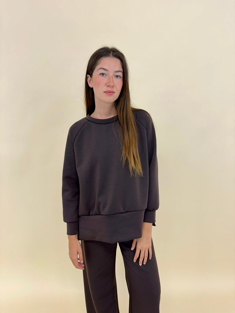 - felpa a girolocco garzata super morbida con spacchetti laterali