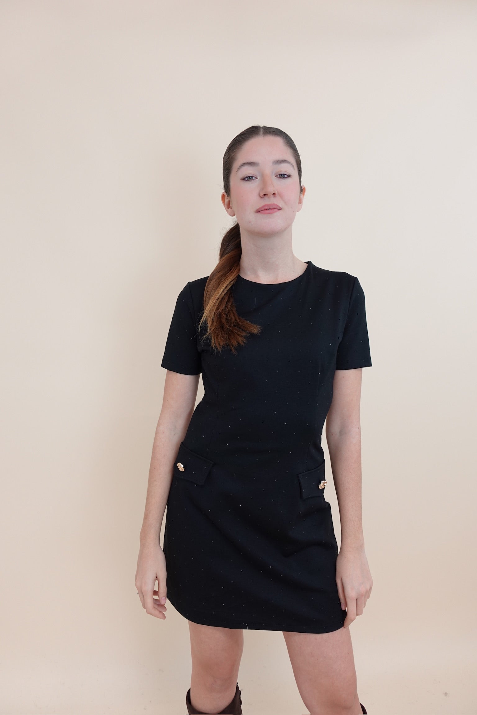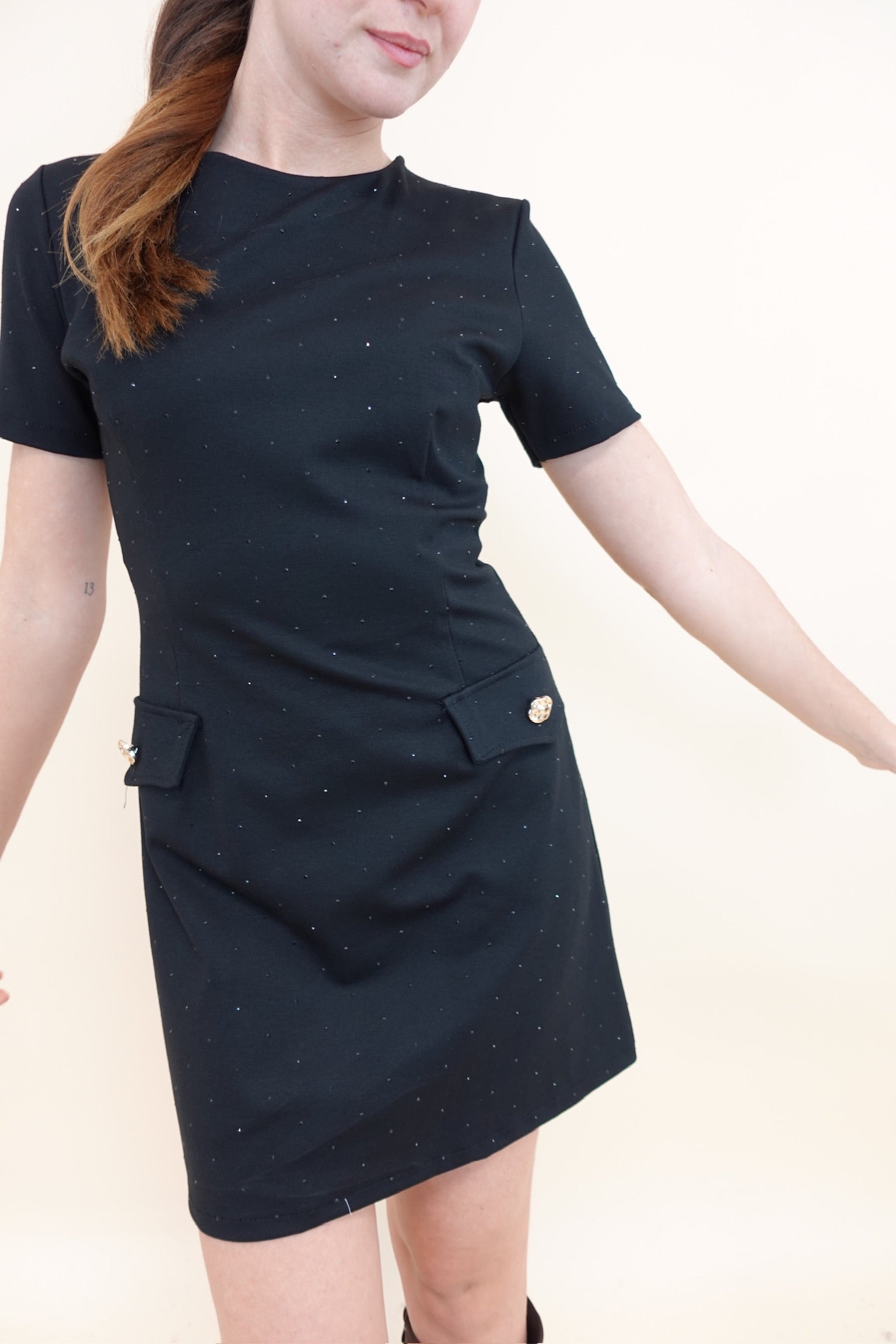 Abitino con brillantini, sfiancato ed elasticizzato. con zip a scomparsa sul retro