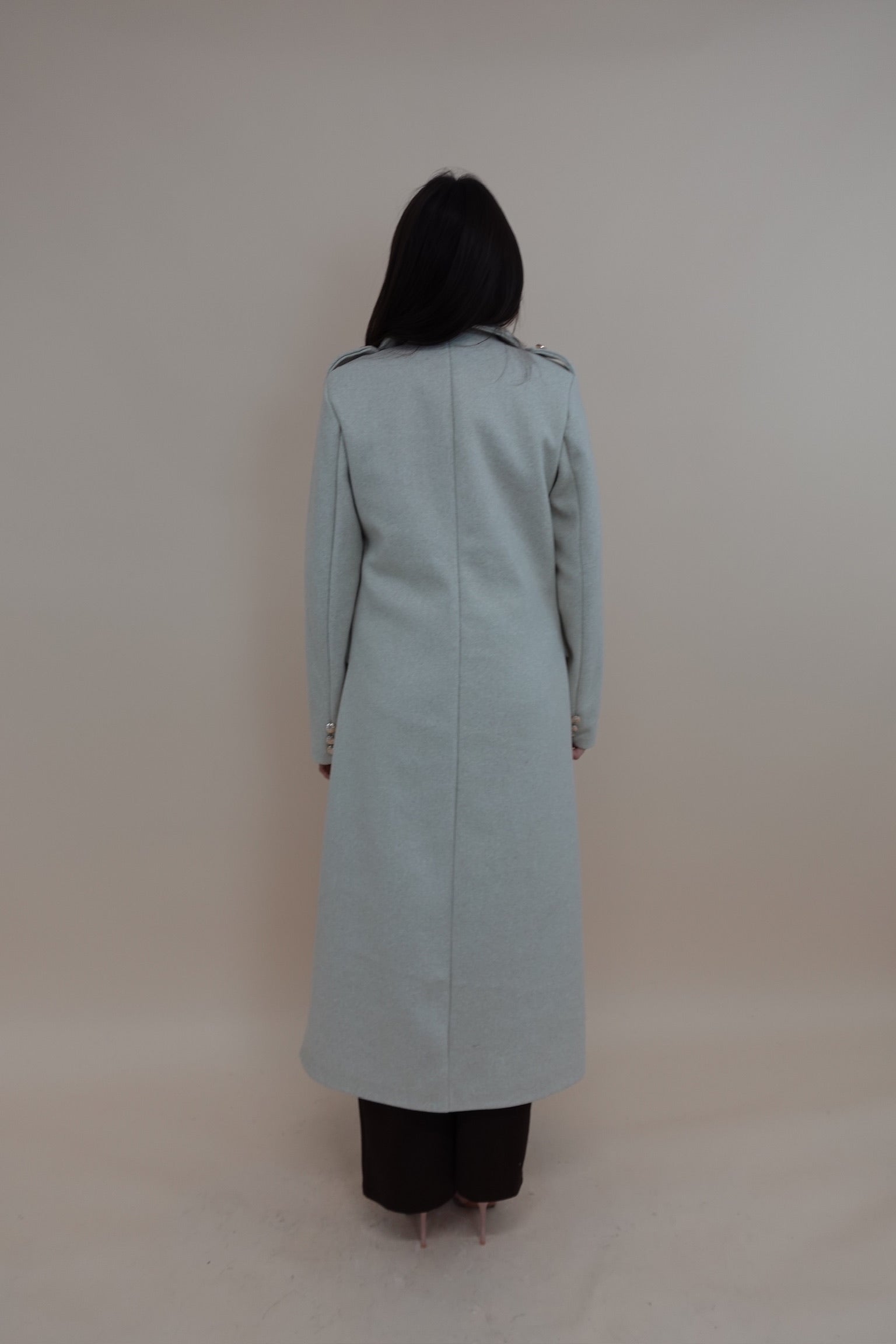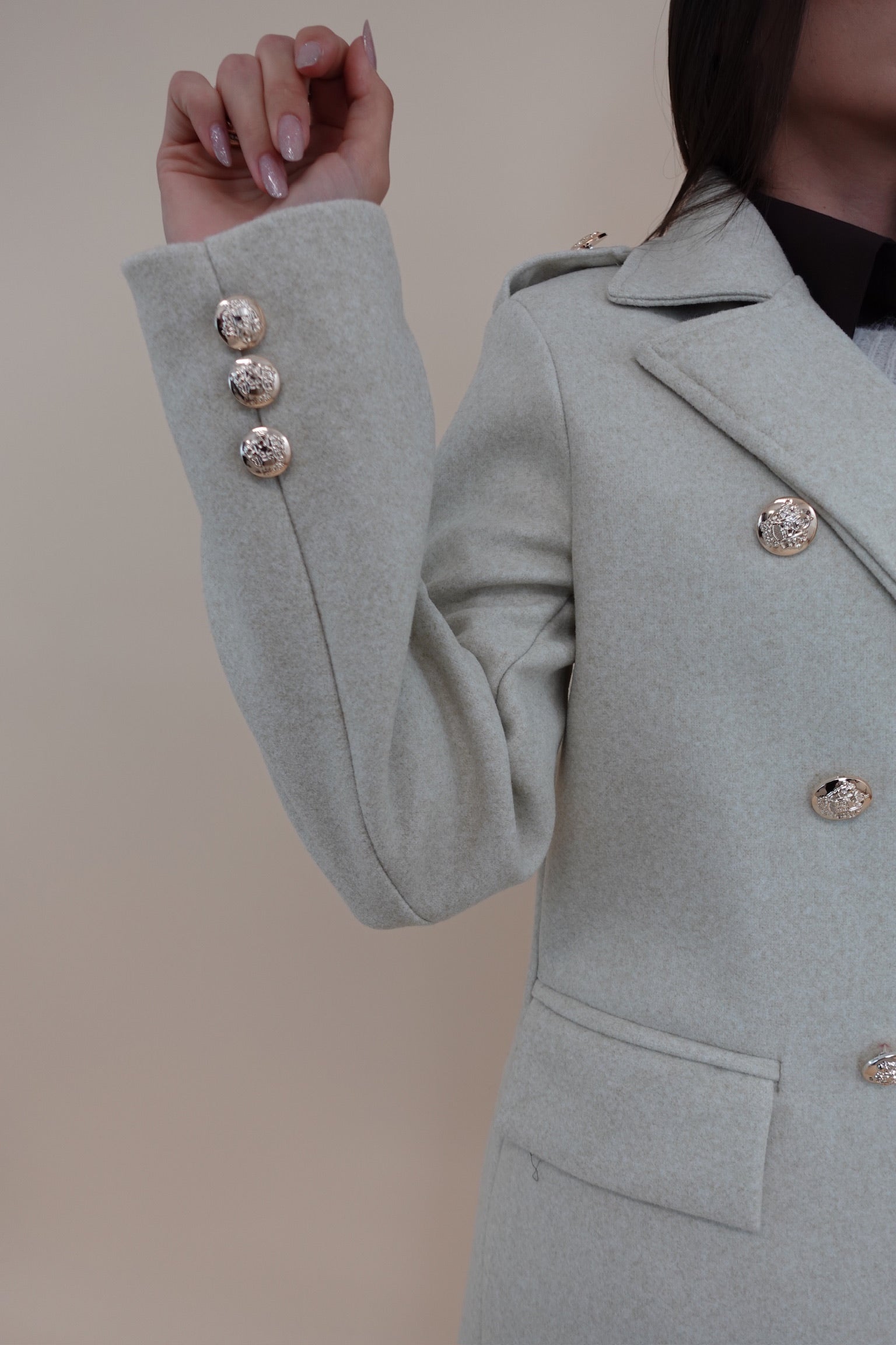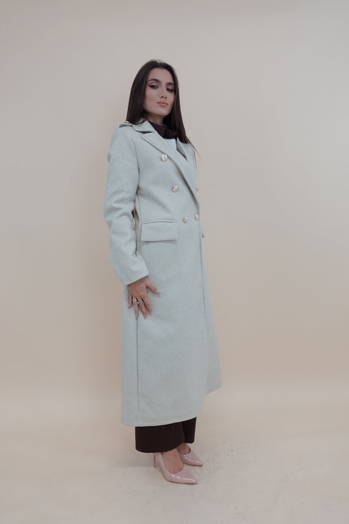 Cappotto lungo con bottoni sul davanti e sulla manica, foderato