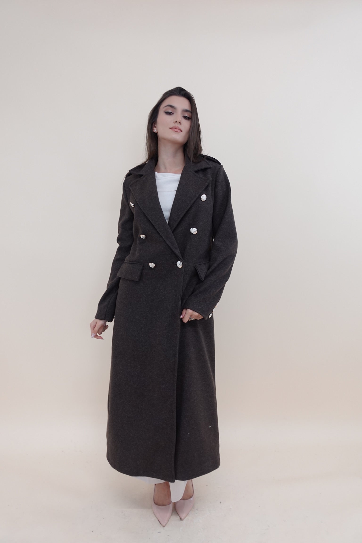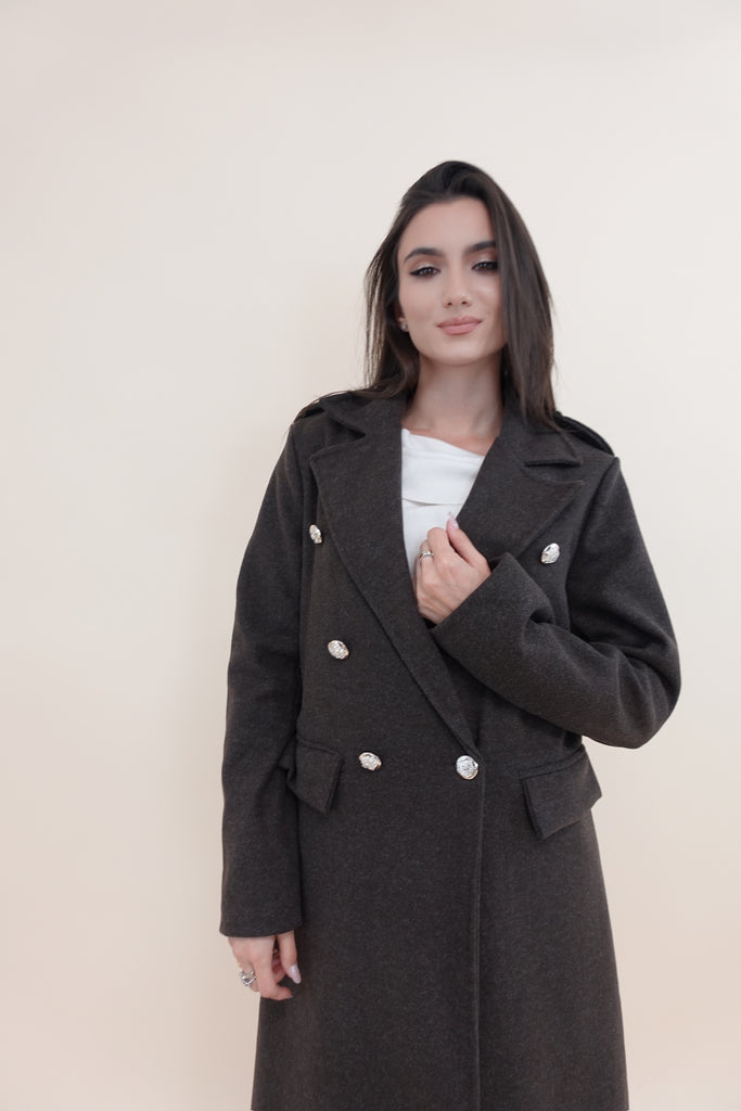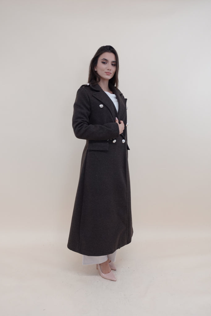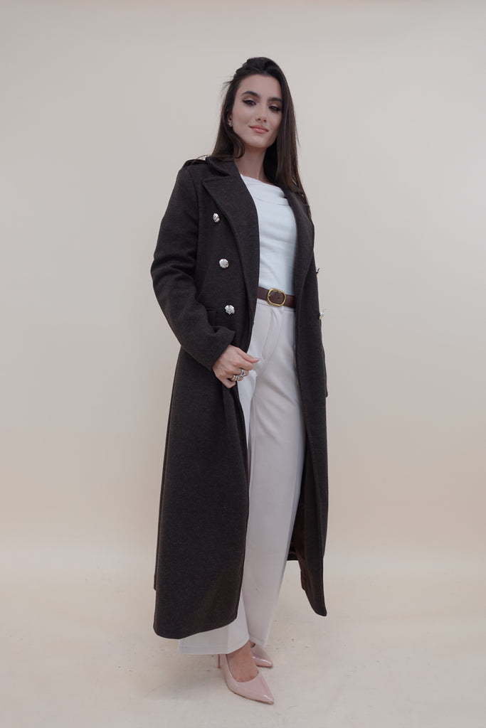 Cappotto lungo con bottoni sul davanti e sulla manica, foderato