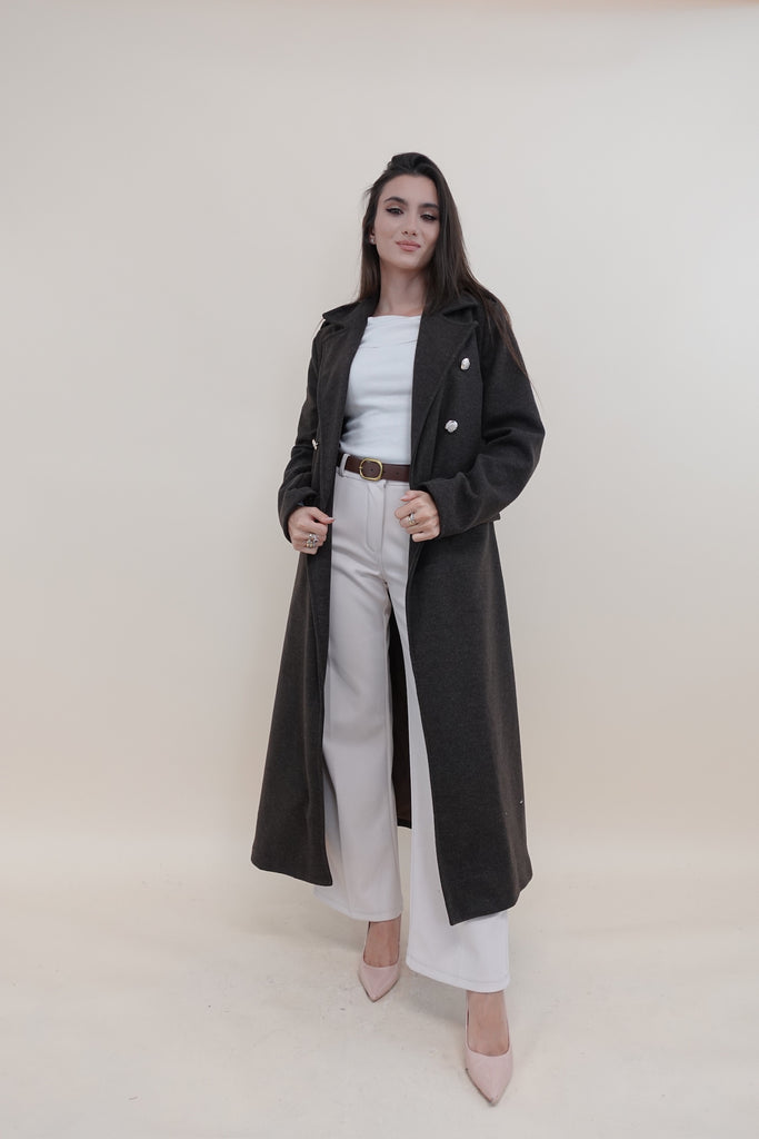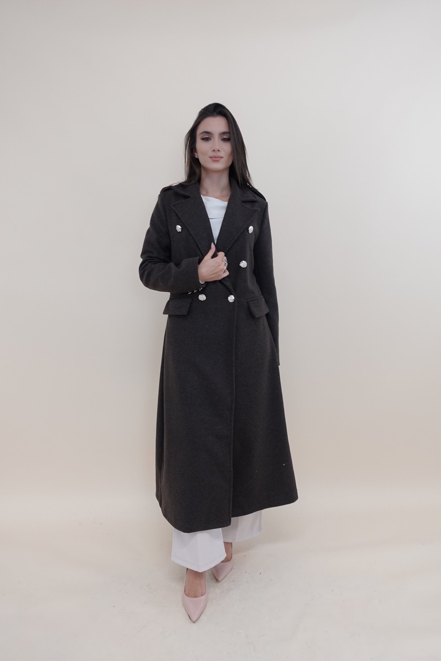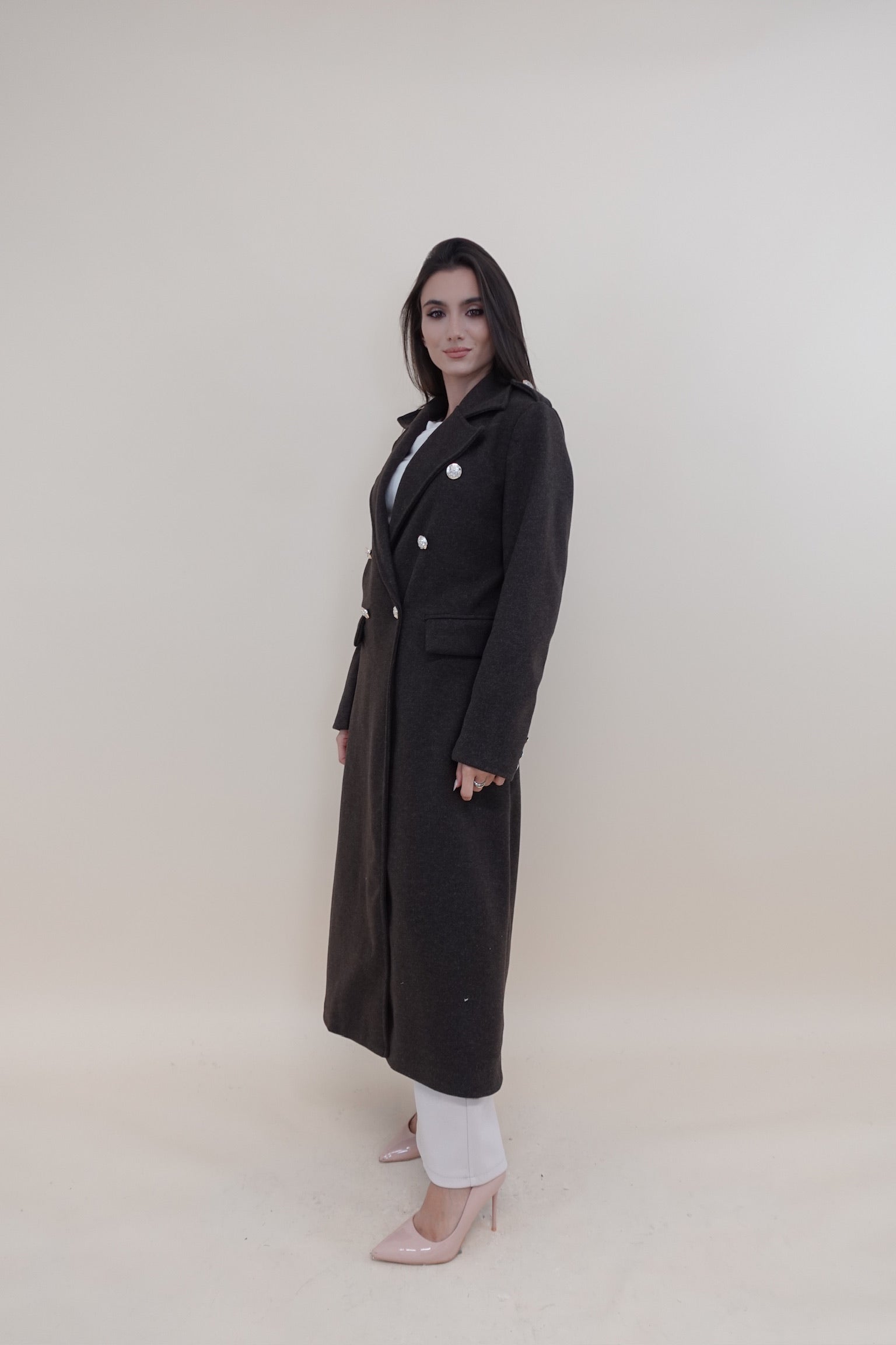 Cappotto lungo con bottoni sul davanti e sulla manica, foderato