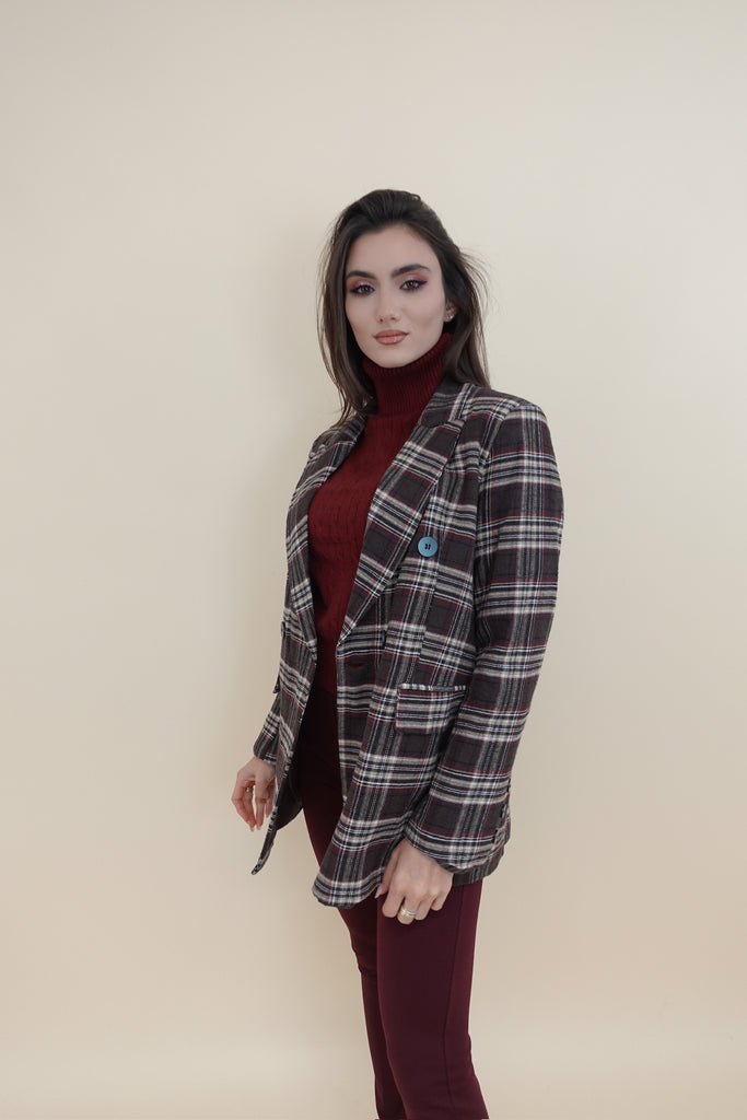 taglia unica, vestibilitá leggermente oversize con spalle imbottite e bottoncini sulla manica