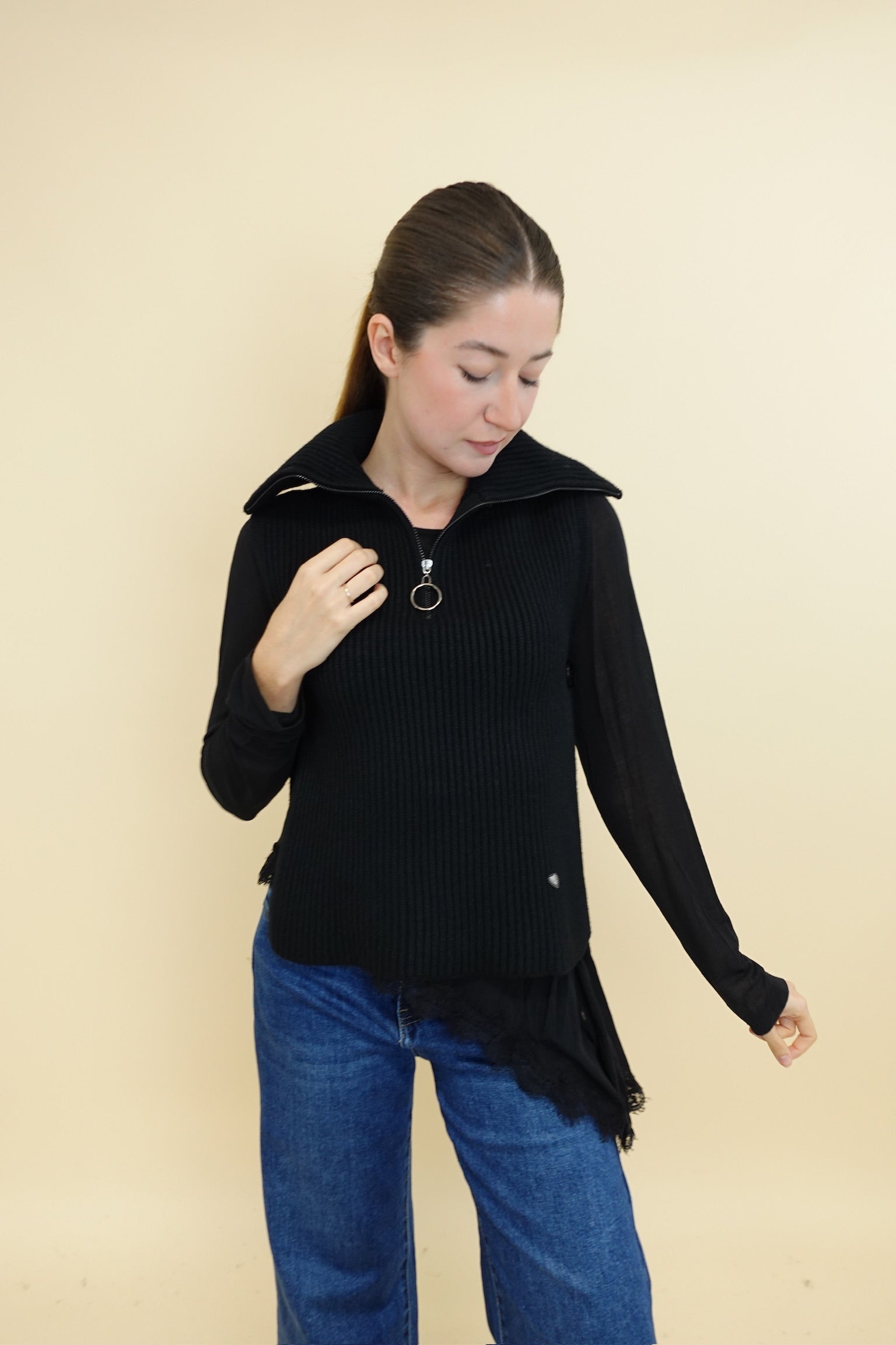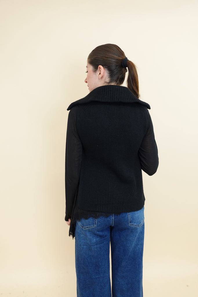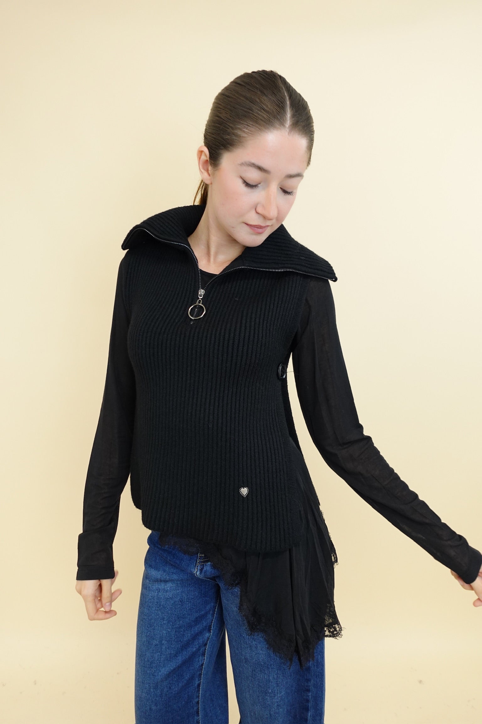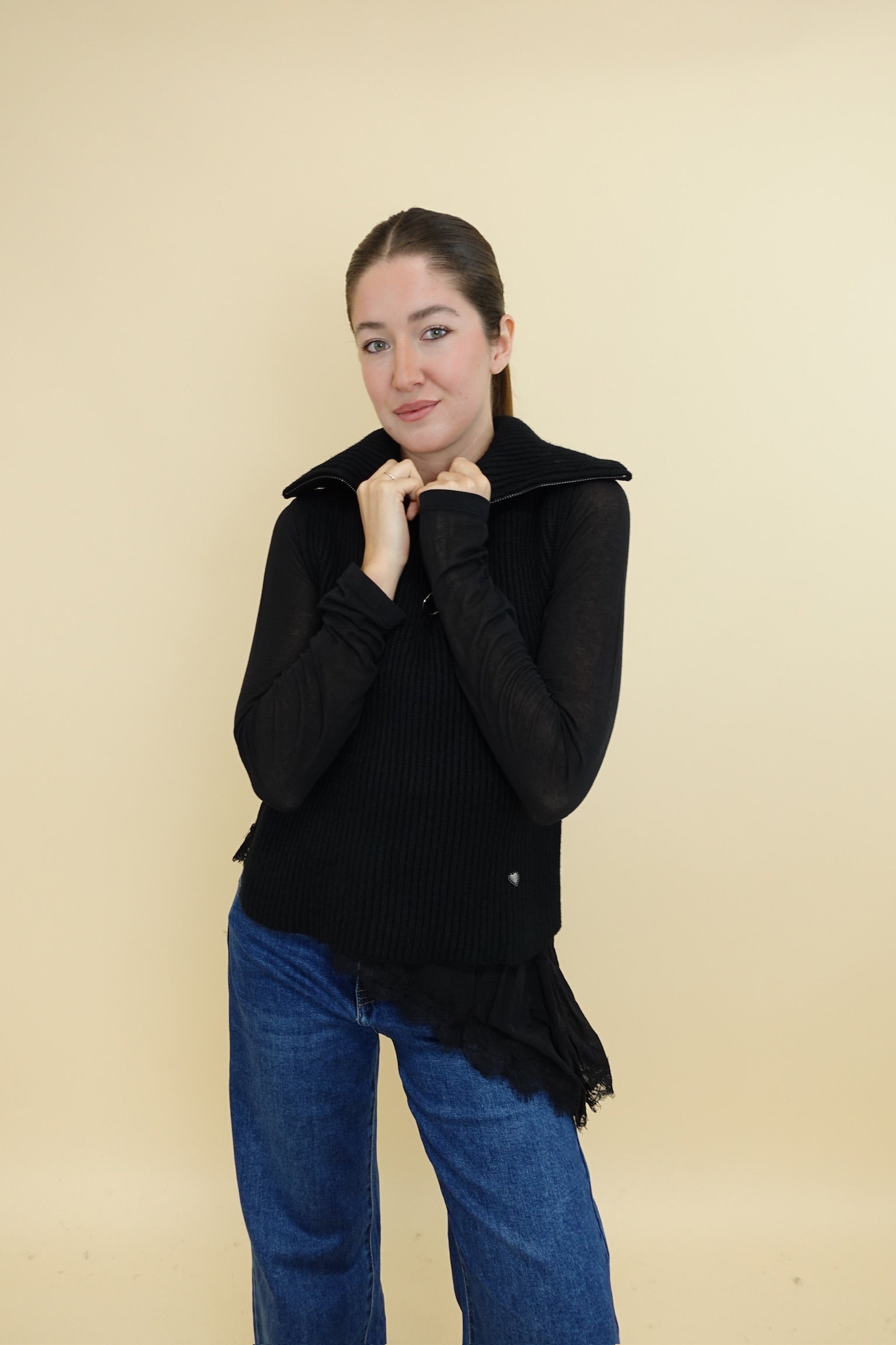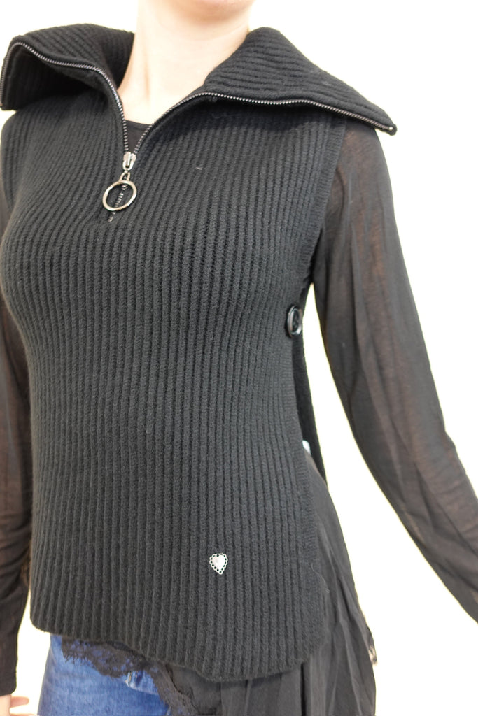 Gilet con collo a vulcano com zip, spacchi laterali com