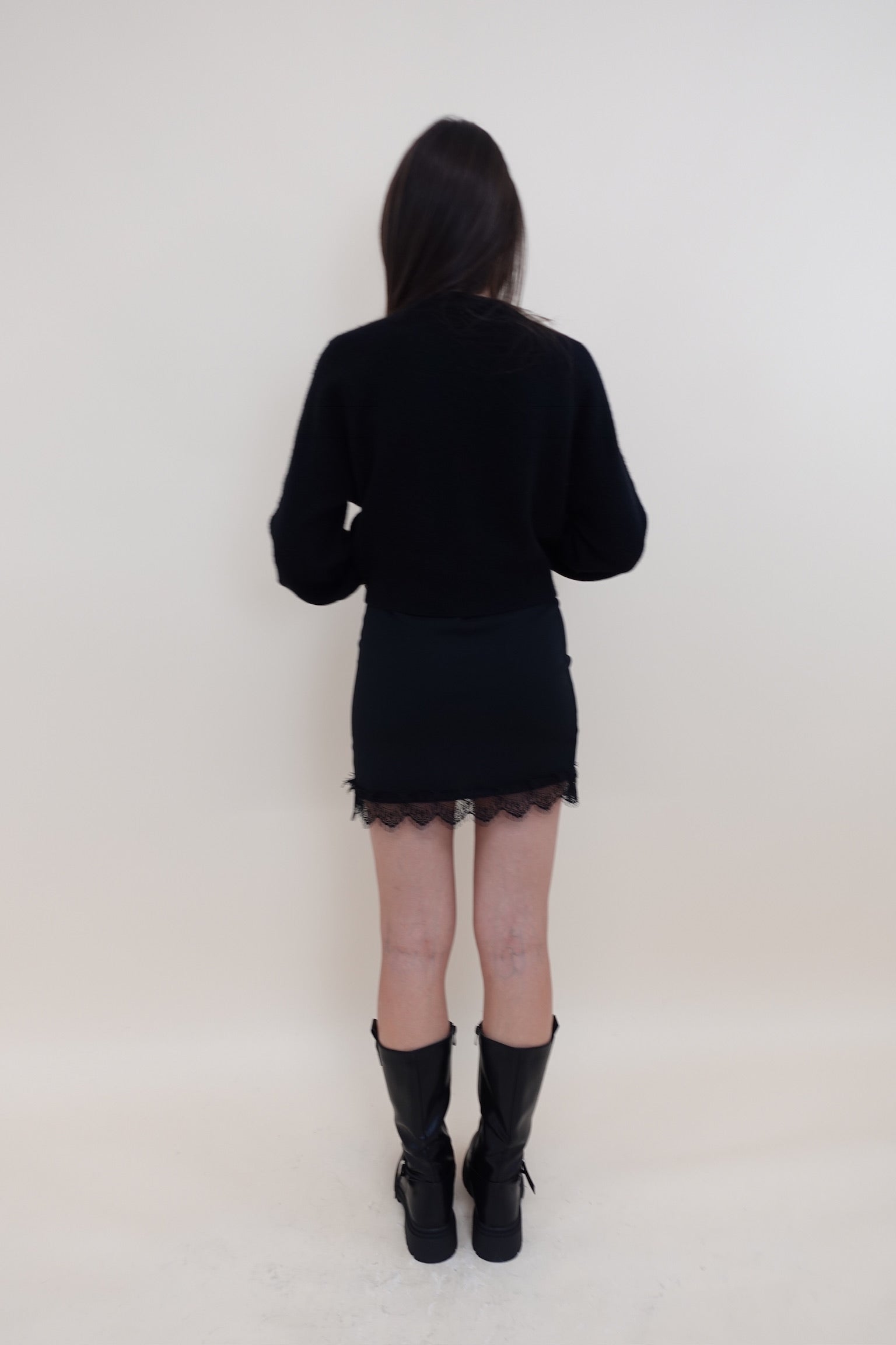 Gonna a tubilo elasticizzata, con fondo in pizzo