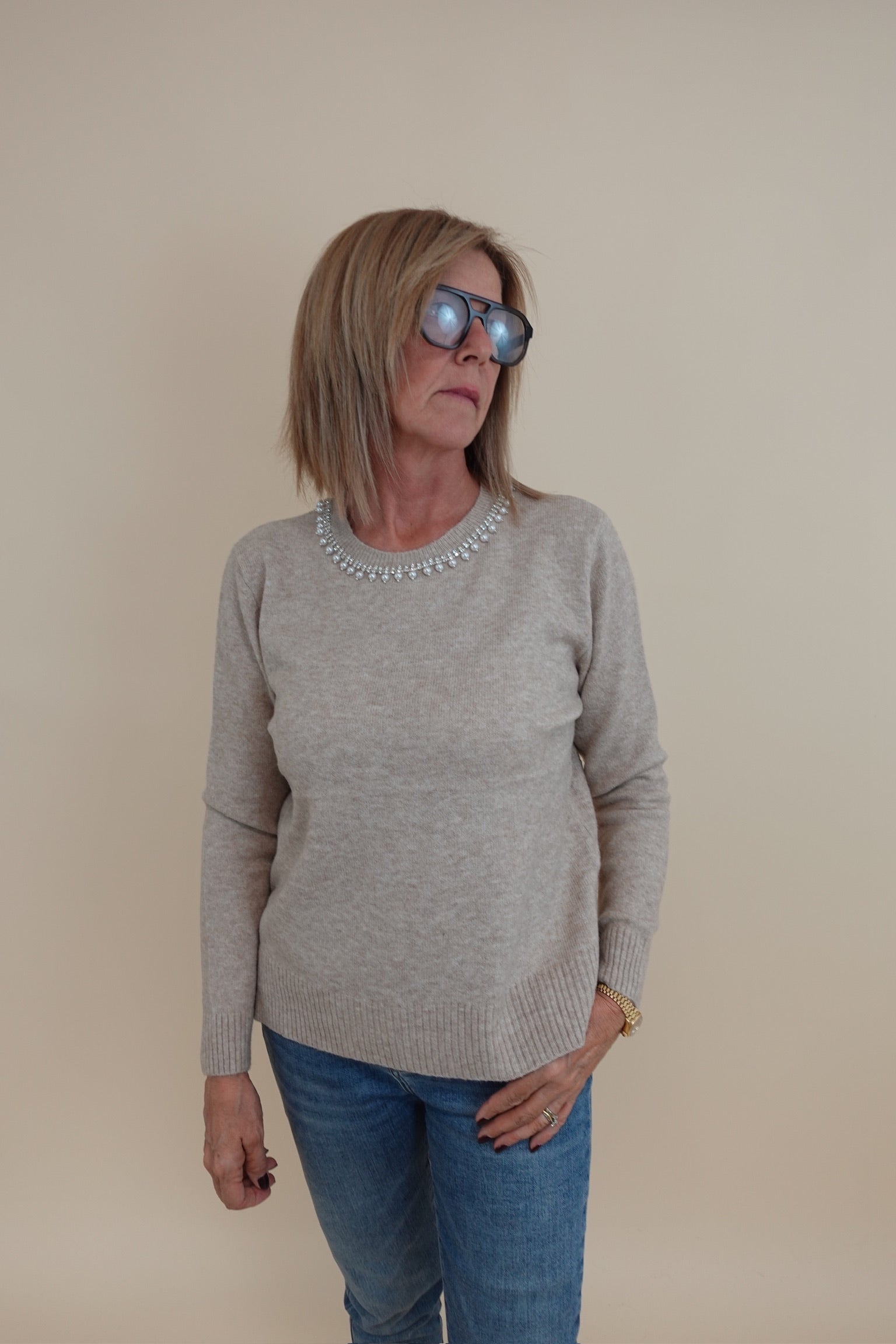 Maglioncino con particolare sul collo a gioiello, con spacchi laterali