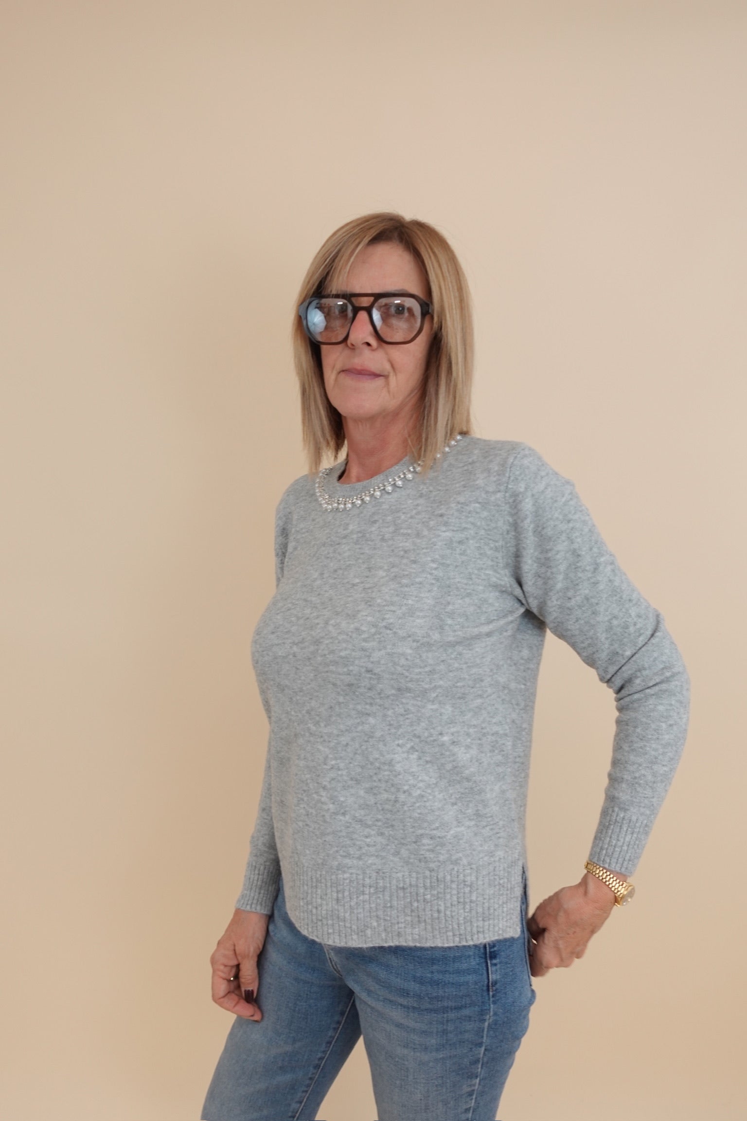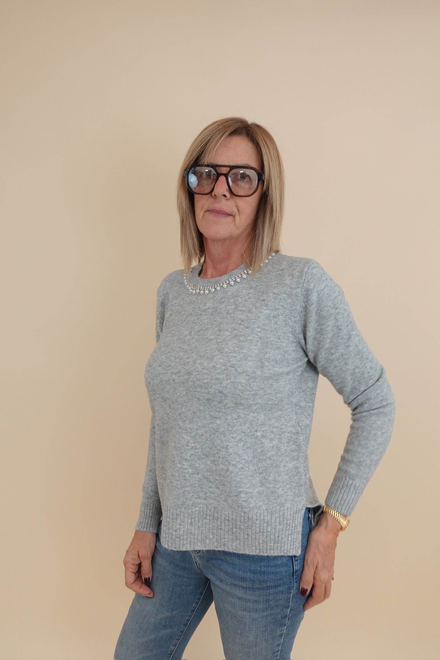 Maglioncino con particolare sul collo a gioiello, con spacchi laterali