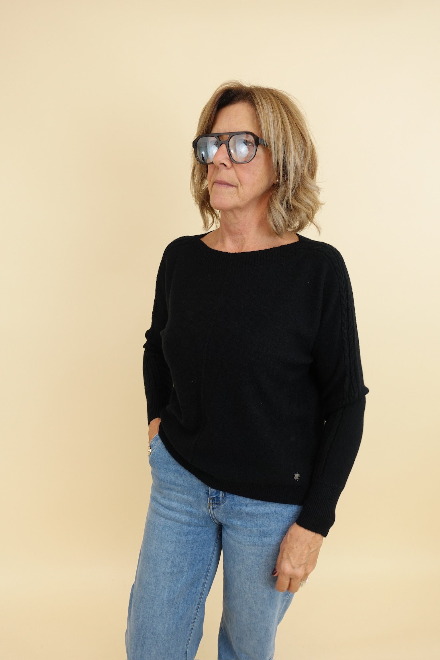 Maglione con collo a girocollo/ barchetta