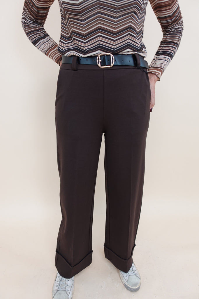 Pantalone con gamba morbida, elastico in vita con cintura inclusa e tasche laterali
