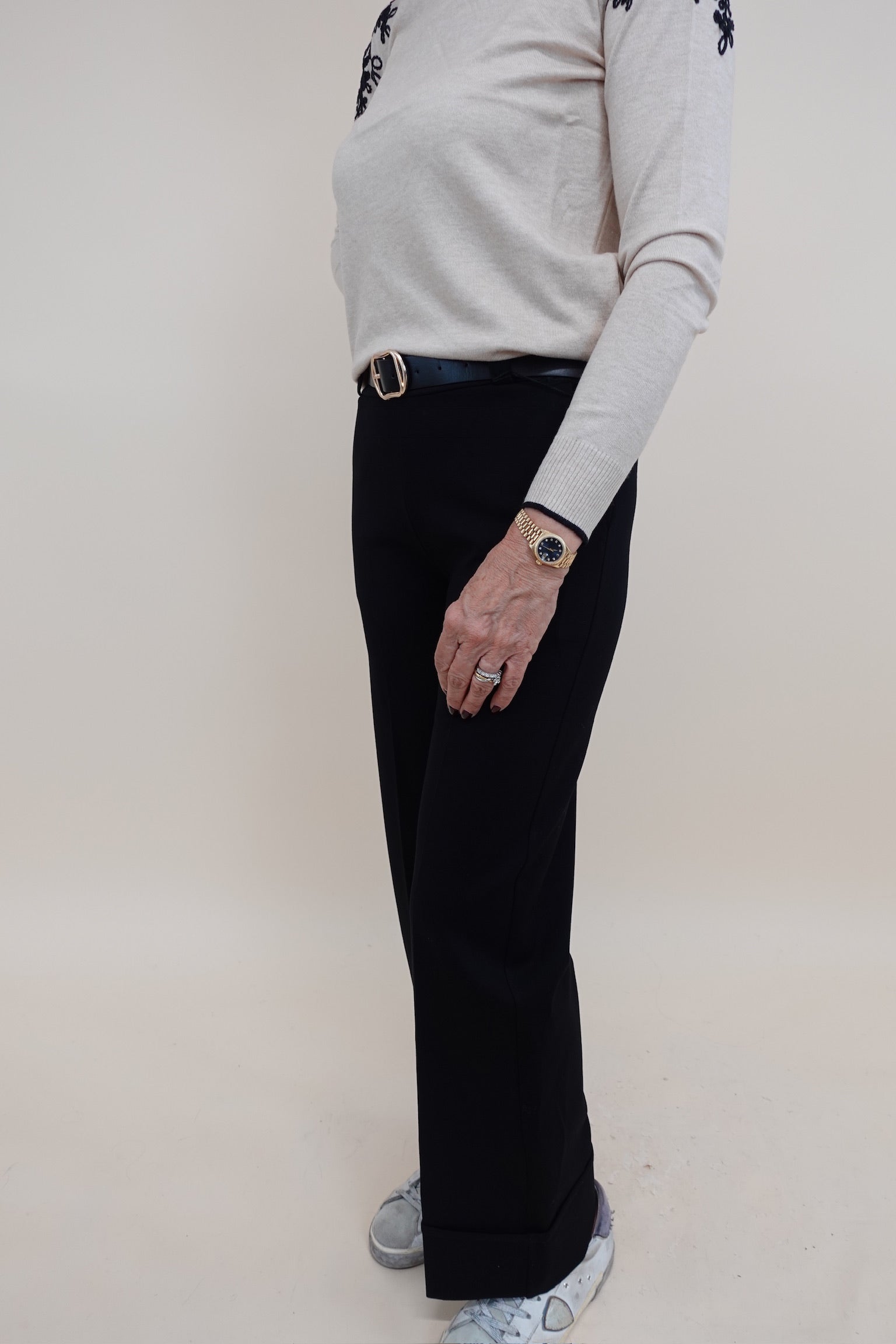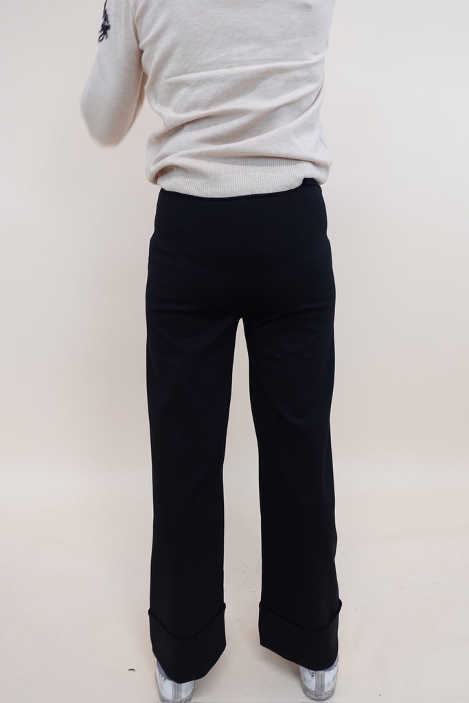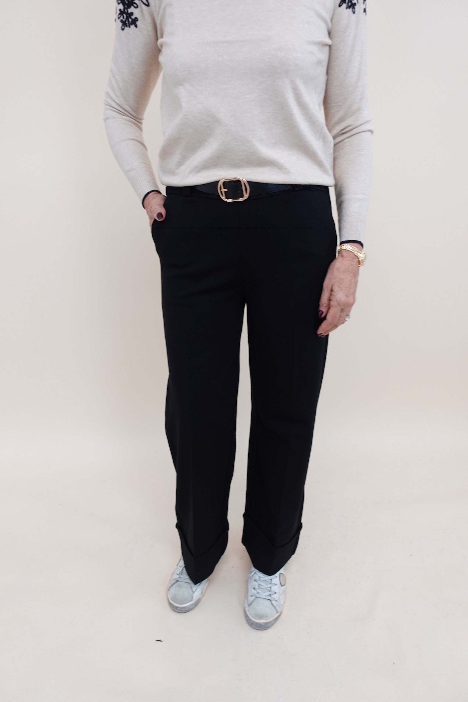 Pantalone con gamba morbida, elastico in vita con cintura inclusa e tasche laterali