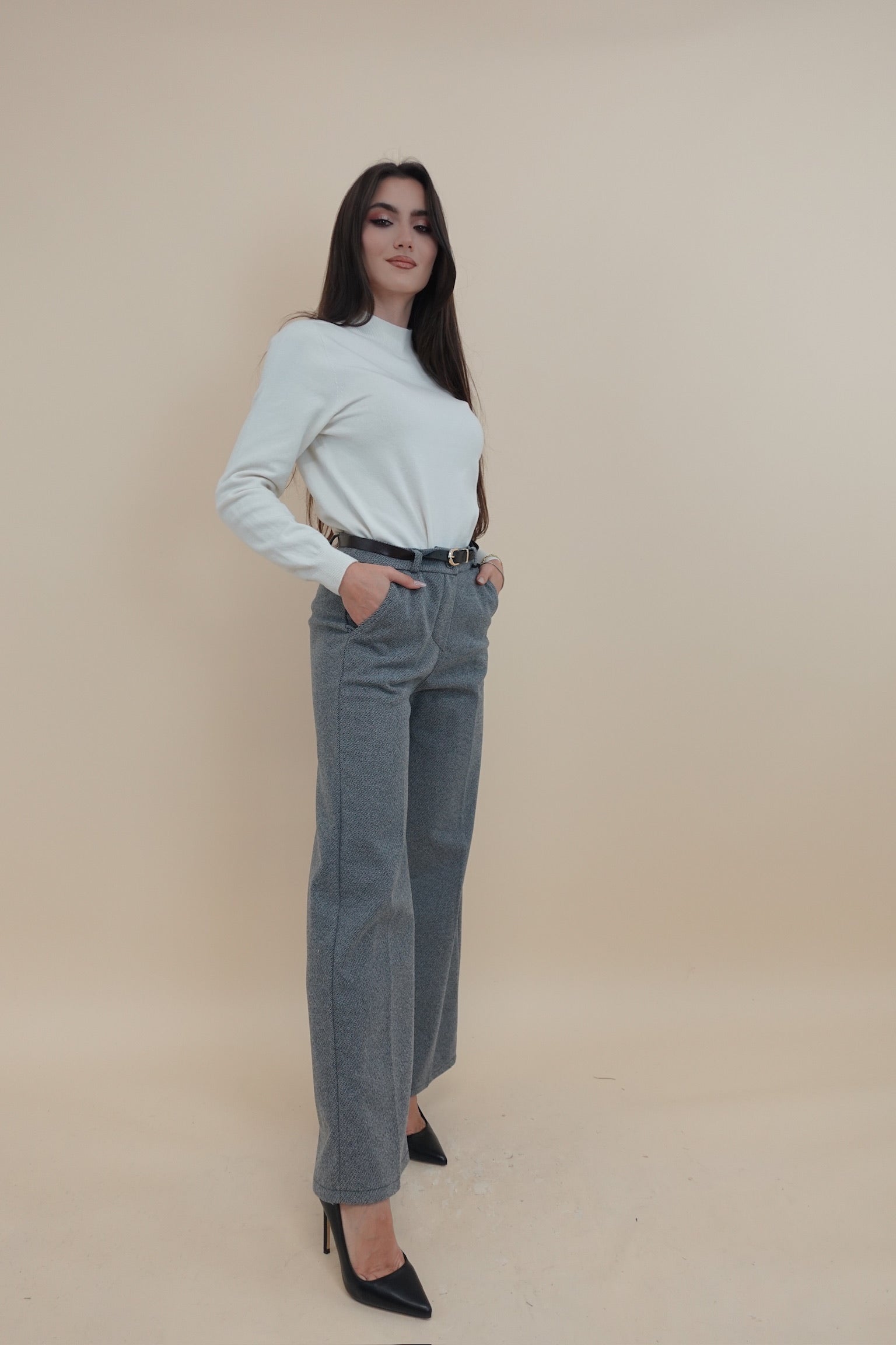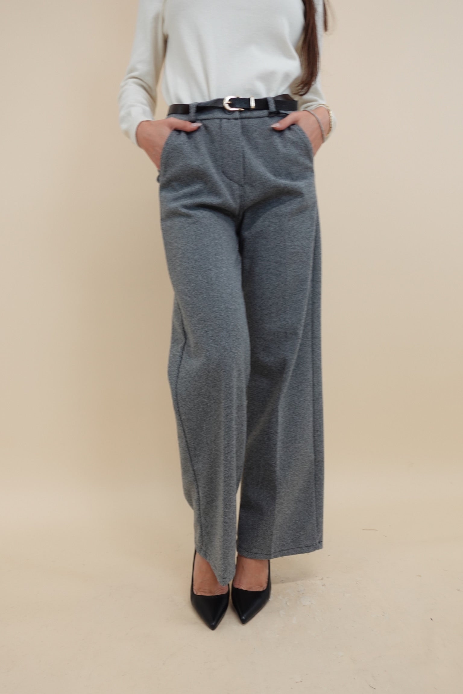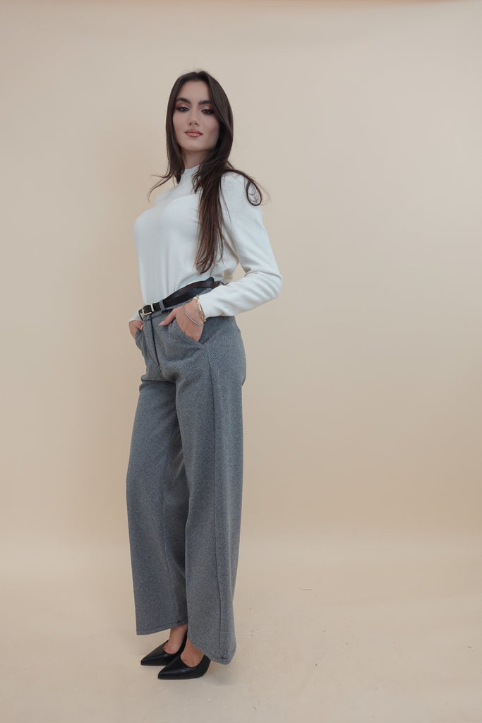 Pantalone morbido a palazzo, con tasche laterali e cintura inclusa