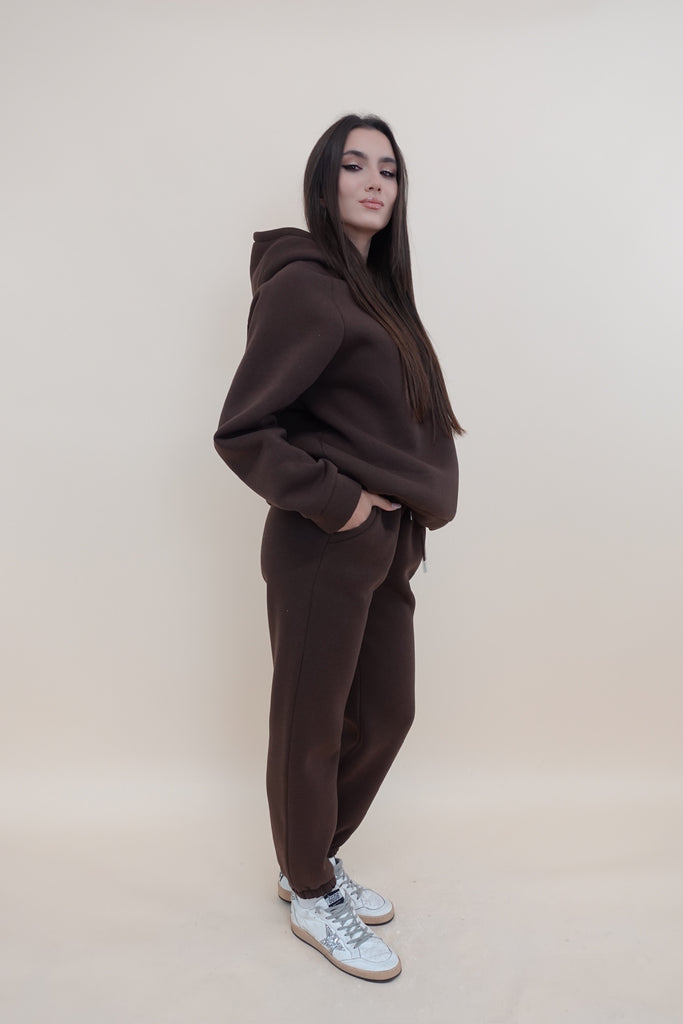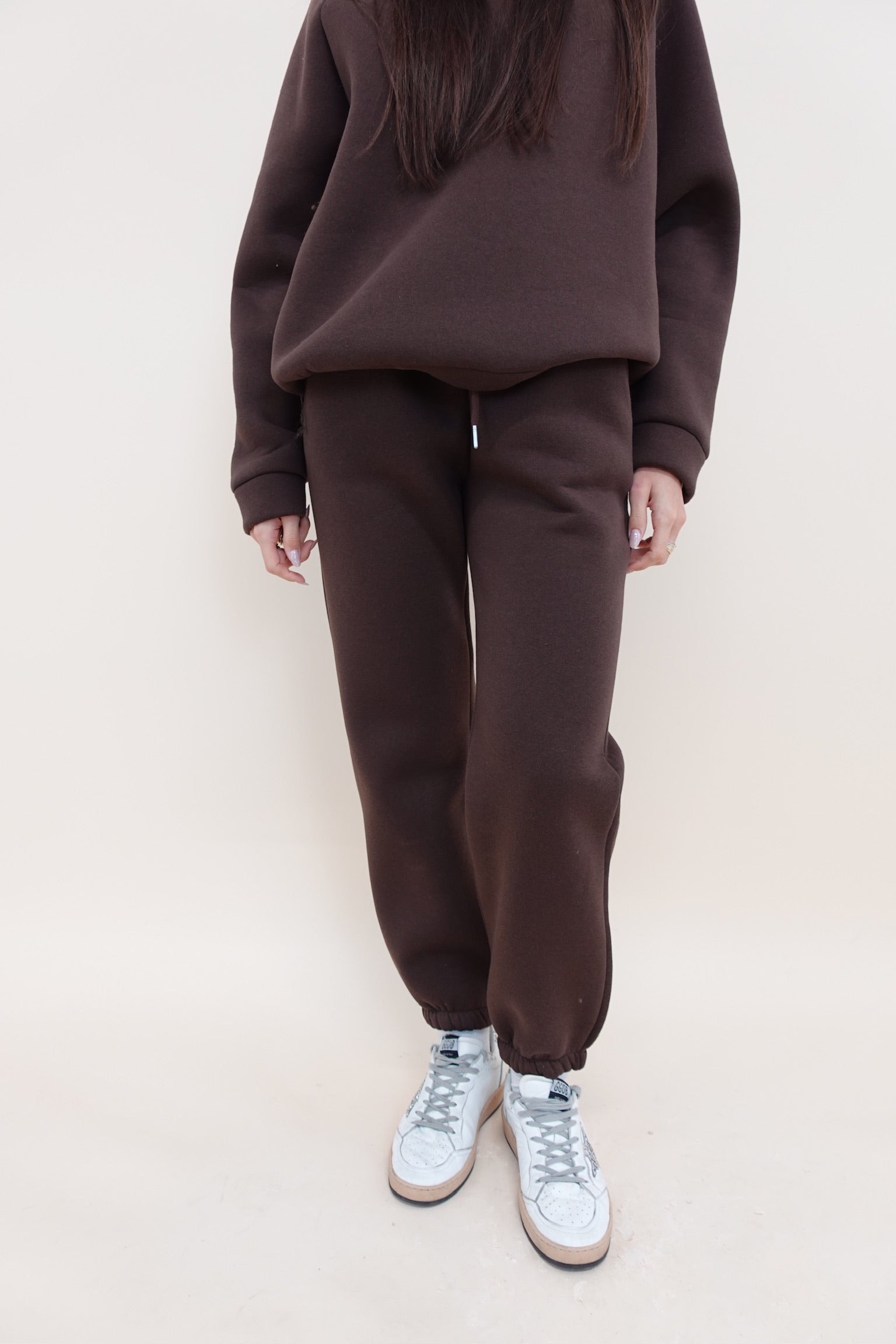 Pantalone felpato con elastico in vita, tasche laterali e polsino sul fondo