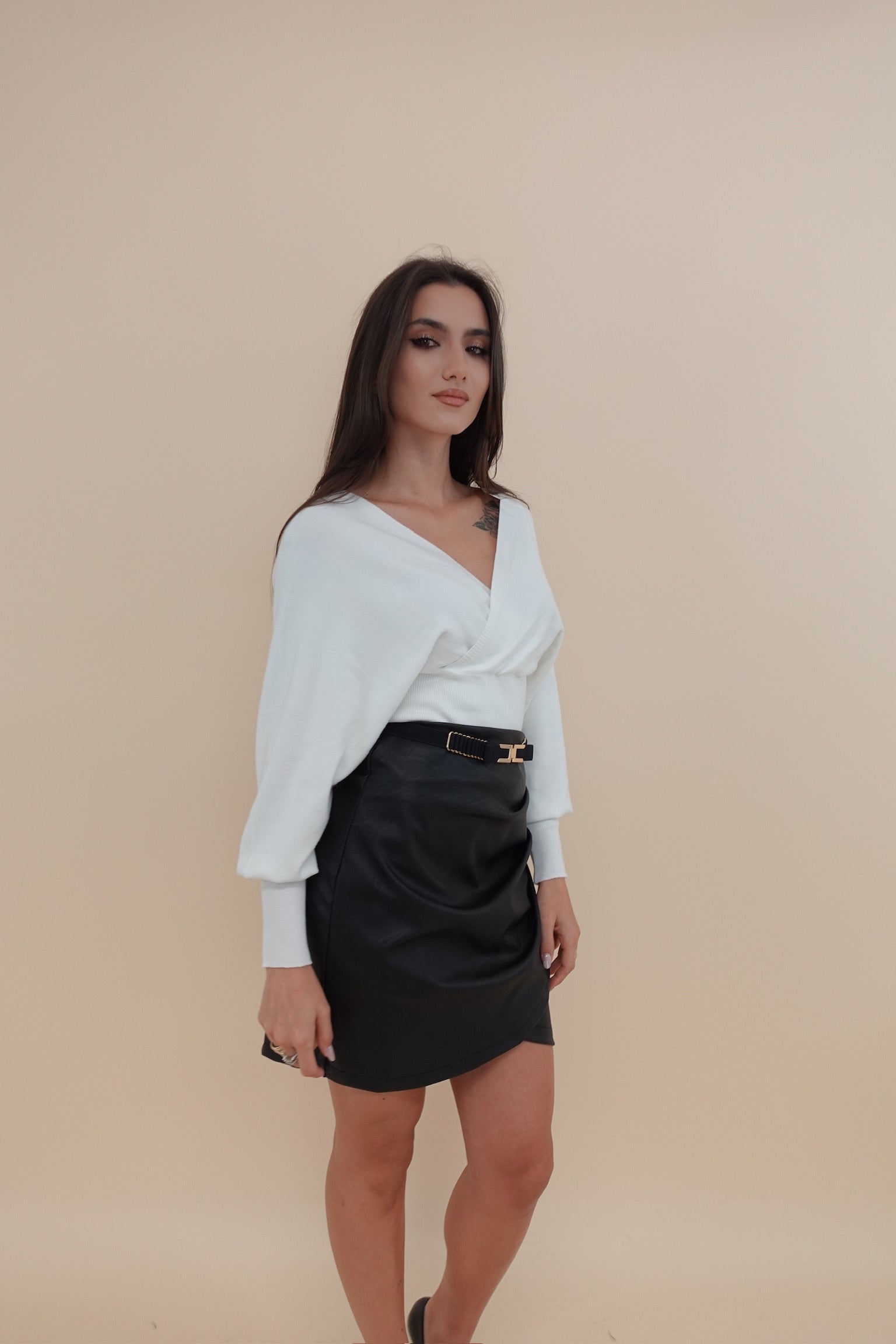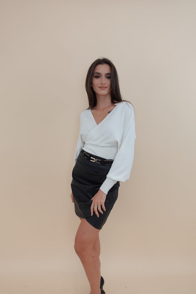 Pullover leggermente crop con scollo a V incrociato sia sul davanti sia sul retro