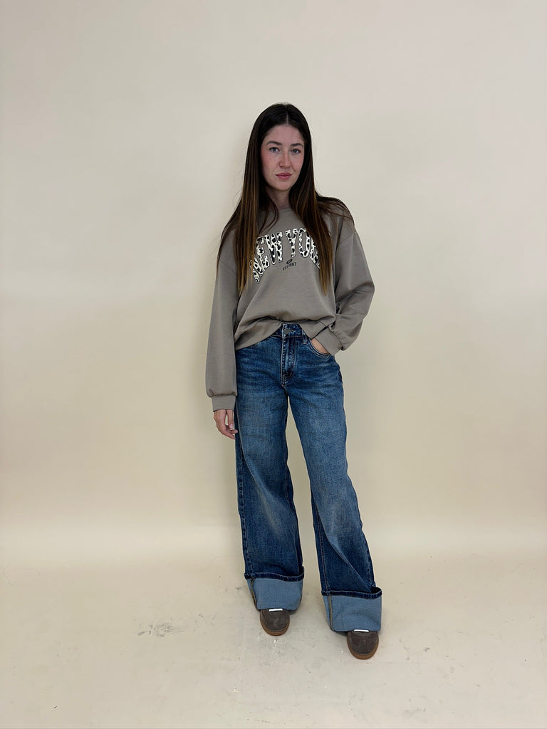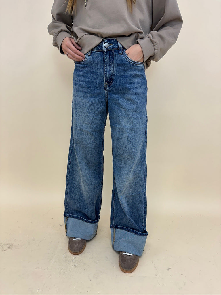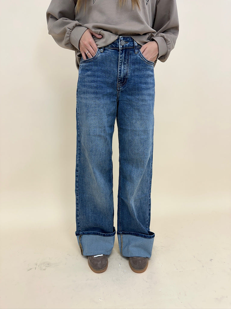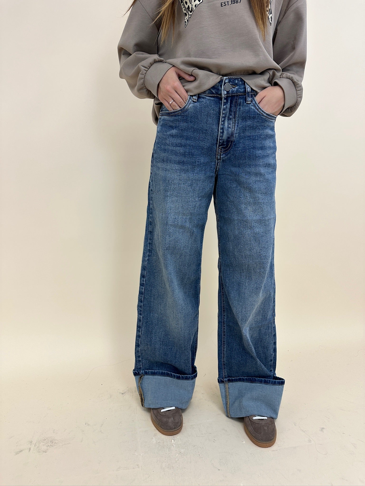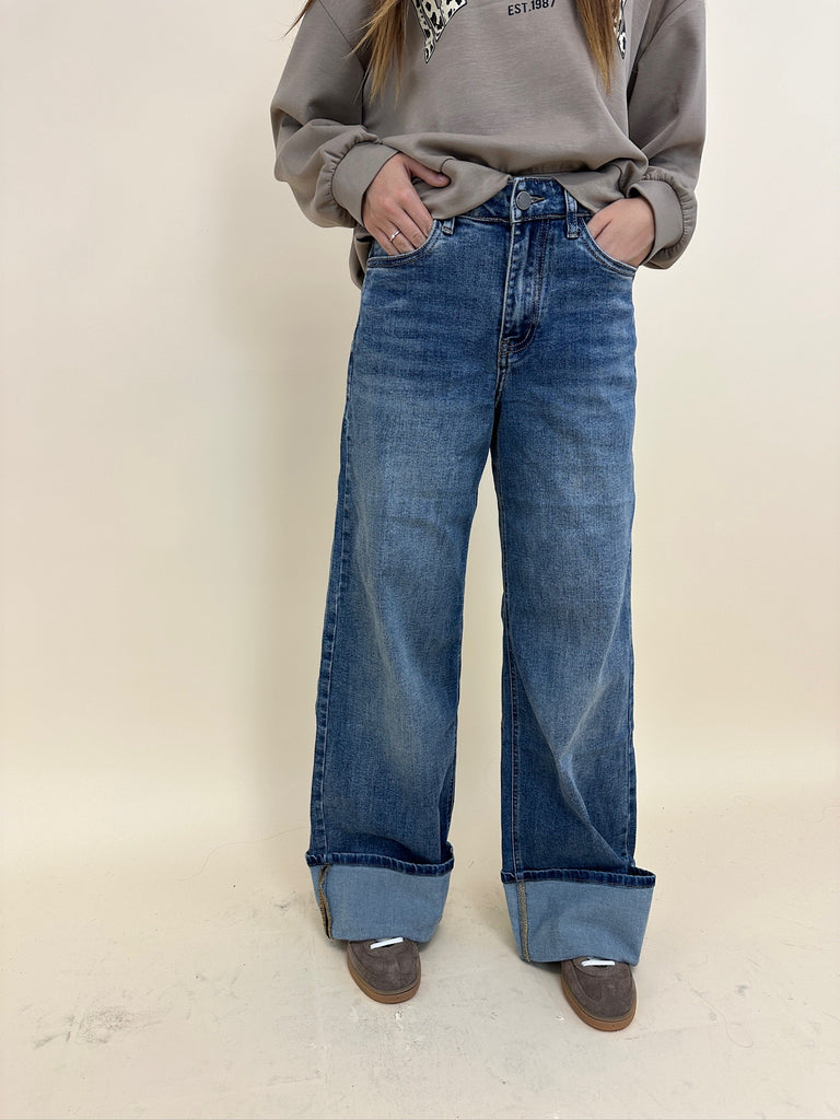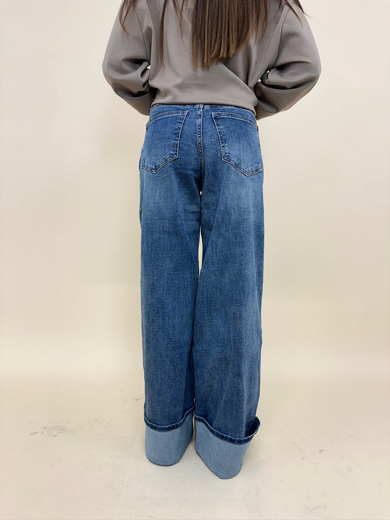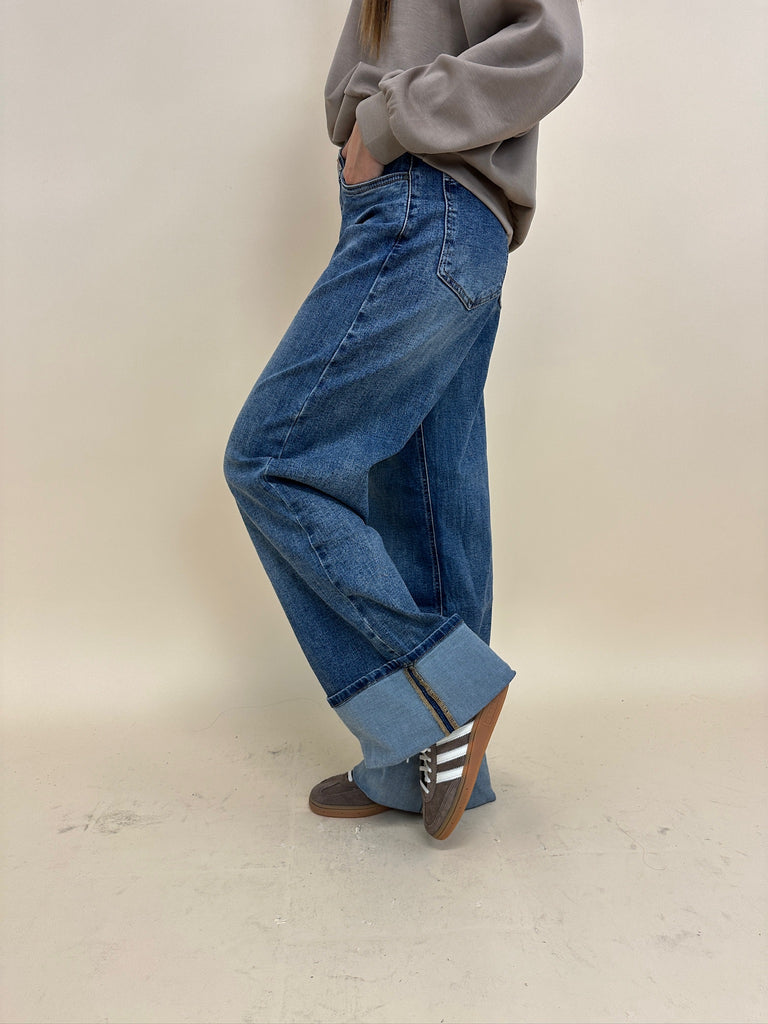 Jeans con risvolto, con tasche sul davanti che sul retro