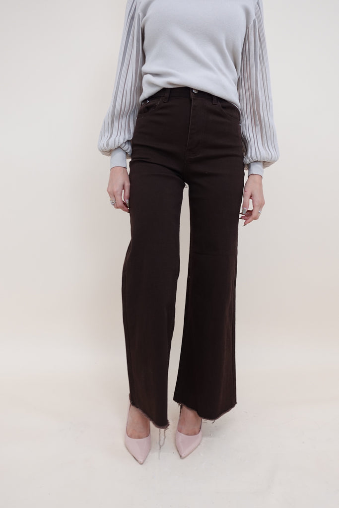 Jeans a palazzo sfrangiati sul fondo, con tasche davanti e dietro