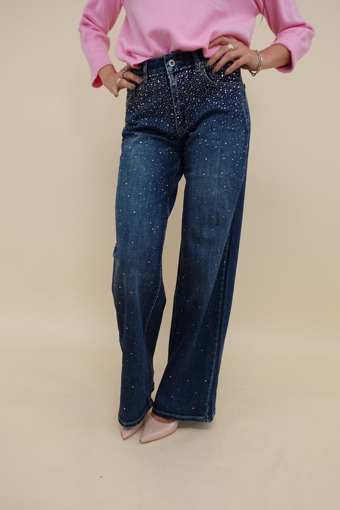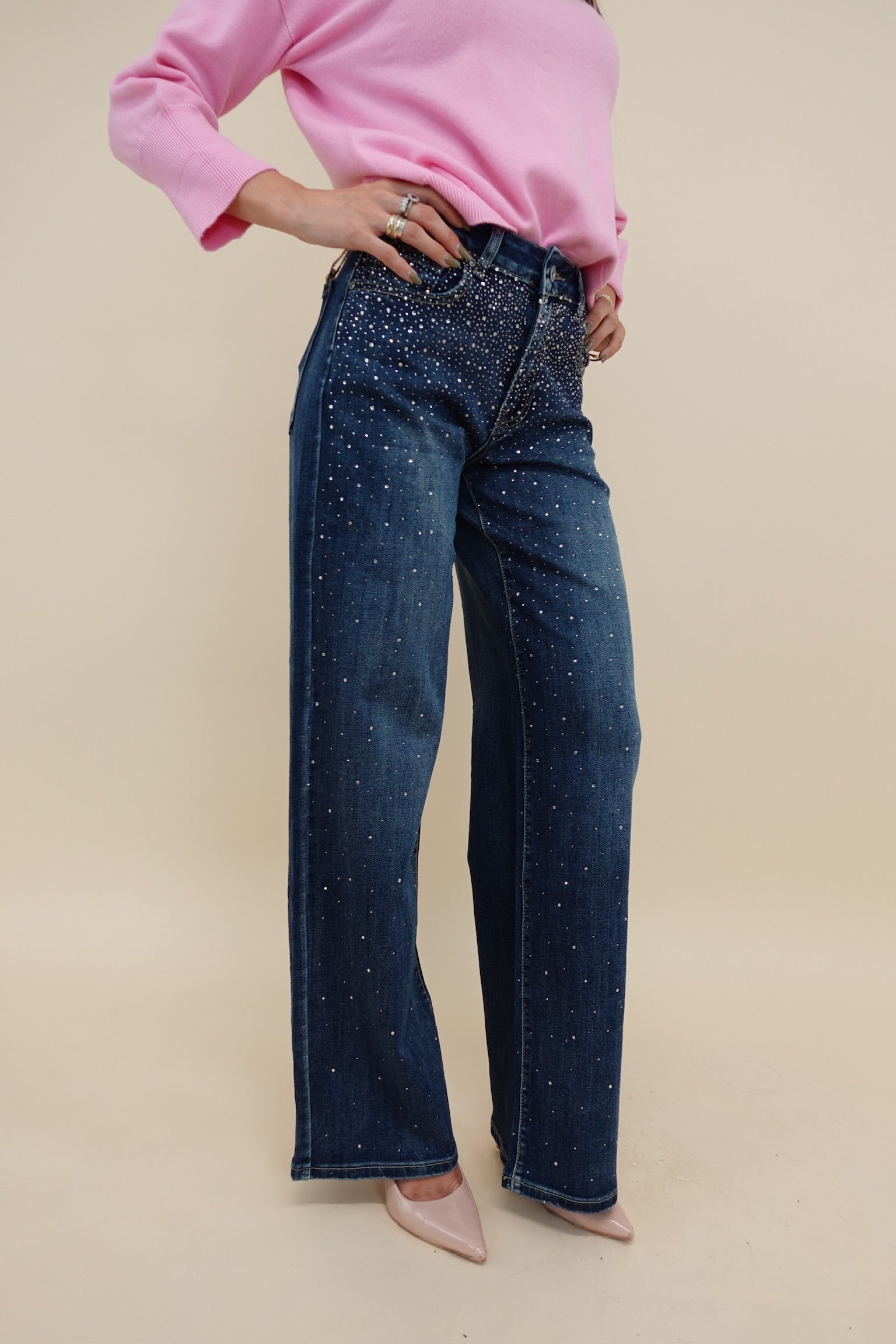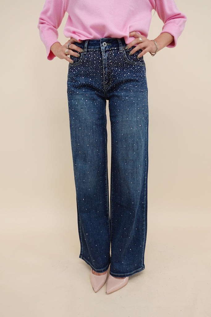 Jeans con brillantini sul davanti, leggermente elasticizzati