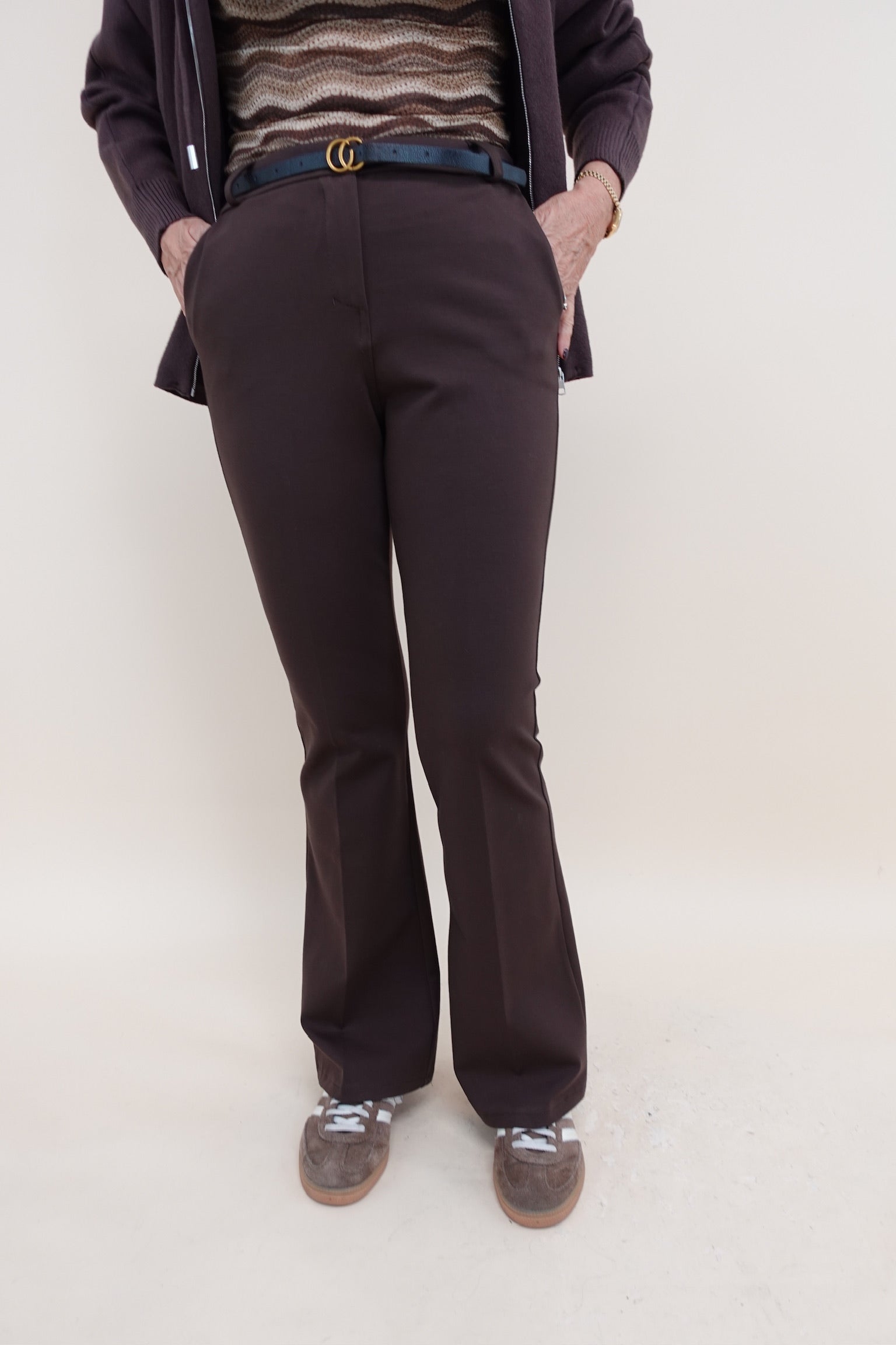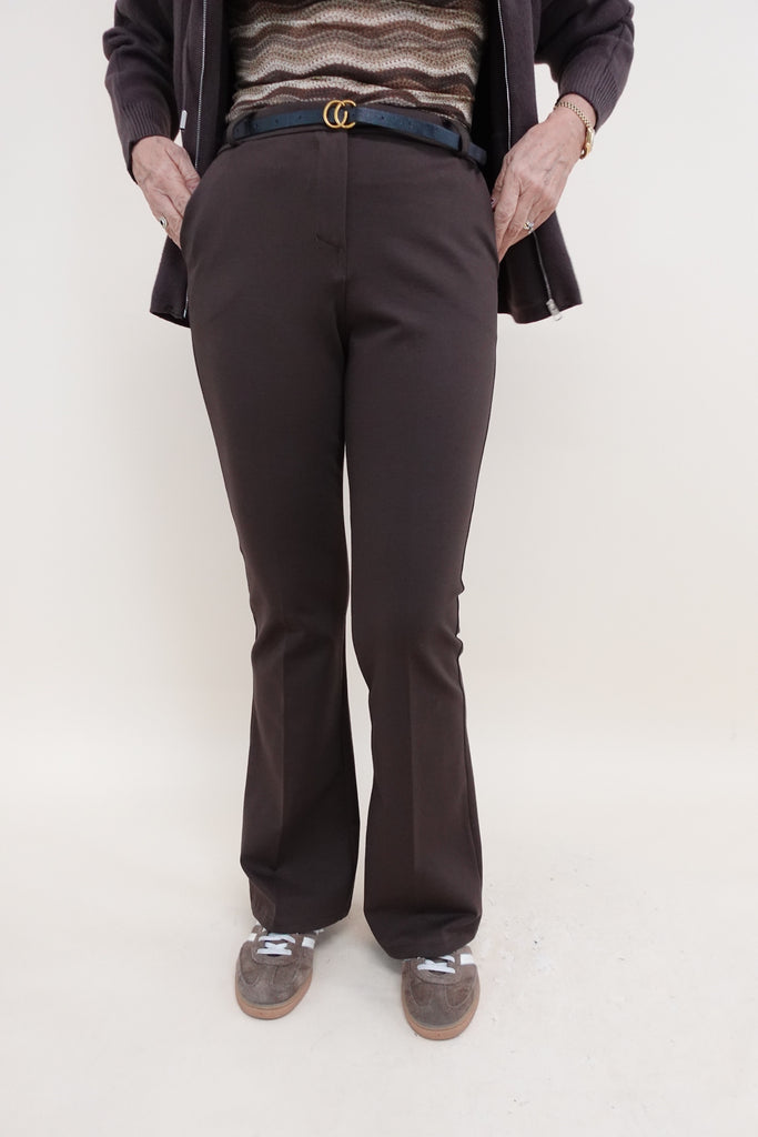 Pantalone in punto milano a zampa, con tasche e cinturina