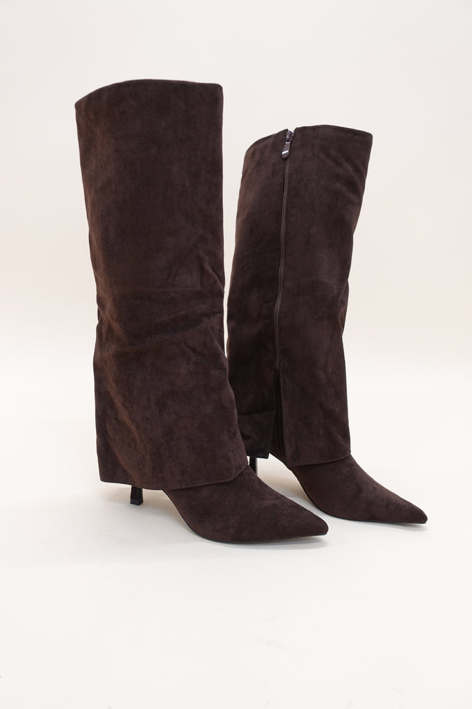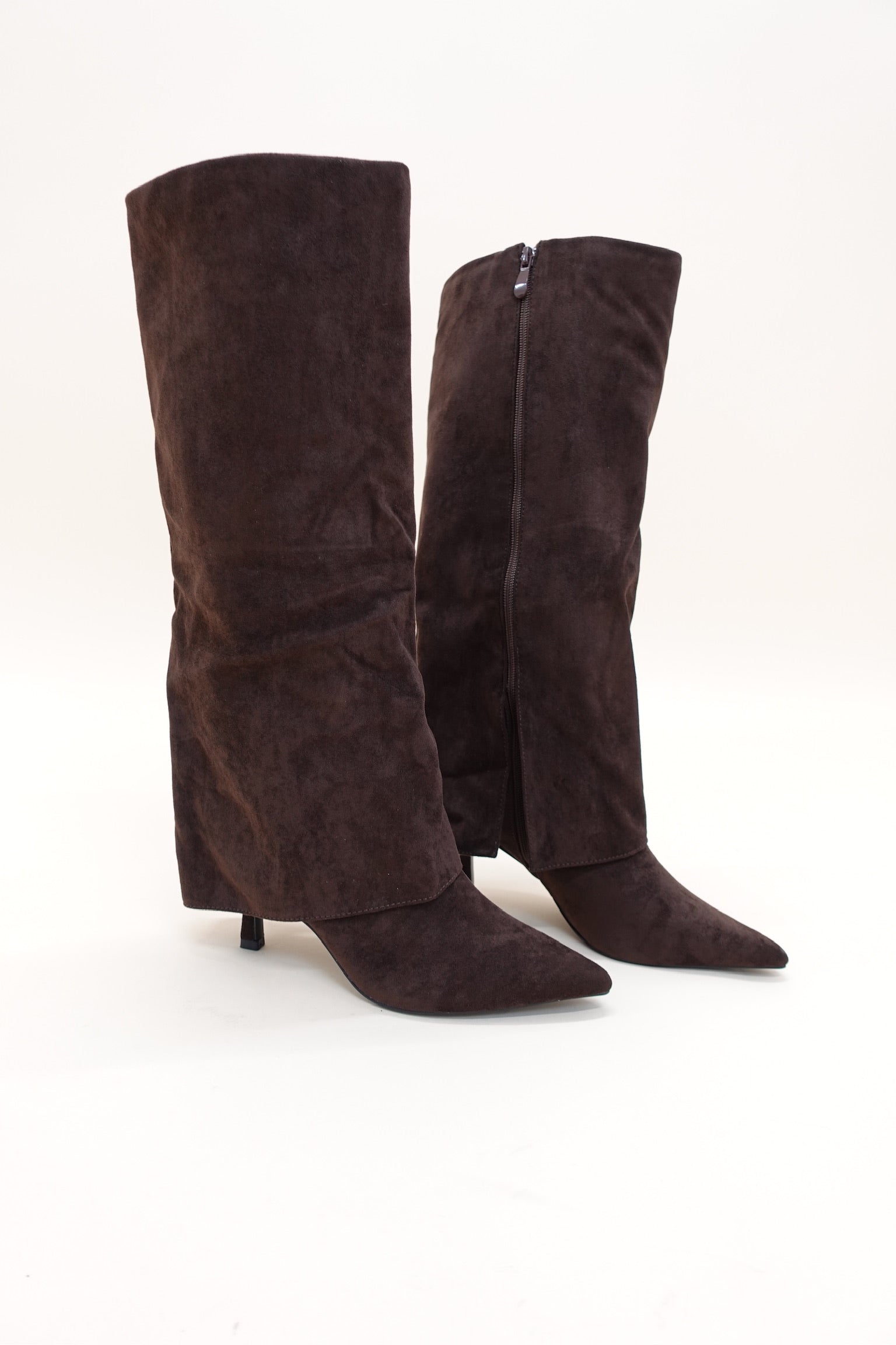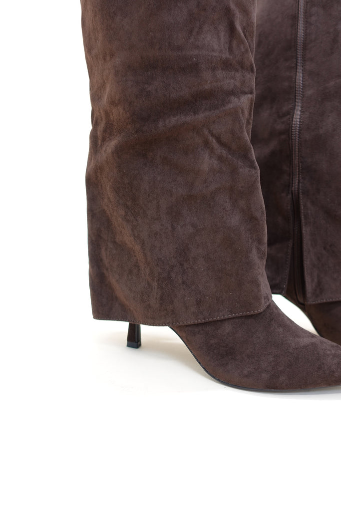 Stivale scamosciato con tacco a fino, altezza 3 cm e pezzo sopra a coprire
