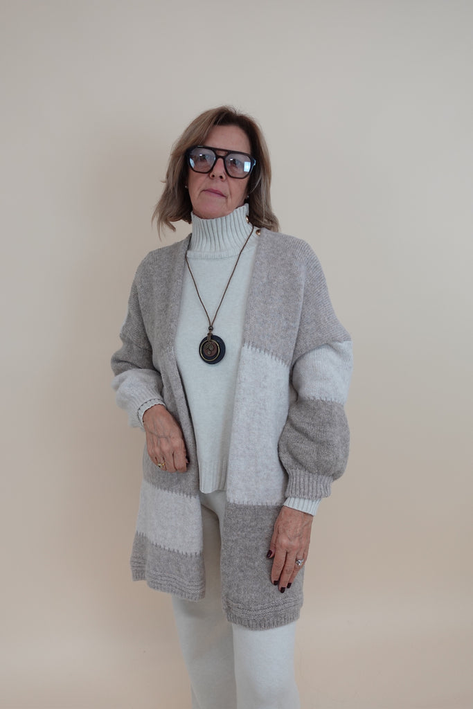 Cardigan Quadri Beige