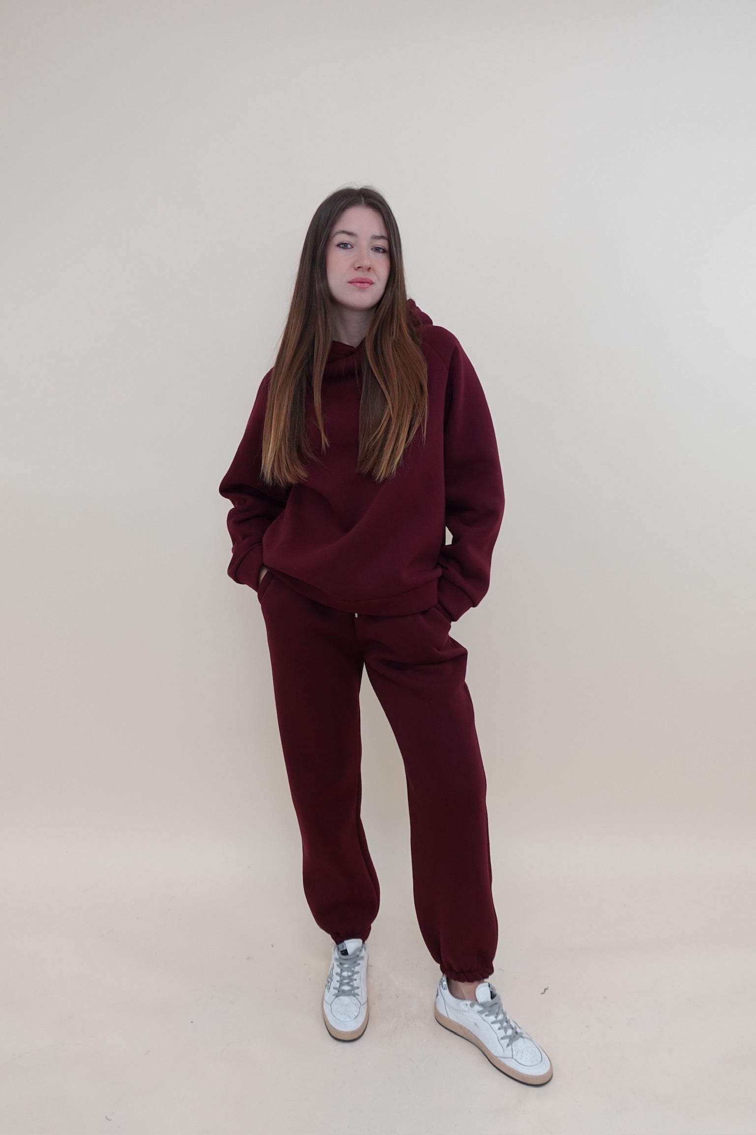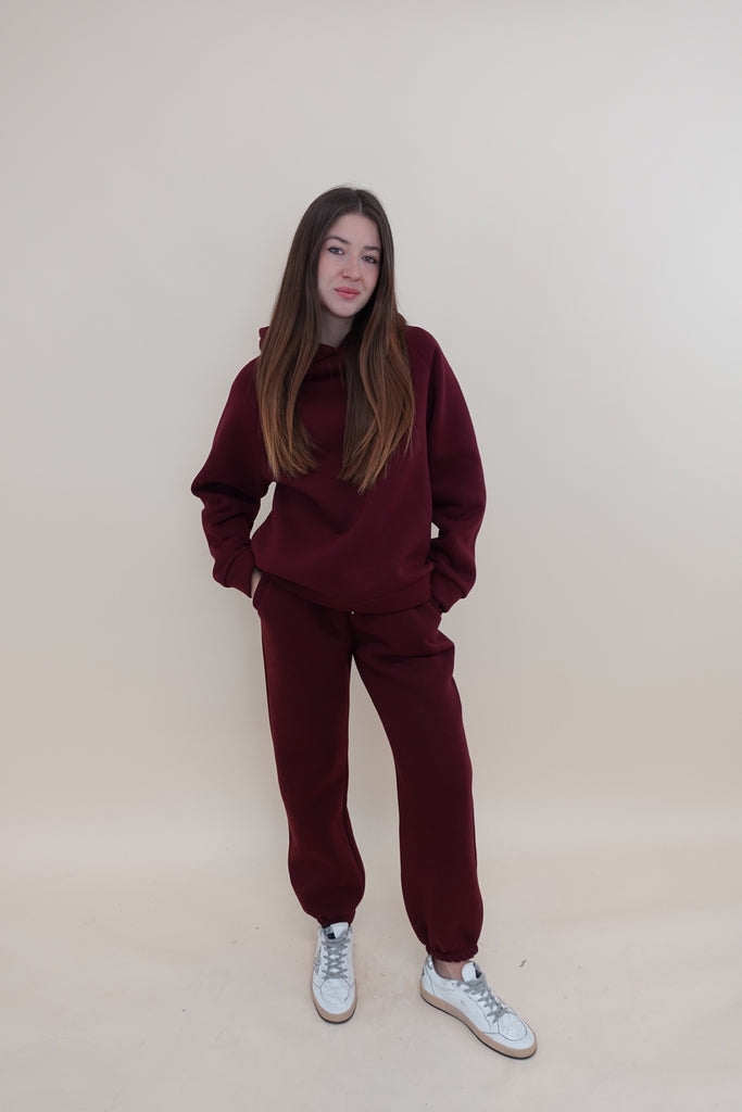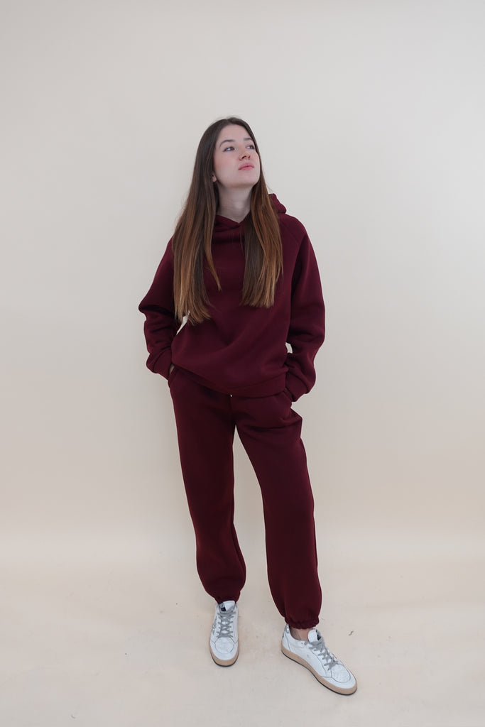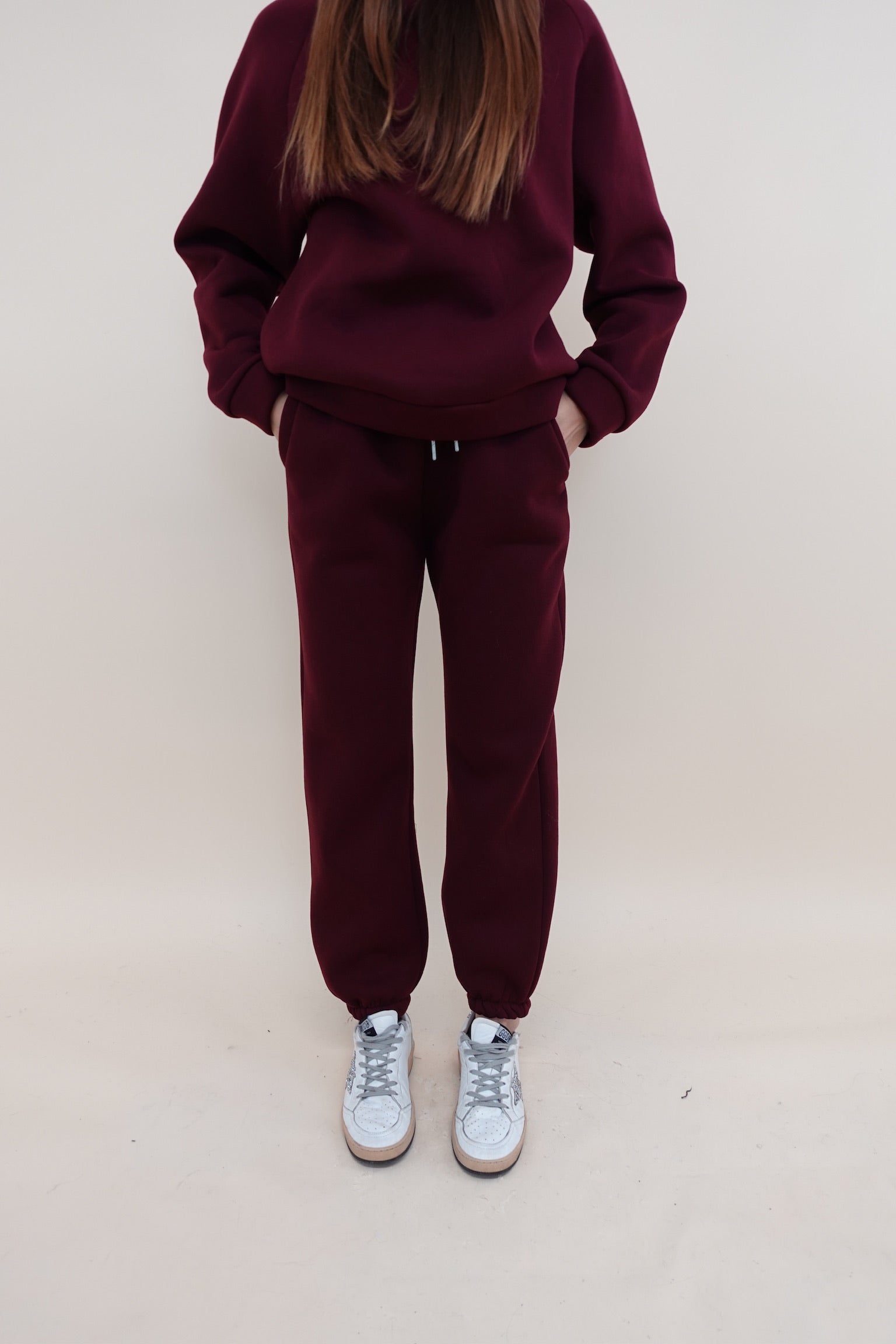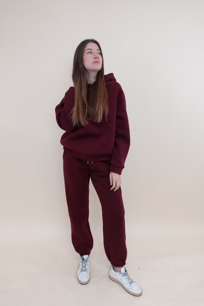 Pantalone felpato con elastico in vita, tasche laterali e polsino sul fondo
