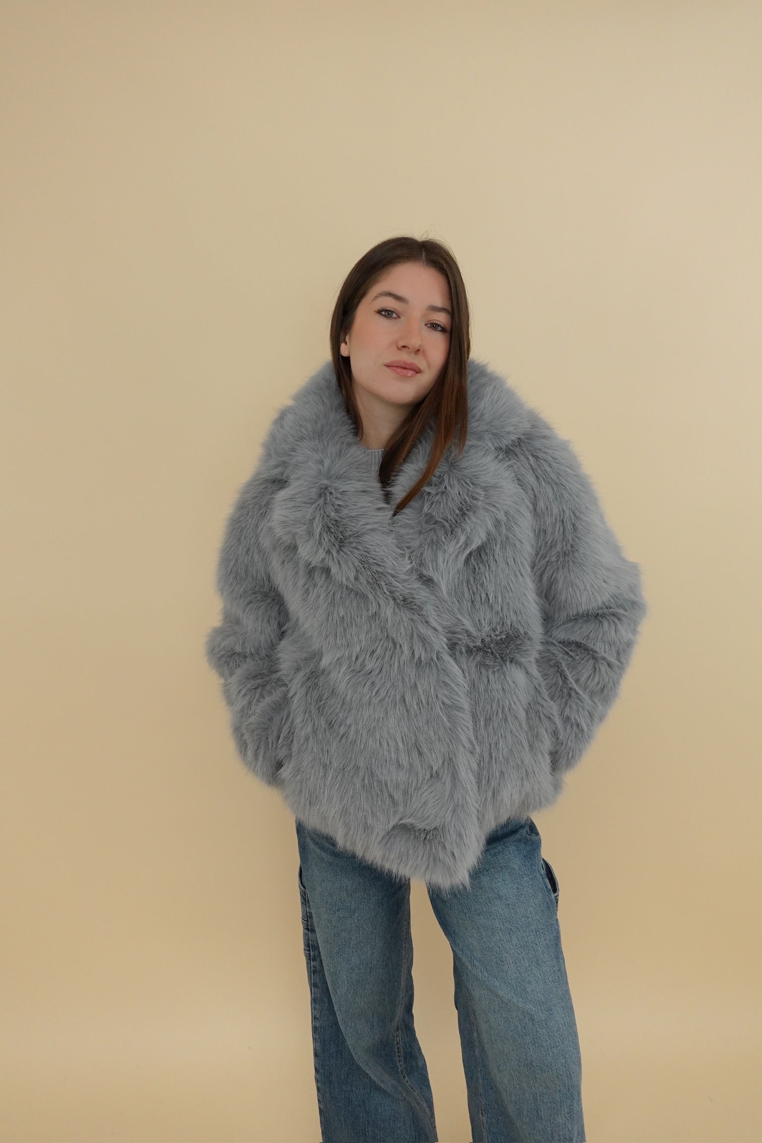 Pelliccia over con chiusura con bottoni e tasche laterali