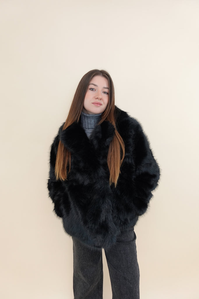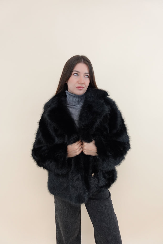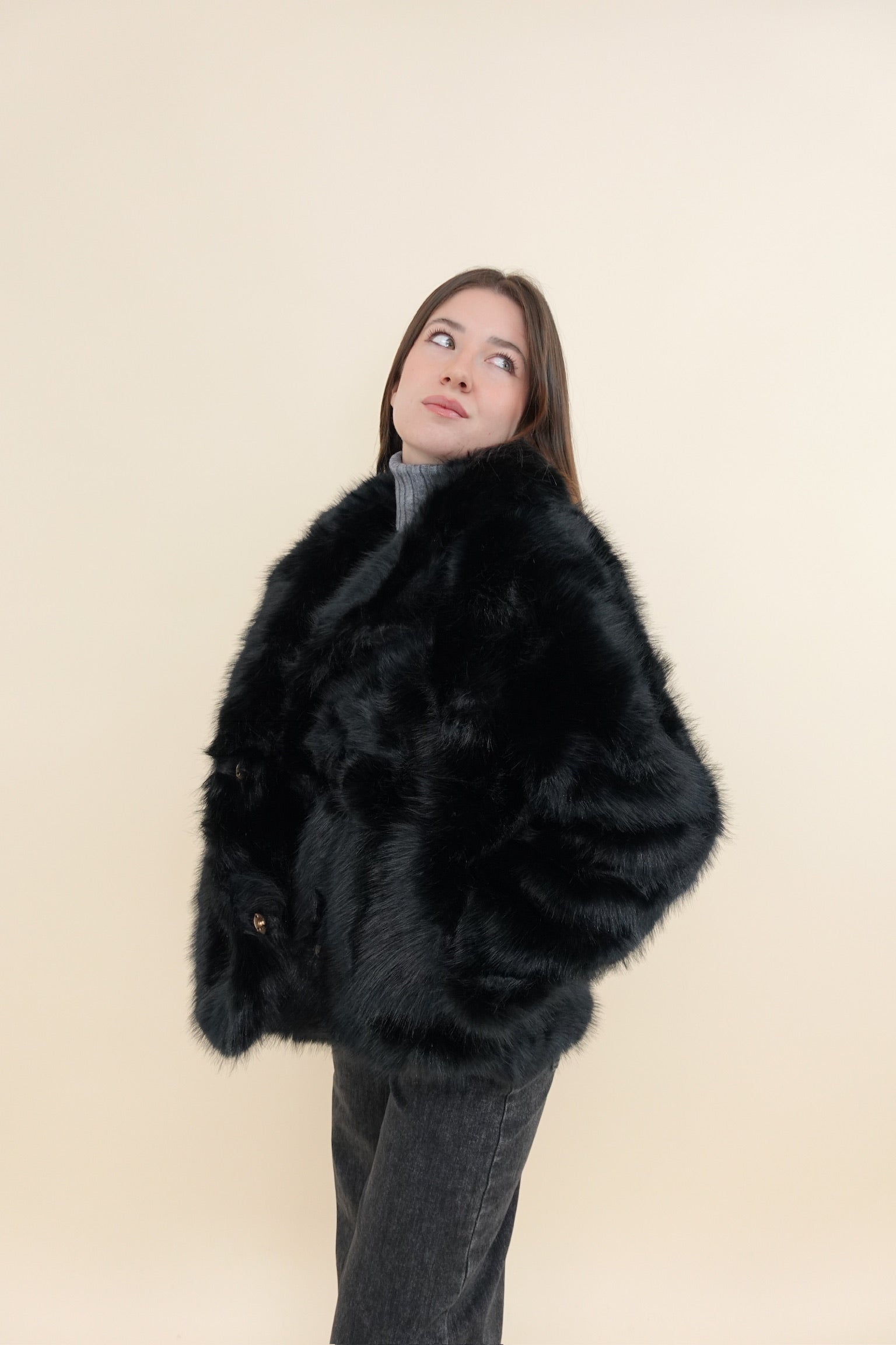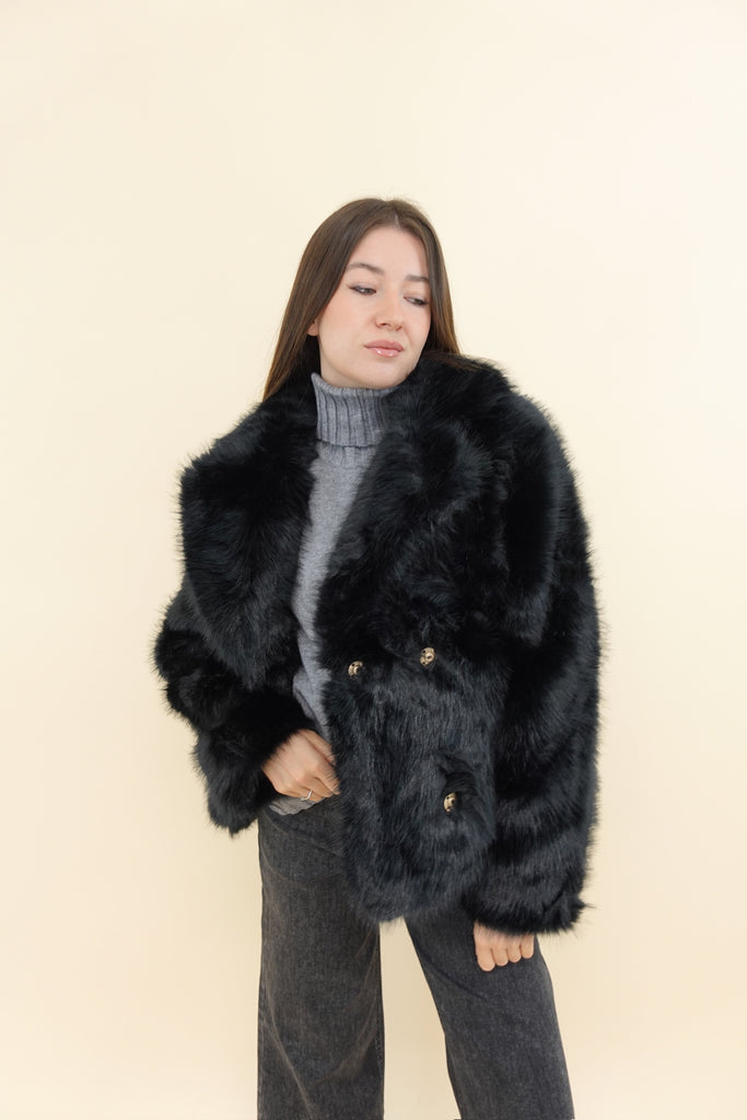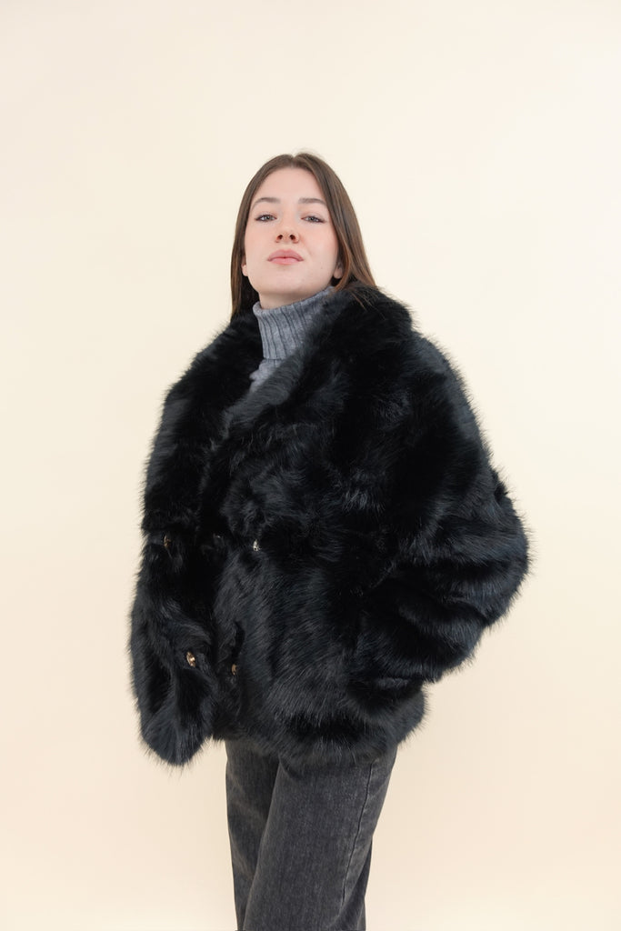 Pelliccia over con chiusura con bottoni e tasche laterali
